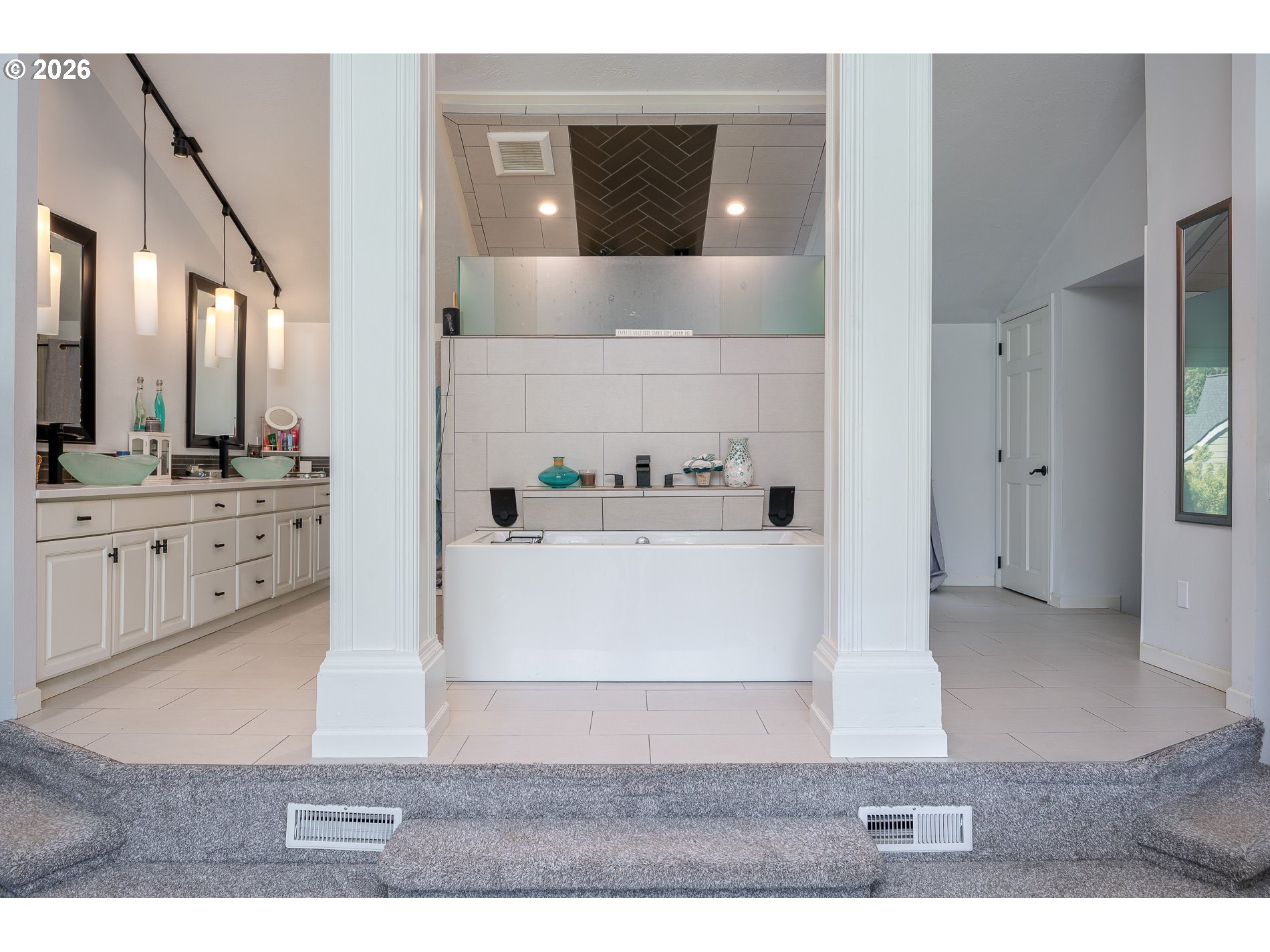 HighCeilings, Laundry, Marble, Quartz, SoakingTub, TileFloor, VaultedCeiling, Wainscoting, WalltoWallCarpet,