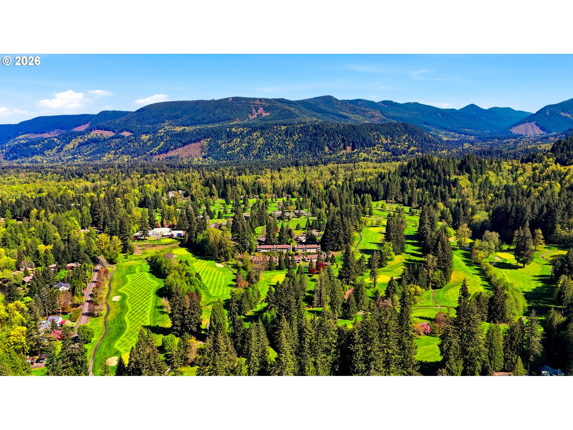 Welcome to your retreat at the base of Mt. Hood in Welches, Oregon, where stunning views of the surrounding mountain range and manicured golf course greet you every day. This upper level, end unit Clear Hills condo offers 2 bedrooms and 2 fully remodeled bathrooms, each boasting double sinks and thoughtful modern finishes that elevate your daily routine. Step inside and look up — vaulted open beam ceilings clad in cedar tongue and groove create a warm, lodge-inspired ambiance that whispers relaxation the moment you walk through the door. The open flow layout connects seamlessly from the upgraded kitchen, featuring gorgeous granite countertops and newer appliances, to the inviting living area where a rock wall hearth and fireplace with built-in wood storage set the stage for cozy evenings. Slide open the door and step onto the partially covered Trex deck, your personal perch for morning coffee with those jaw-dropping views. Mirrored closet doors add depth and light throughout, while a full-size stacked washer and dryer tucked within the unit keeps life wonderfully convenient. Updated electrical gives you peace of mind for years to come. A dedicated covered carport and storage unit complete this mountain package. Beyond your door, the golf resort, local dining, and outdoor adventures at Wildwood Recreation Site, Trillium & Frog Lake, and Ramona Falls Trailhead await. Government Camp and world-class skiing are just a short drive away. One hour from PDX! Schedule your private showing today and discover the lifestyle you deserve.