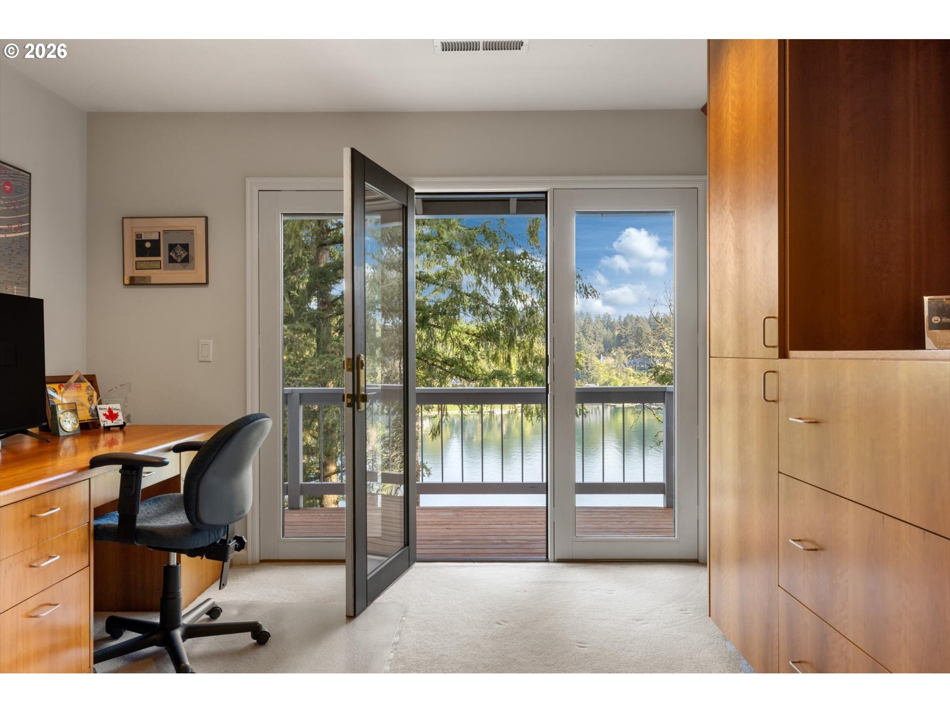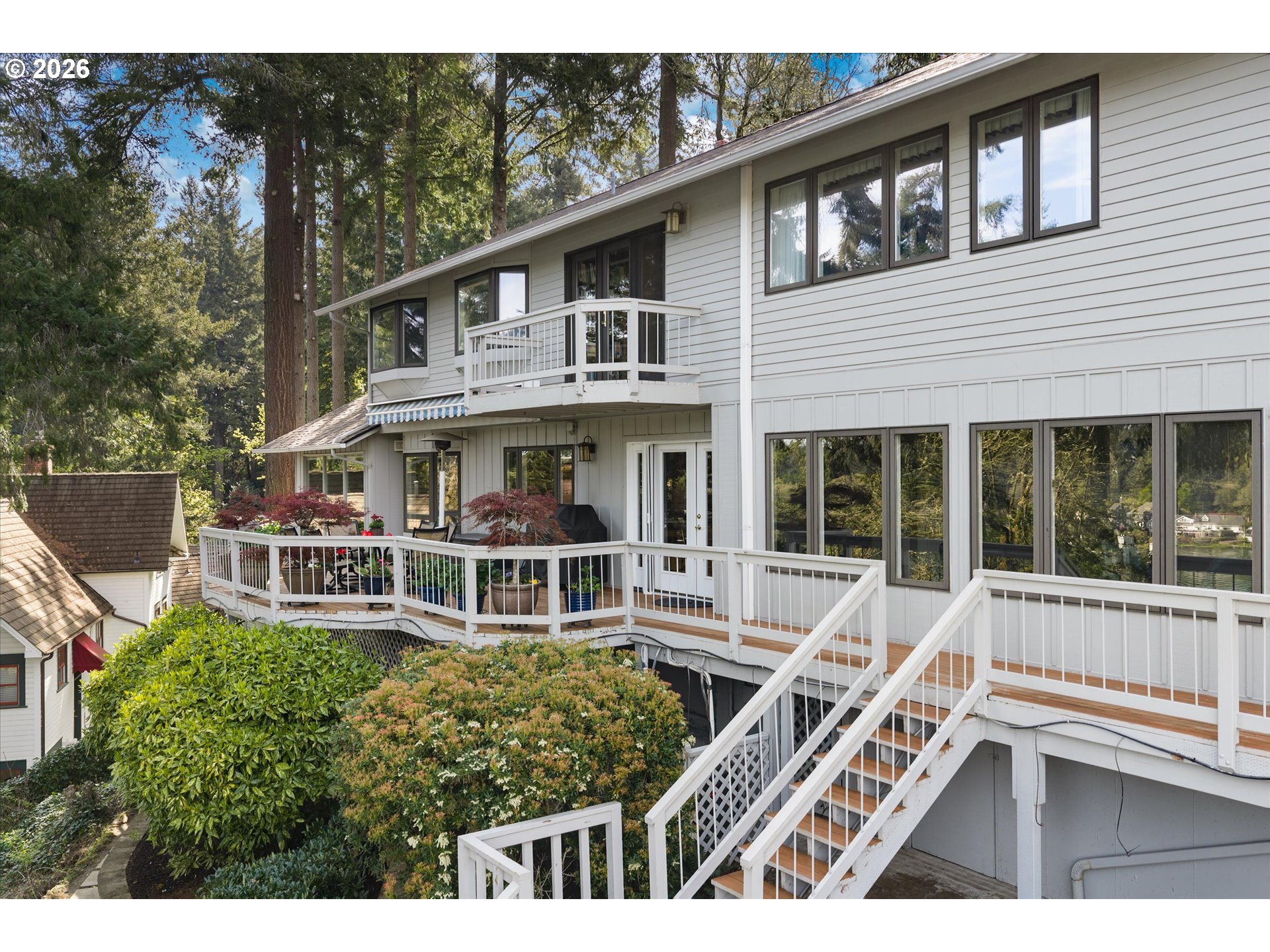 Set on a private 0.42-acre lot in Lake Oswego’s coveted Palisades neighborhood, this lakefront traditional offers sweeping Oswego Lake views and exceptional indoor-outdoor living. The 3,852-square-foot home features vaulted ceilings, sunken living room, formal dining, and an open kitchen / great room that flows seamlessly to outdoor entertaining spaces through French doors. A standout feature is the recently rebuilt private boathouse with an expansive rooftop deck complemented with a dock, boat lift, landscaped grounds, and irrigation supported by deeded water rights—an ideal setting for lakeside gatherings as bald eagles and herons pass overhead.The upper-level primary suite includes a sitting area, dual walk-in closets, and a well-appointed bath. Three large additional bedrooms and a dedicated office offer custom built-ins and generous space.Other recent capital improvements are dual HVAC systems, water heaters, and a whole-house generator, providing year-round comfort and reliability. Additional features include a large two-car garage and security system. With access to top-rated Lake Oswego schools, this is a rare opportunity to own a true legacy waterfront property.