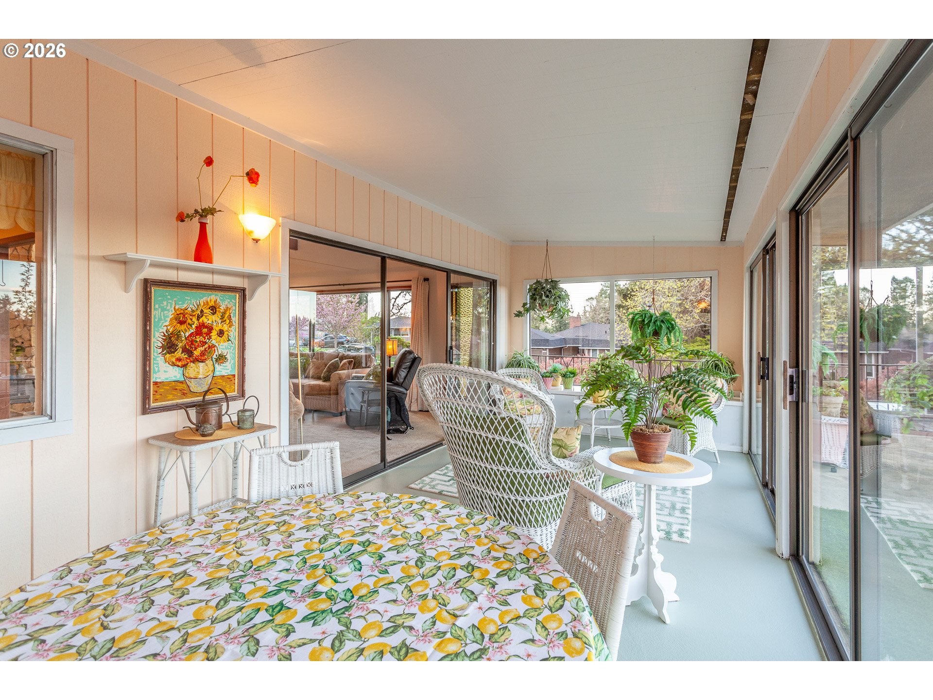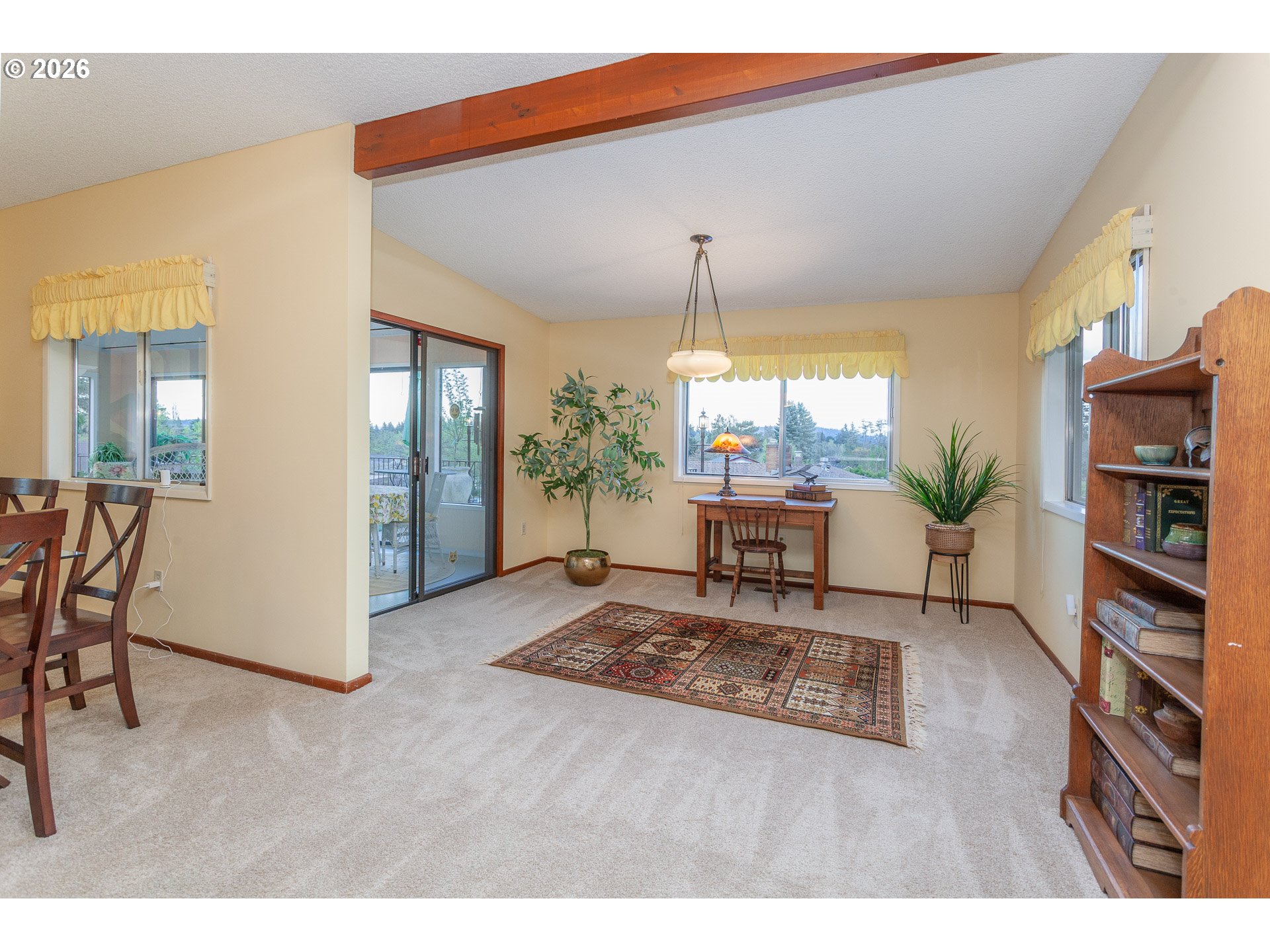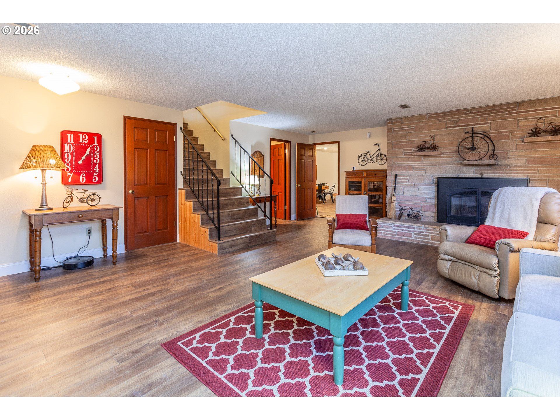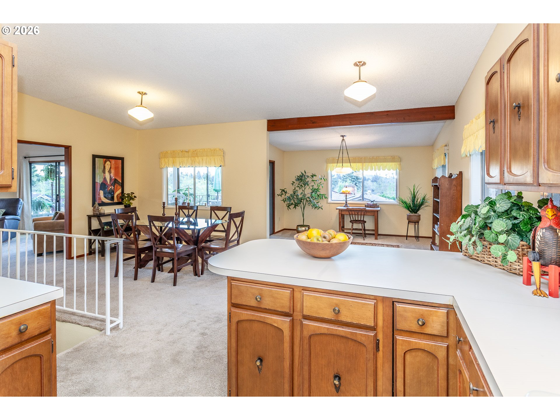 Classic Mid-Century styling, clean lines, vaulted ceilings, slate entry, floor to ceiling stone fireplace, floating hearth and picture windows that frame the Mount Hood View. This is a floor plan made for entertaining. The open kitchen, dining and living room areas flow naturally into the sunroom and the elevated deck beyond. This is a large home with over 3,500 square feet, room for everyone to spread out. In addition to the entertaining spaces on the Upper level you will find the Primary Bedroom with double closets, ensuite bath and sliding door out to a private covered patio. Two additional bedrooms, a hall bath and laundry room on upper level. The fourth bedroom and third full bath on lower level along with the Family Room, Game Room and Storage area w/built-in shelving.The double garage and separate 10x10 heated shop both access the lower level 24x11 covered patio. This floor plan lends itself to multigenerational living. Access from the garage into the Family Room is level with no stairs.Amenities: New Roof 2025, New Air Conditioning 2022, Newer Electrical Panel, Fenced yard, and the dog friendly Valley View Park around the corner. This home is nicely situated in the established Mount Verde Neighborhood surrounded by other well maintained homes and mature landscaping. Come see for yourself.It's Special!