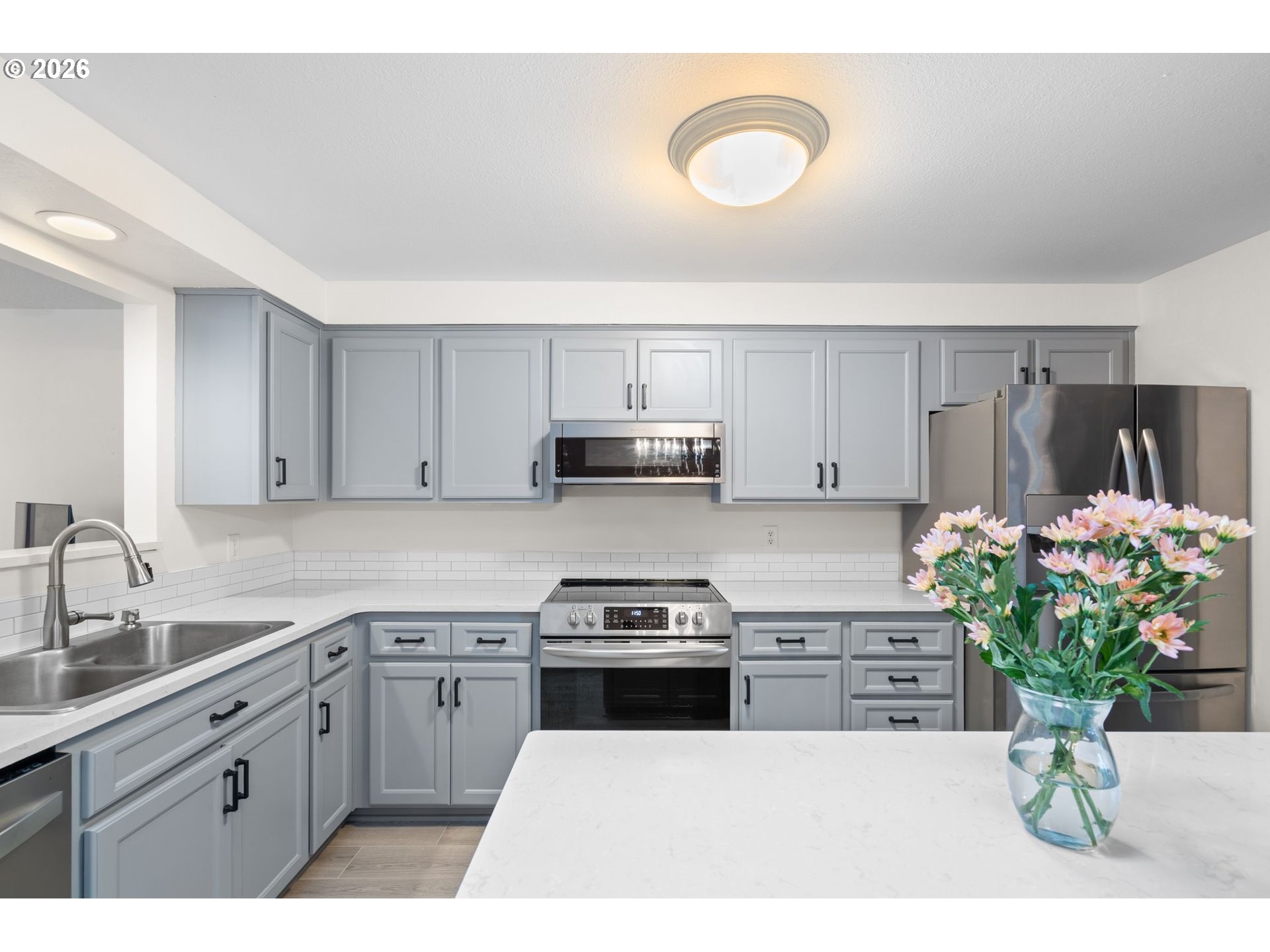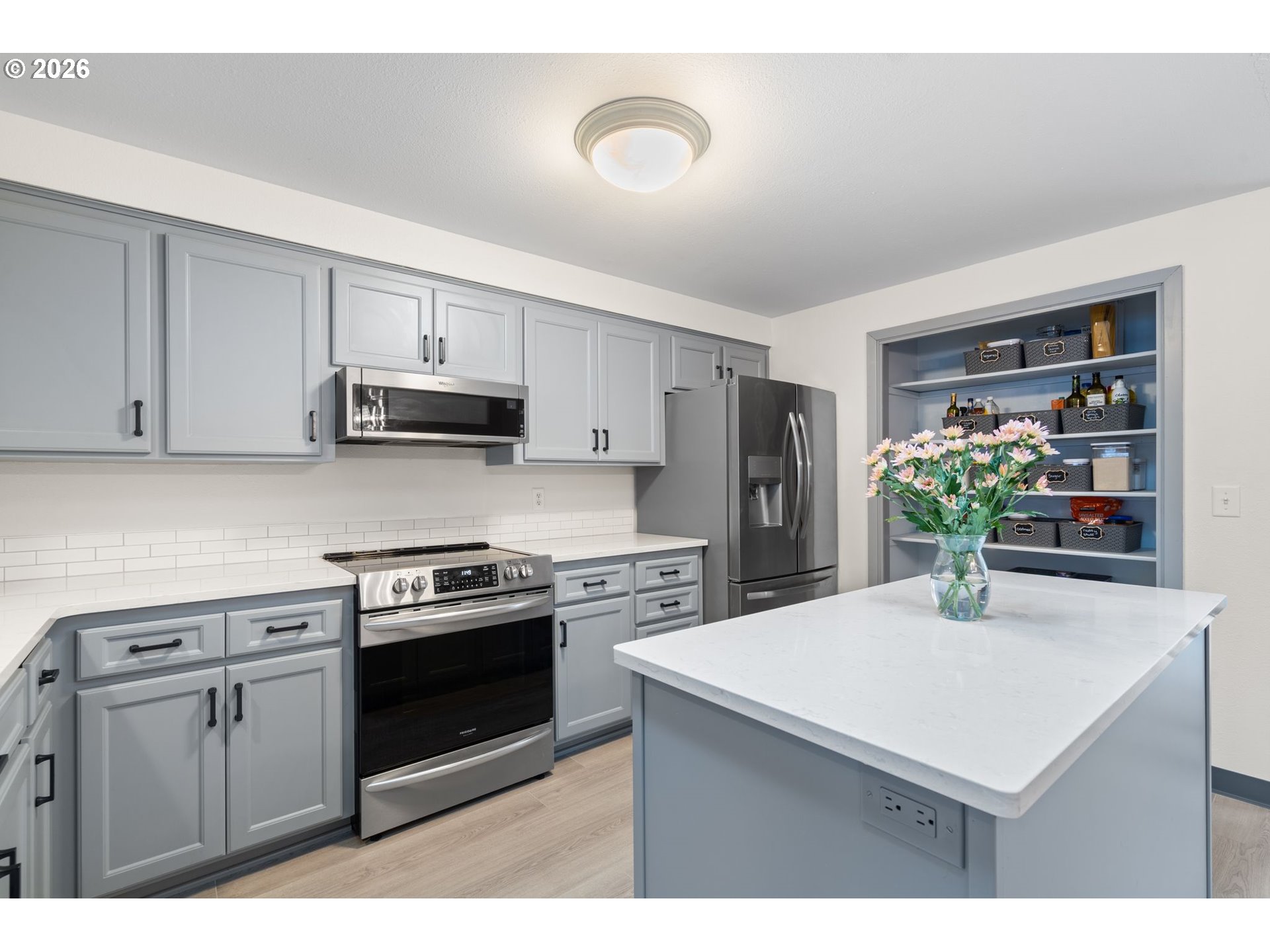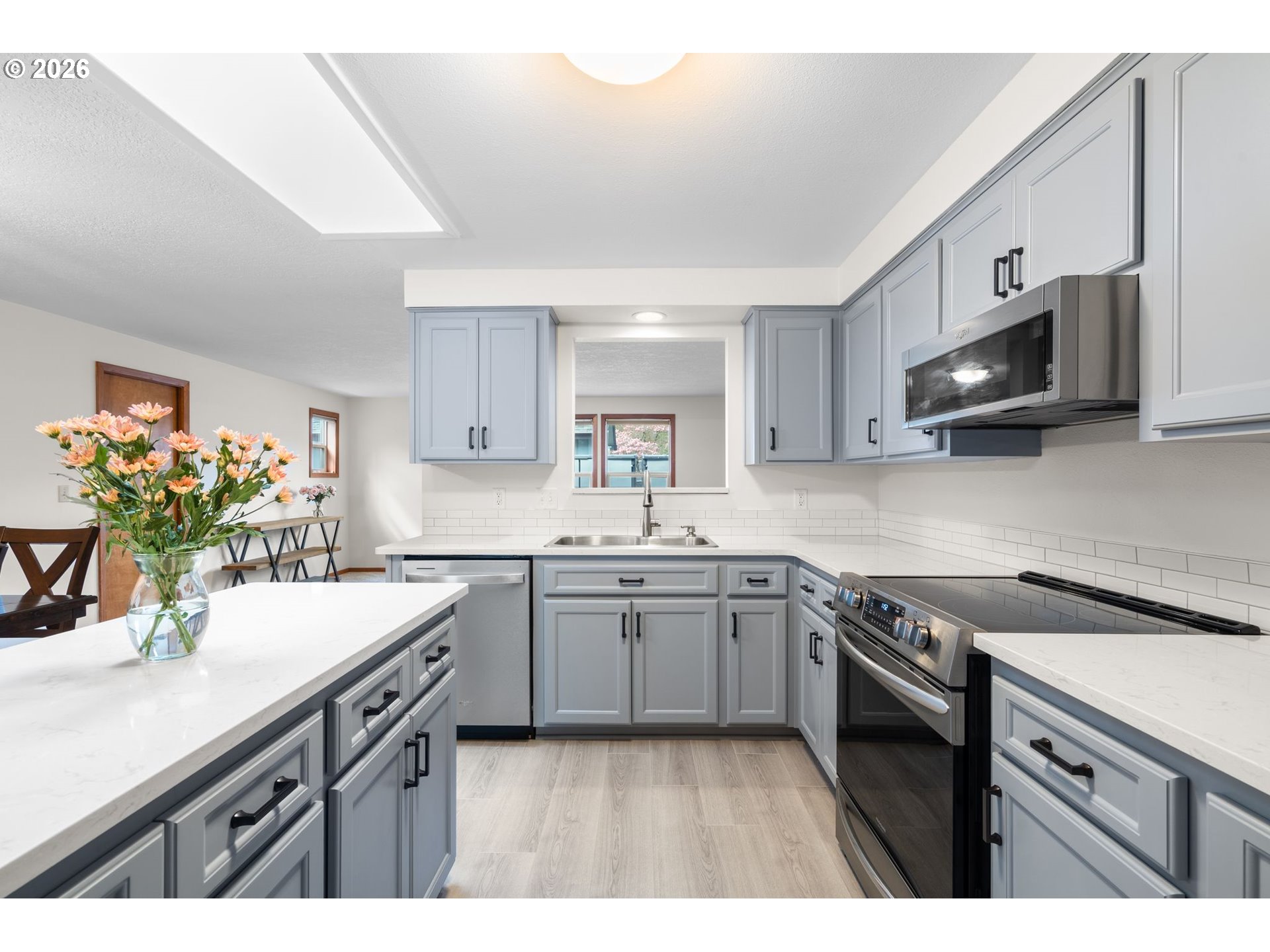 Located in the heart of North Canby and surrounded by a community of rural beauty and modern amenities this single level home has been beautifully maintained and well cared for. An ideal, easy-flow floor plan with a living room and family room bookending a centrally located kitchen that’s perfect for gathering and entertaining. The primary suite is set on one side, while the 3 additional bedrooms and bathroom are on the other offering space and privacy for all. Updates & upgrades include new roof in Fall 2025, furnace & AC in 2021, new carpet and interior paint within the last 5 years, remodeled kitchen (2022) with timeless quartz countertops, stainless steel appliances, added island and soft close cabinets. Outside you’ll find RV parking, outdoor sheds for storage and a fully fenced spacious backyard that includes lush greenery, mature trees and a large deck, perfect for alfresco entertaining, gardening, or lounging. Walk or bike as you explore Mollala State Park nestled along the Willamette river, a round of golf just steps away at Willamette Valley Country Club, explore activities and events at the Clackamas County Fairgrounds, stroll to Swan Island Dahlias where blooms await to adorn your home this Summer, plus much more. Quaint Canby living awaits.