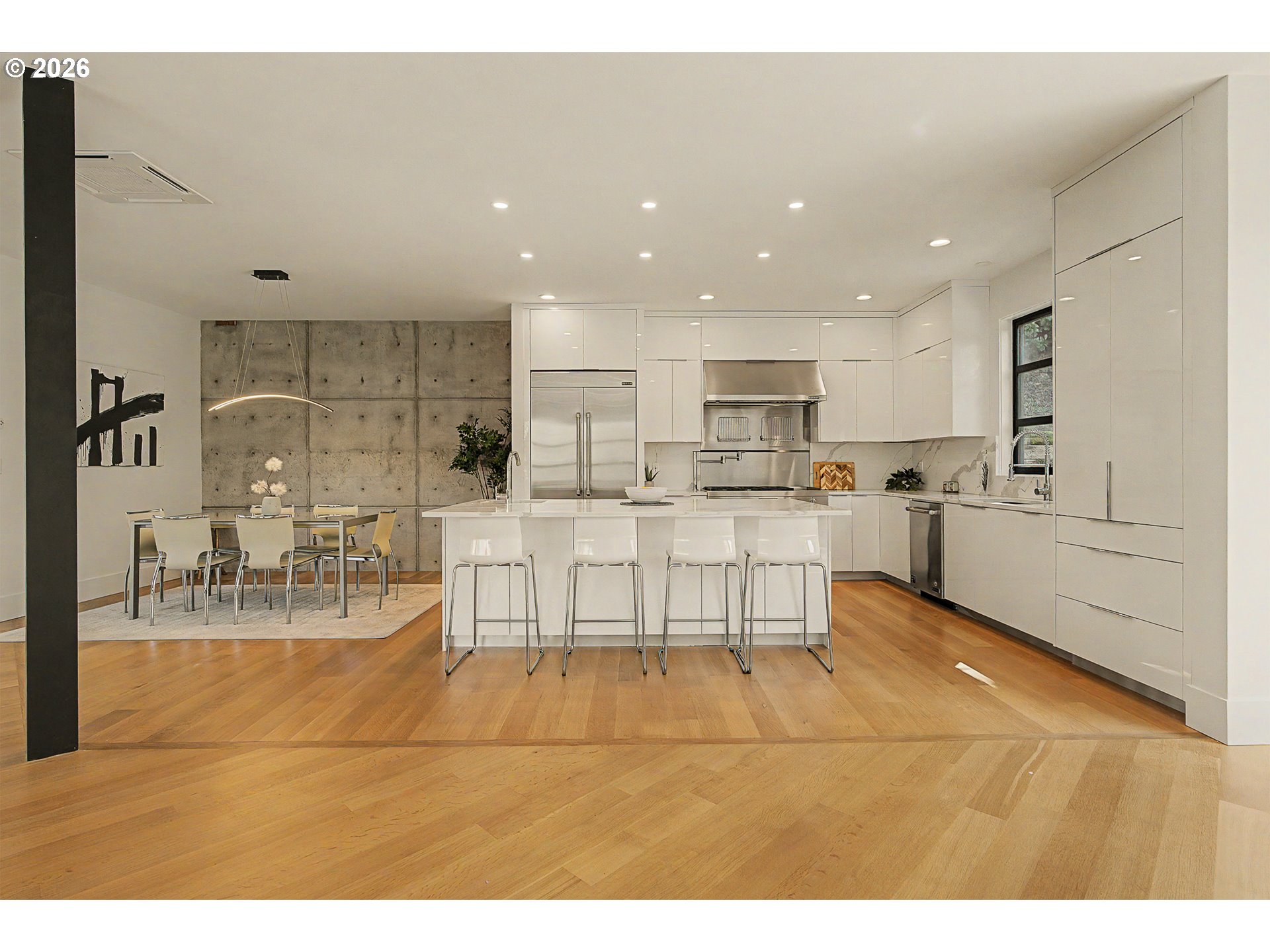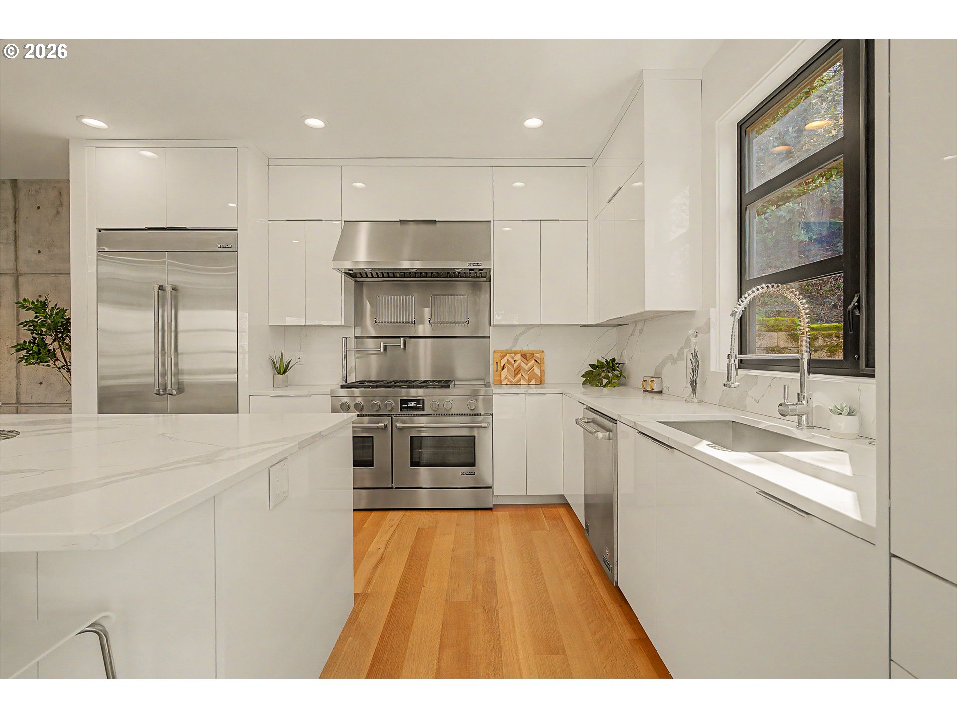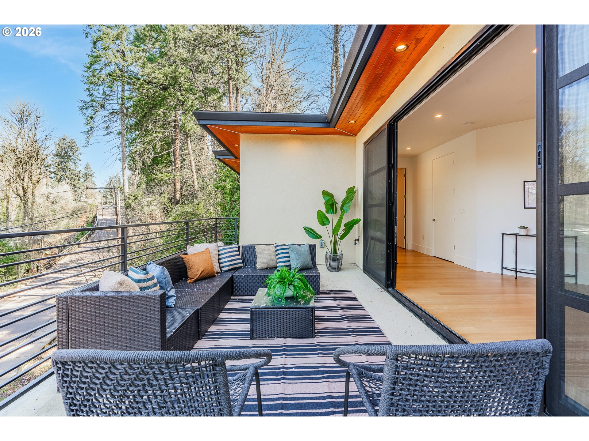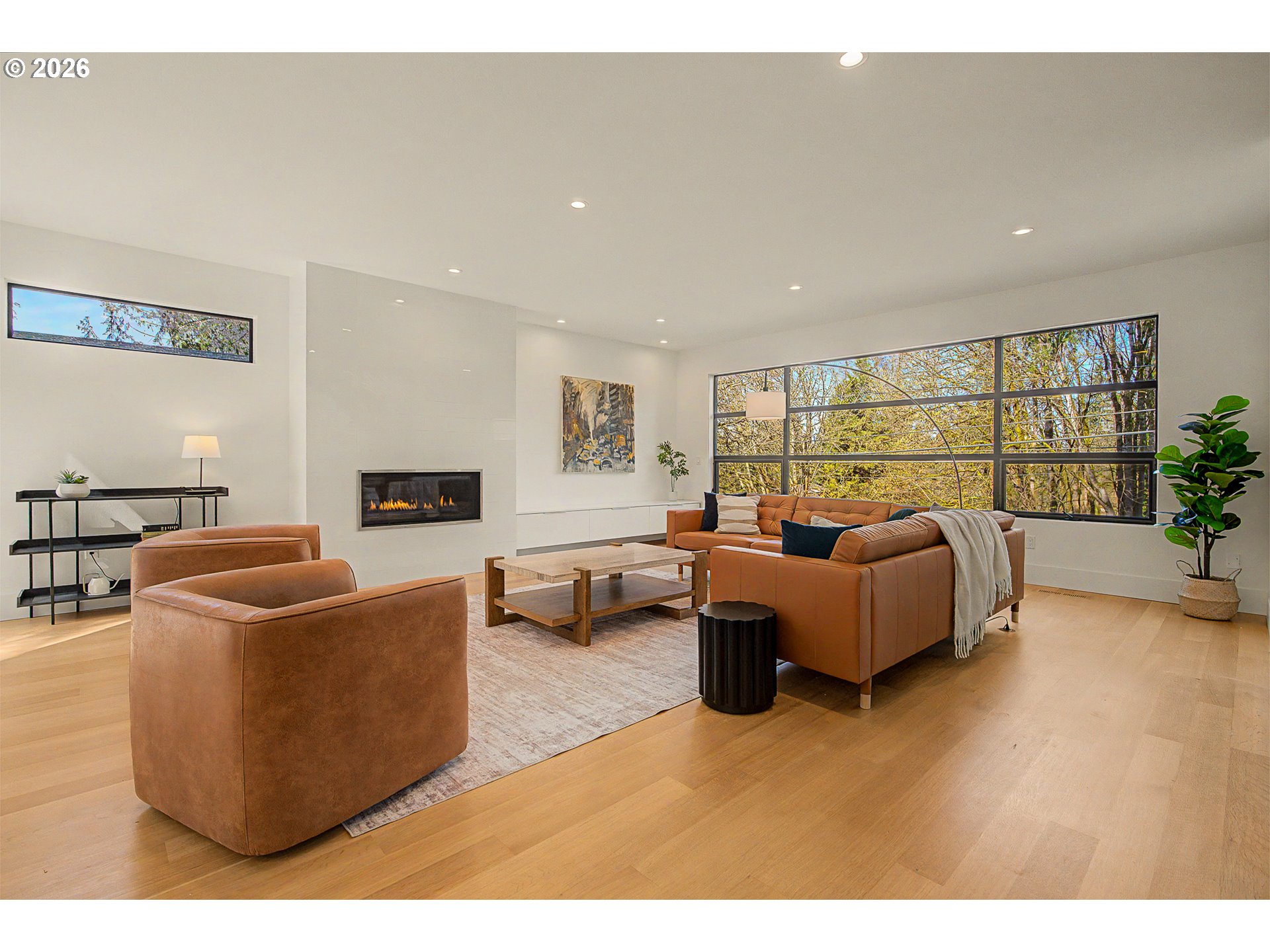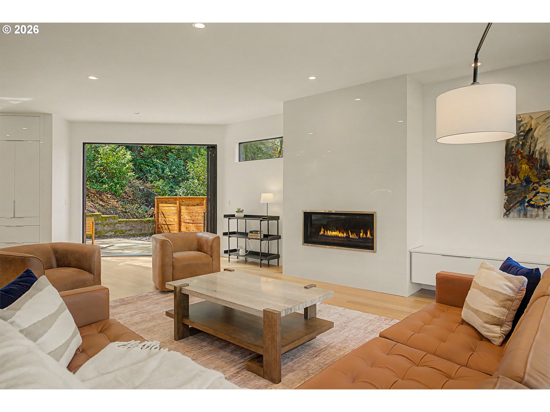 Light-filled ultra contemporary home with designer kitchen and seamless indoor-outdoor living, located in the Hallinan neighborhood, just south of Old Town Lake Oswego. This spectacular home has approximately 2,795 square feet, 3 bedrooms and 4 full bathrooms. It has contemporary elements like concrete walls, a floor-to-ceiling tiled gas fireplace, stacking tri-fold glass doors to an outdoor dining area, and a chef's kitchen with commercial quality features. It is thoughtfully designed with an open concept layout including tall ceilings, oversized doors, and walls of windows that bring in abundant natural light. The state-of-the-art kitchen is equipped with custom cabinetry, high-end JennAir stainless steel appliances, dual ovens, dual sinks, two dishwashers, and a pot filler. There is a spacious family room upstairs that opens up to an oversized second-level balcony that offers peaceful neighborhood and territorial views. The primary bedroom features a large walk-in closet, spa-like bathroom with heated floors, a soaking tub, and a walk-in shower with all the fixtures. There is a 2-car garage featuring a modern glass door and generous storage. Designed for both elevated entertaining and comfortable everyday living, the home offers bright, connected spaces and a seamless indoor-outdoor lifestyle. Ideally located near Lake Oswego’s top restaurants, cafés, boutique shopping, farmer’s market, the lake, Willamette River, parks, and recreation.