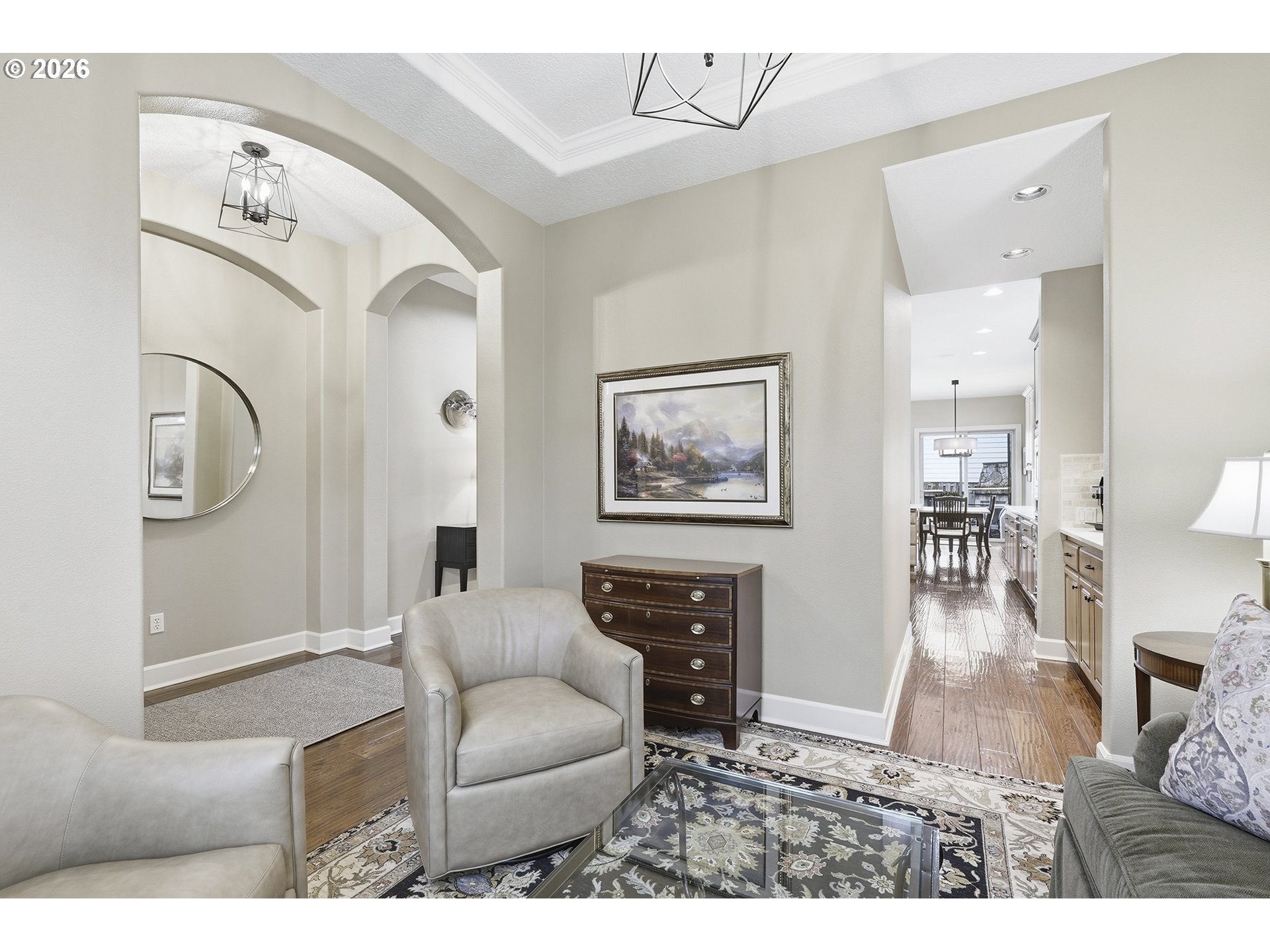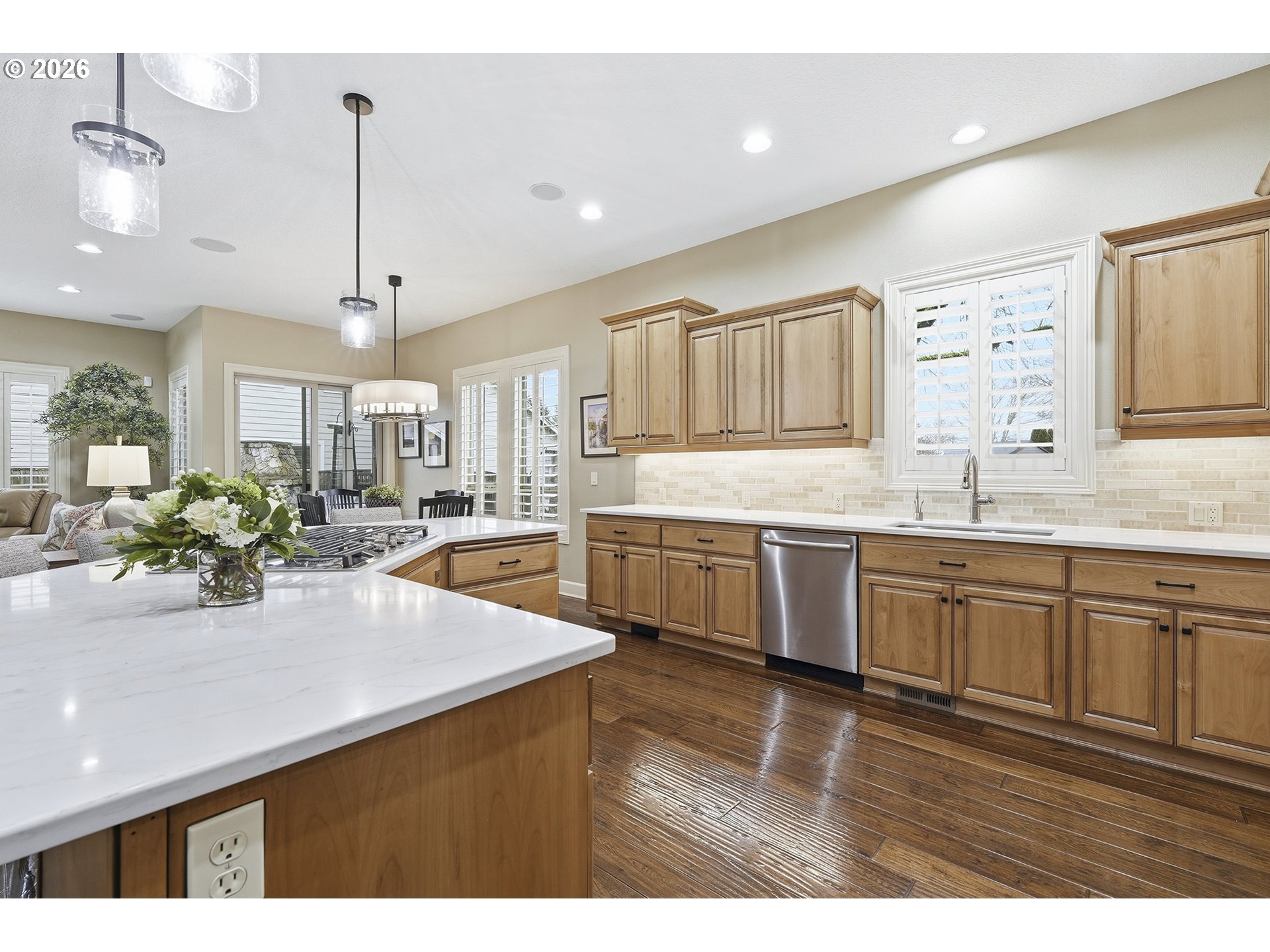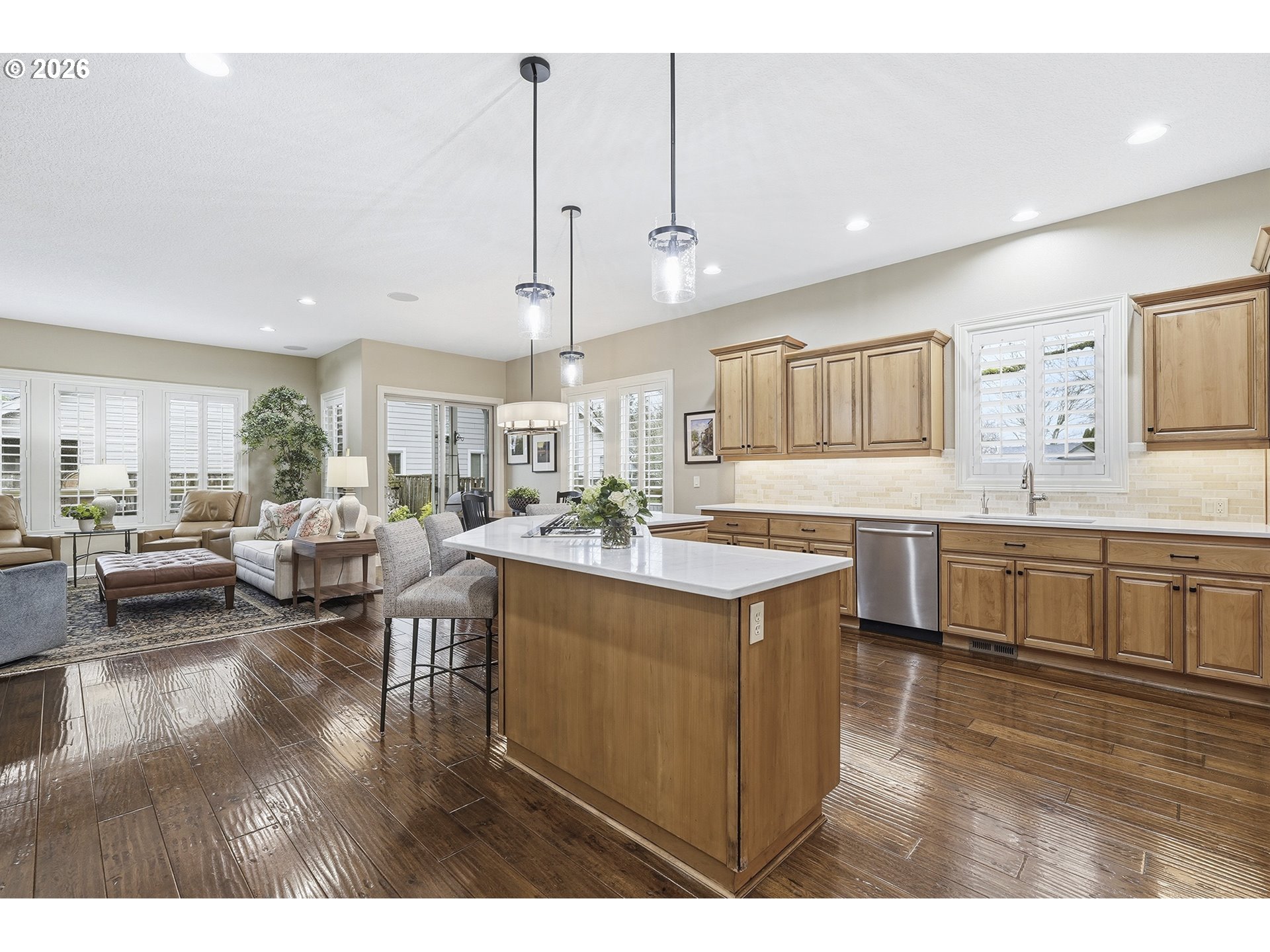 Welcome home to this elegant Renaissance-built Craftsman, immaculately maintained and thoughtfully updated, set on a corner lot in Wilsonville’s highly desirable Canyon Creek neighborhood. From the moment you step inside, you’re greeted by warm living spaces, timeless craftsmanship, and a layout designed for everyday comfort, including a primary suite on the main level. Offering 3 bedrooms, a loft, and 2.1 bathrooms, the home features a refreshed kitchen with new quartz countertops, backsplash, sink and faucet, along with a GE Profile 5-burner gas cooktop. The living room centers around a beautifully renovated fireplace with a new surround, creating a warm and inviting space to gather. Built with quality and attention to detail, the home showcases rich millwork, alder cabinetry, and built-ins that maximize storage throughout. Pride of ownership is evident with over $100,000 in thoughtful updates, including a newer Bryant furnace, new hot water heater, epoxy garage floors with custom storage cabinets, full surround sound, custom shutters on every window, newer interior paint and carpet, built-in wine storage, and updated lighting throughout. The backyard is designed for easy living with a peaceful water feature, low-maintenance artificial turf, a gas fireplace, and full irrigation, creating a private space perfect for relaxing or entertaining. Located just minutes from I-5, Argyle Square shopping, and top-rated schools, this home offers easy access to both north and south Wilsonville. HOA includes access to the neighborhood pool and park.