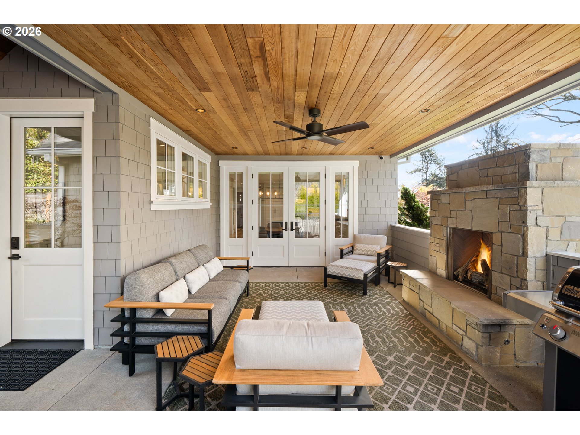 A rare blend of timeless character, modern comfort, and premier walkability, this south-facing corner lot custom home by Stoneridge Custom Development anchors one of First Addition's most desirable settings. Just steps from the Lake Oswego Public Library and downtown amenities, the location offers both convenience and a true neighborhood feel. Designed for entertaining, the wide-open floor plan is something you truly have to see to believe. White oak floors lead into a light-filled layout with a quartz island, Sub-Zero refrigerator, Wolf 48-inch gas range, wet bar, and seamless flow into the vaulted great room with shiplap ceilings, built-ins, and a gas fireplace. The home offers outdoor living where you can enjoy the covered front patio overlooking the spacious lawn, or retreat to the more private side patio with a gas fireplace, barbecue, and ample seating. Upstairs features a vaulted primary suite with an attached office and a spa-like bath with soaking tub, walk-in shower, double vanity, and walk-in closet. Two additional bedrooms, a full bath, and a laundry room with sink and storage complete the upper level. Smart features include a whole-home smart system with Nest thermostat and security. Opportunities like this in First Addition are few and far between. Schedule your private showing and see it for yourself.