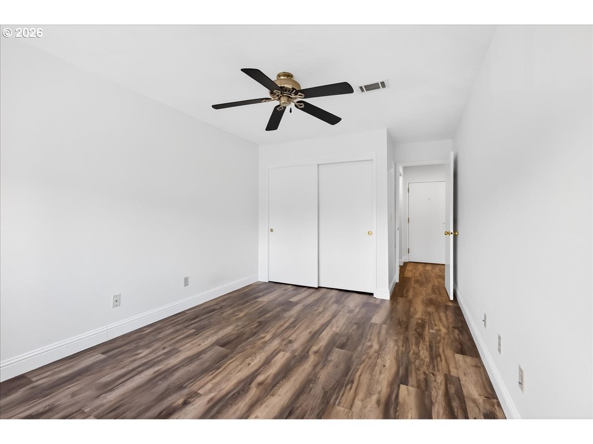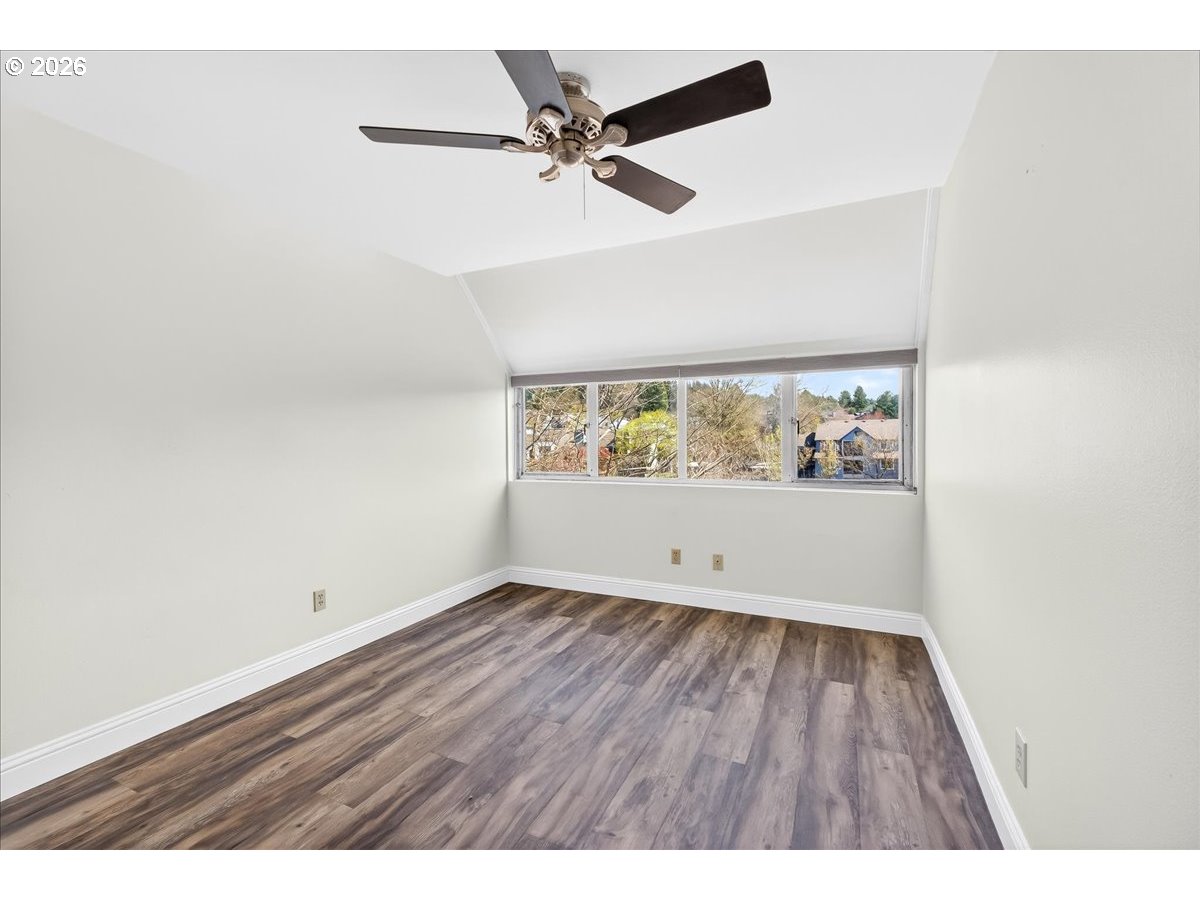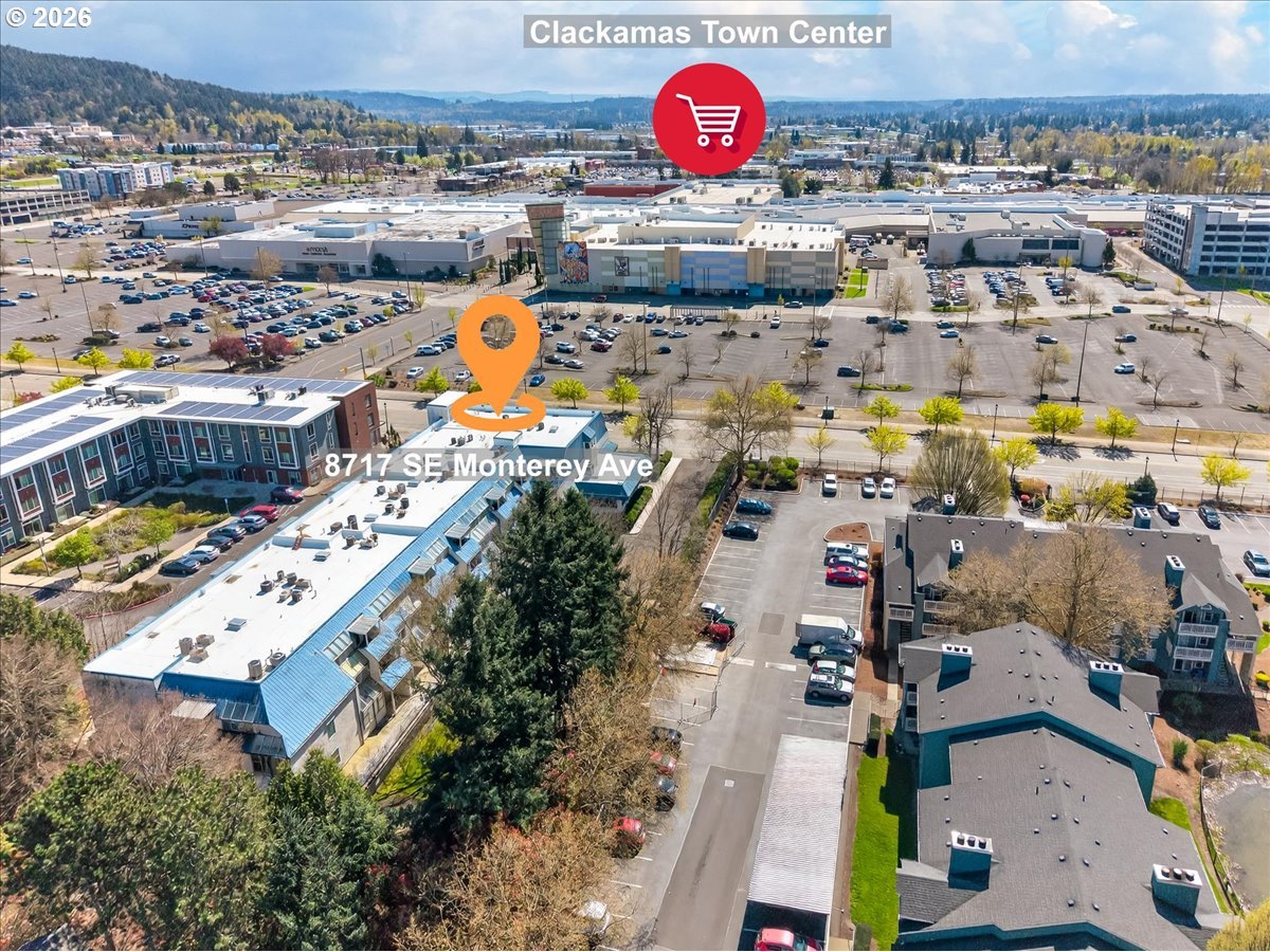 Welcome home to this move-in ready top-floor condo ideally located in the heart of Happy Valley. This inviting two-bedroom, one-bath residence enjoys an eastern exposure, filling the home with beautiful morning light and offering peaceful views from the private balcony — the perfect spot for coffee or relaxing at the start of your day.Designed for comfort and convenience, the home features updated Pergo flooring, forced air heating and central air conditioning, and the ease of in-unit laundry with washer and dryer included. The open living spaces create a functional layout ideal for everyday living or entertaining.All appliances are included, making this truly a turnkey opportunity. A secured garage parking space and convenient elevator access add to the effortless lifestyle this home provides.Unbeatable location just across the street from Clackamas Town Center, placing shopping, dining, entertainment, and transit options right at your doorstep while maintaining a comfortable residential feel.Easy living, exceptional convenience, and move-in ready comfort — this Happy Valley condo is not to be missed.