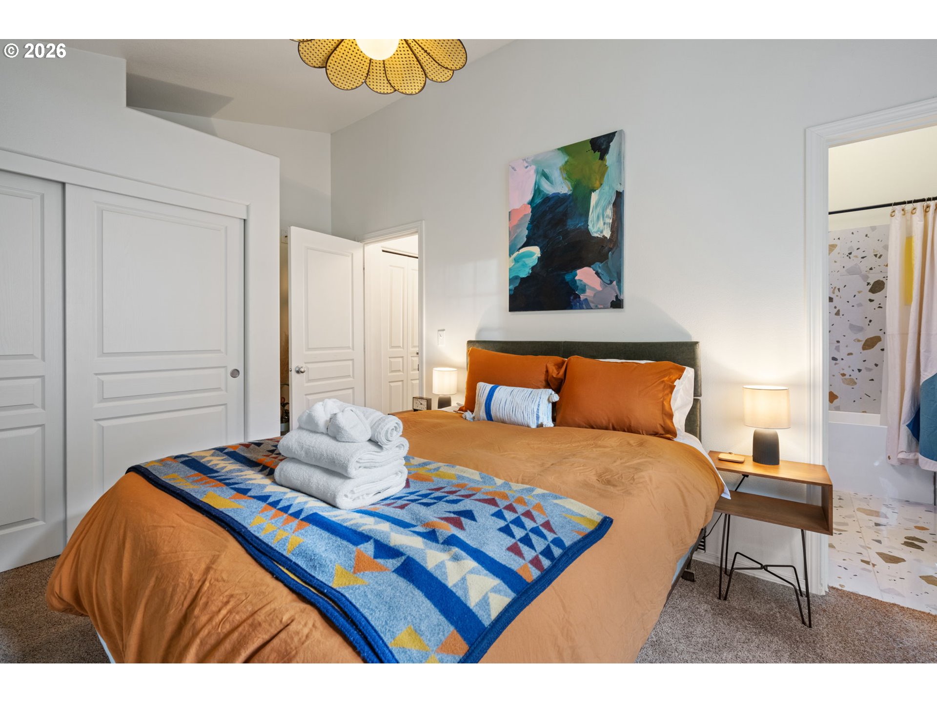 Don’t miss this coveted end-unit condo in Government Camp’s desirable Collins Lake Resort—ideal as a vacation home, ski retreat, or short-term rental. Bright and modern, this mountain getaway features soaring ceilings, a stone fireplace, and an open layout with a private deck overlooking the forest and creek, plus propane hookup for easy outdoor entertaining.The vibrant kitchen includes granite countertops, updated tile backsplash, and stainless steel appliances. Upstairs offers a spacious primary suite with ensuite bath, plus two additional bedrooms and a full bath. Both bathrooms were recently renovated with new tile, fixtures, bathtub and shower.Offered fully furnished with cool, modern, design-forward pieces, this turn-key property is ready to enjoy or rent. The tandem garage provides ample space for gear, storage, and recreation.Enjoy resort-style amenities including pools, hot tubs, lodge, trails, and sauna—all just a short walk to Government Camp shops, dining, and Mt. Hood recreation. Successful 5-star short term rental with rental average of over $2800 per month.