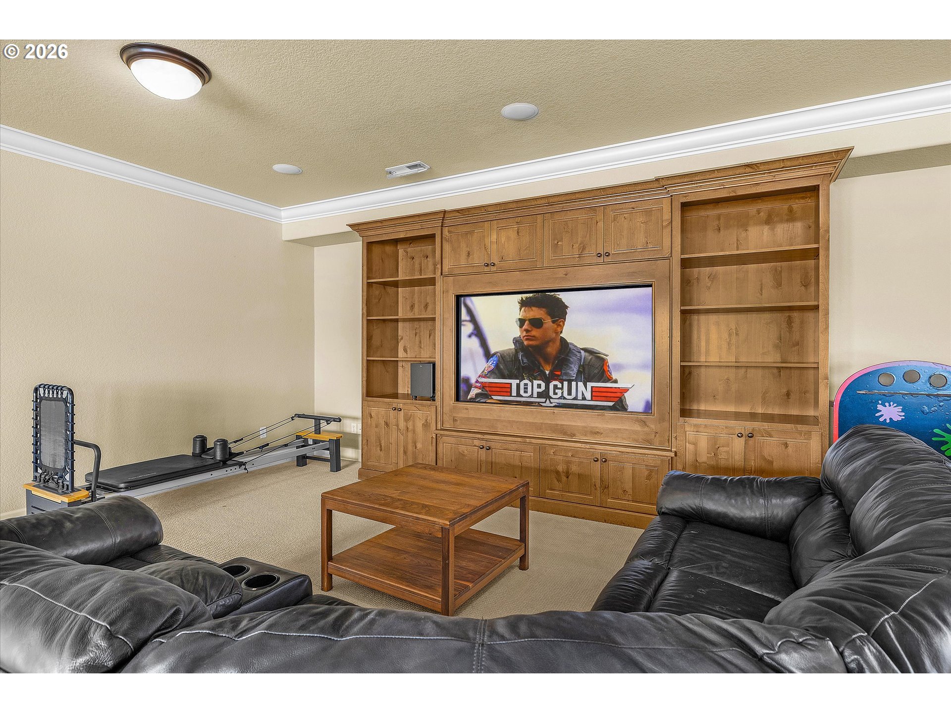 This exceptional custom luxury home in Happy Valley captures two stunning mountain views and delivers the perfect blend of elegance, space, and lifestyle. Featuring 5 bedrooms, 4.1 bathrooms, and 5,480 sq ft, this home is designed for both refined living and effortless entertaining.Step inside to soaring vaulted ceilings, expansive picture windows, and a flowing open floor plan filled with natural light. The chef’s gourmet kitchen with island is a showpiece, featuring rich custom cabinetry, travertine flooring, slab countertops, a gas range, and a classic farmhouse sink. The adjoining breakfast nook opens to a spacious covered patio, ideal for year-round indoor-outdoor living.The grand living area is anchored by a striking stone fireplace and walls of windows overlooking the resort-style backyard. The main-level primary suite offers privacy and convenience with spa-inspired finishes—perfect for main-floor living. A dedicated home office on the main level provides an ideal space for remote work or study.Outdoors, enjoy your own private retreat with a sparkling in-ground pool and hot tub, expansive patio, and fully fenced backyard—perfect for entertaining or relaxing while taking in the surrounding scenery. The grounds are enhanced by an incredible edible garden and fruit orchard, featuring strawberries, raspberries, blueberries, huckleberries, blackberries, and marionberries, along with mature fruit trees including Italian plum, pear, apple, red cherry, yellow cherry, pie cherry, fig, and mulberry—a rare and desirable addition for those seeking a true garden-to-table lifestyle.Upstairs, a generous bonus room/media room provides flexible living space, along with a dedicated at-home gym area, offering convenience for wellness and fitness without leaving home.Located in desirable Happy Valley, Oregon, this home offers proximity to top-rated schools, parks, and amenities while delivering the tranquility of a luxury residential setting.