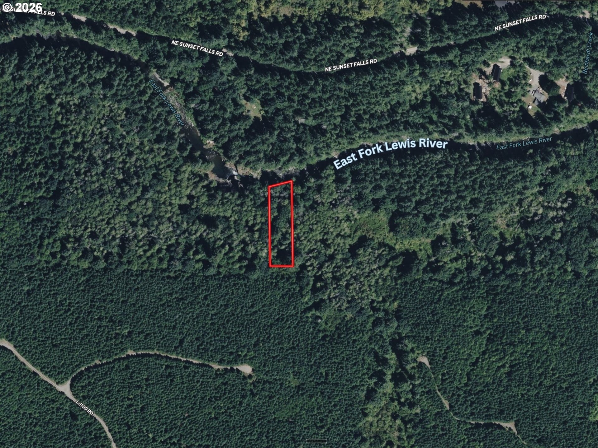 1-acre lot featuring over 100 feet of frontage on the East Fork Lewis River with views of Horseshoe Falls. It borders the Yacolt Burn State Forest, which spans over 90,000 acres and is known for hiking, mountain biking, horseback riding, ORV riding, and camping. The East Fork Lewis River is renowned for whitewater rafting and excellent fishing featuring salmon runs (chinook, coho, chum) and trout (rainbow, cutthroat, steelhead). This parcel is heavily secluded and private. It is accessed by traversing a network of forest service roads and culminates with a short hike to the property. It best-suited as a recreational basecamp, weekend getaway, or camping spot, but could offer potential for establishing a dry cabin. Located east of Battleground and within reasonable proximity of Portland. This is a rare opportunity to own an extremely private, secluded riverfront setting with a waterfall view surrounded by natural beauty & immense public land to explore.