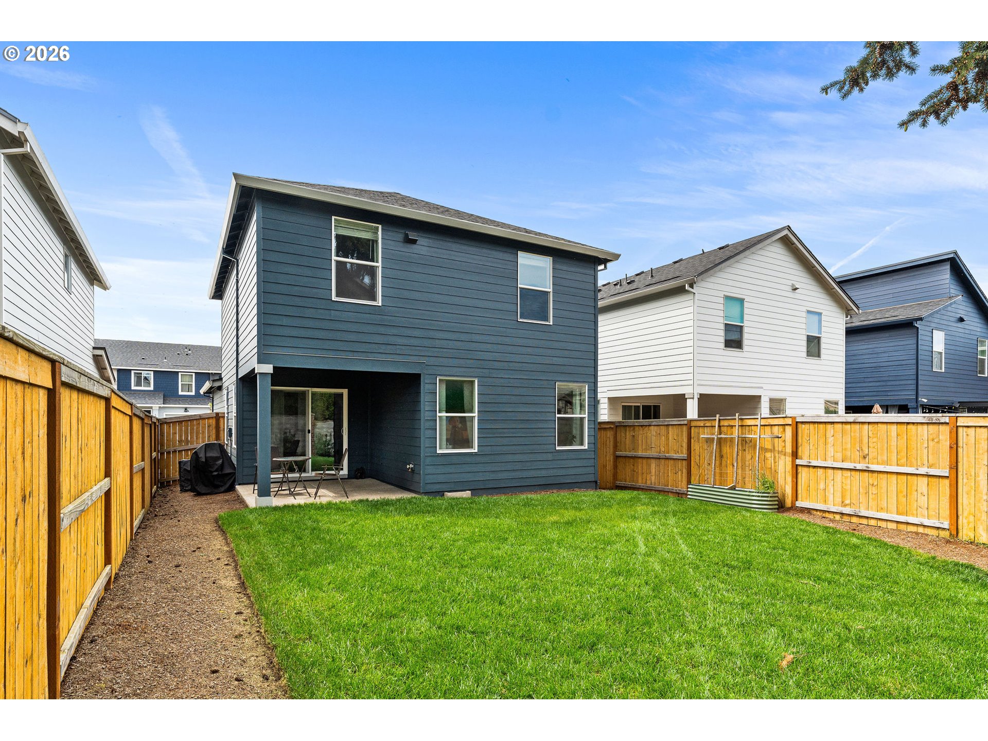 Better-than-new resale opportunity in the SOLD OUT Saddle Club Estates! This beautifully maintained home offers 3 bedrooms and 2 baths, thoughtfully designed for both comfort and functionality. Enjoy a welcoming mudroom with built-in storage, a modern kitchen featuring quartz countertops, shaker-style white cabinetry, pantry, and generous counter space with a breakfast bar, perfect for everyday living and entertaining. The main level showcases easy-care laminate flooring, while upstairs you’ll find a spacious primary suite with a walk-in closet, well-sized secondary bedrooms, and a conveniently located laundry room just steps away. Step outside to a fully fenced backyard with a covered patio which is ideal for year-round gatherings. The community offers great amenities including a playground and basketball court, and you're just a short walk to Dogwood Park. Located close to everyday conveniences like WinCo, Costco, Fred Meyer, local dining, coffee shops, and more, this home truly has it all. All appliances included, including refrigerator, washer, dryer, blinds, and window coverings. Move-in ready and waiting for you!