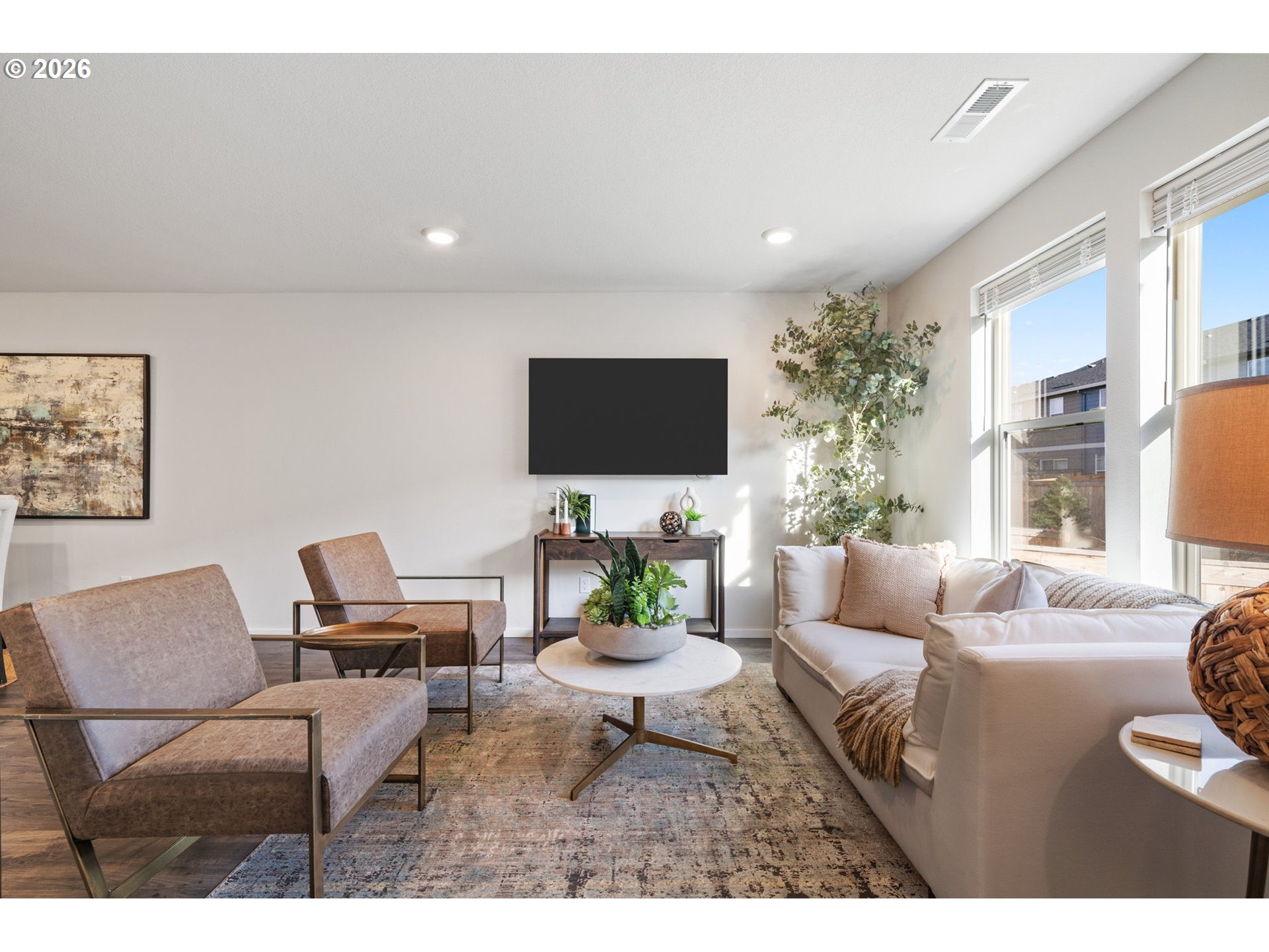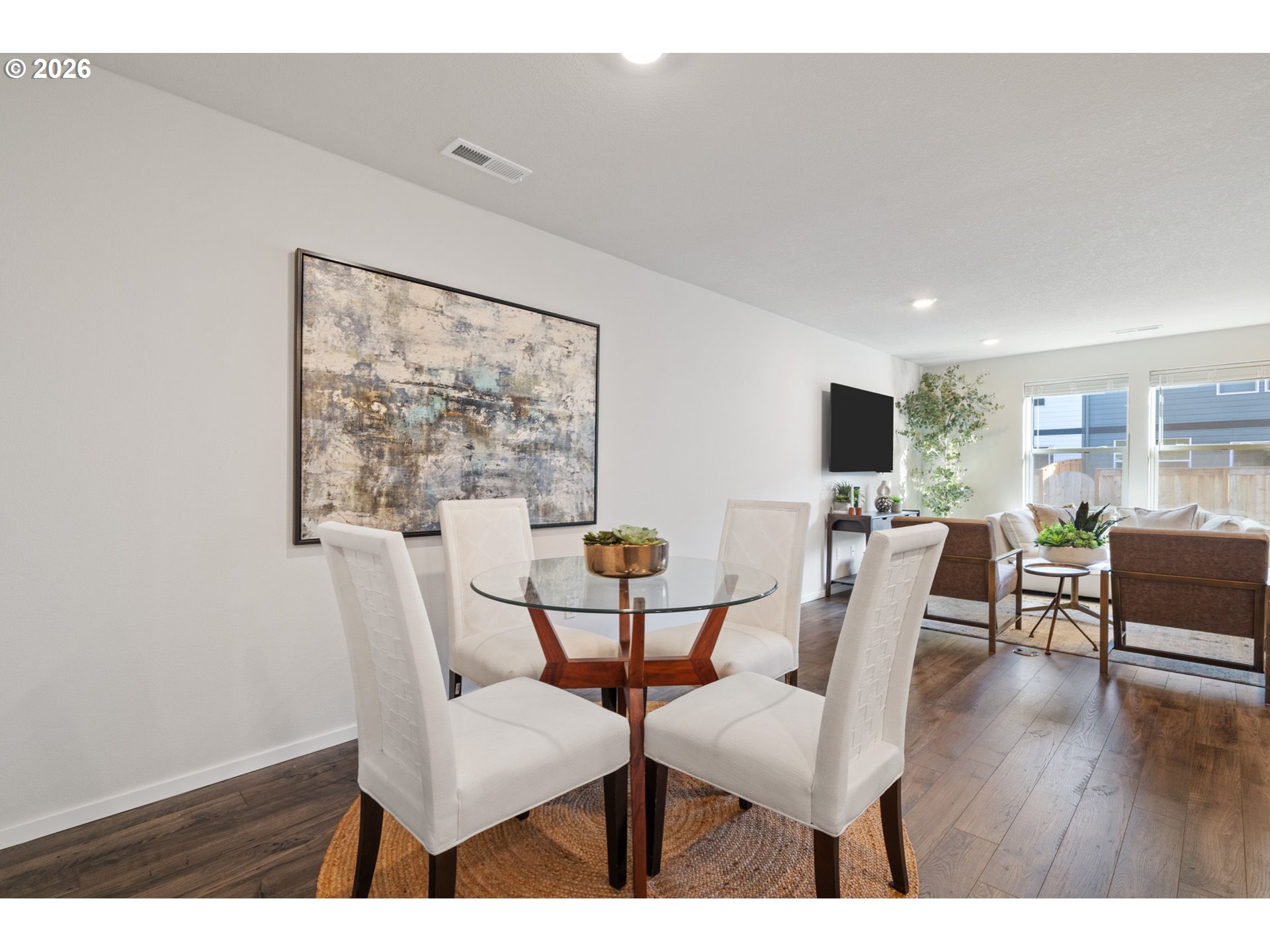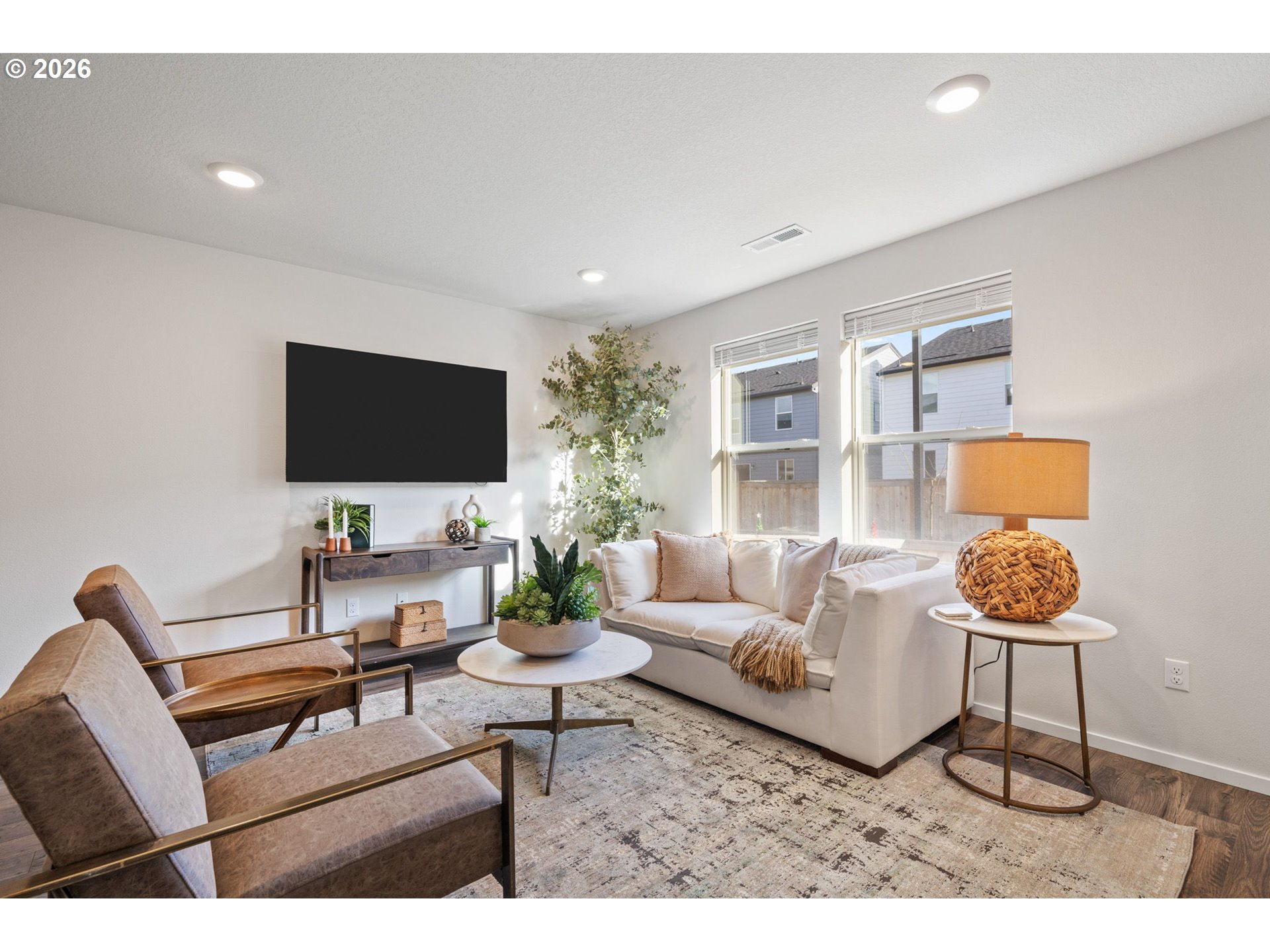 Welcome home to this beautifully designed townhome offering 1,434 square feet of thoughtfully planned living space, complete with 3 bedrooms, 2.5 bathrooms, and an attached 2-car garage. A winding, green-scaped pathway leads you to a charming, fenced front yard with low-maintenance irrigated landscaping—cute, clean, and carefree year-round. Inside, the bright open-concept main floor is made for both everyday living and easy entertaining. The modern kitchen shines with quartz countertops, shaker-style cabinetry, stainless-steel appliances, and island that anchors the space beautifully. Upstairs, a versatile tech nook provides the perfect work-from-home or homework station, while a full laundry room keeps life organized. Two spacious secondary bedrooms share a well-appointed hall bath, while the private primary suite is thoughtfully separated at the opposite end of the floor—complete with two closets and ensuite bath for your own personal retreat. Ideally located for commuters, enjoy quick access to I-205 and SR-500 for easy travel to Portland, PDX, and downtown Vancouver. Just minutes away are Fred Meyer, Costco, and a variety of dining and shopping options. Around the corner, Dogwood Neighborhood Park offers walking paths and mature trees, while the community itself features a playground and basketball court for added recreation.
