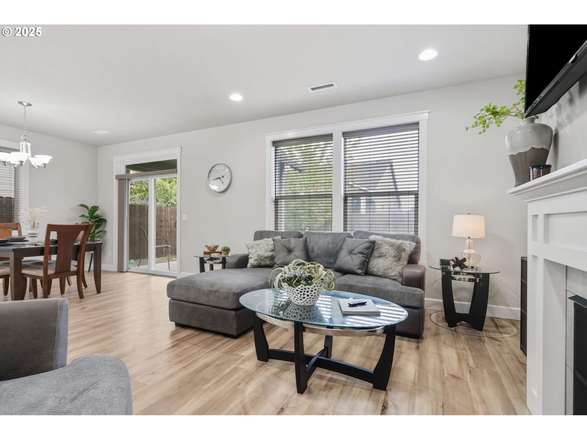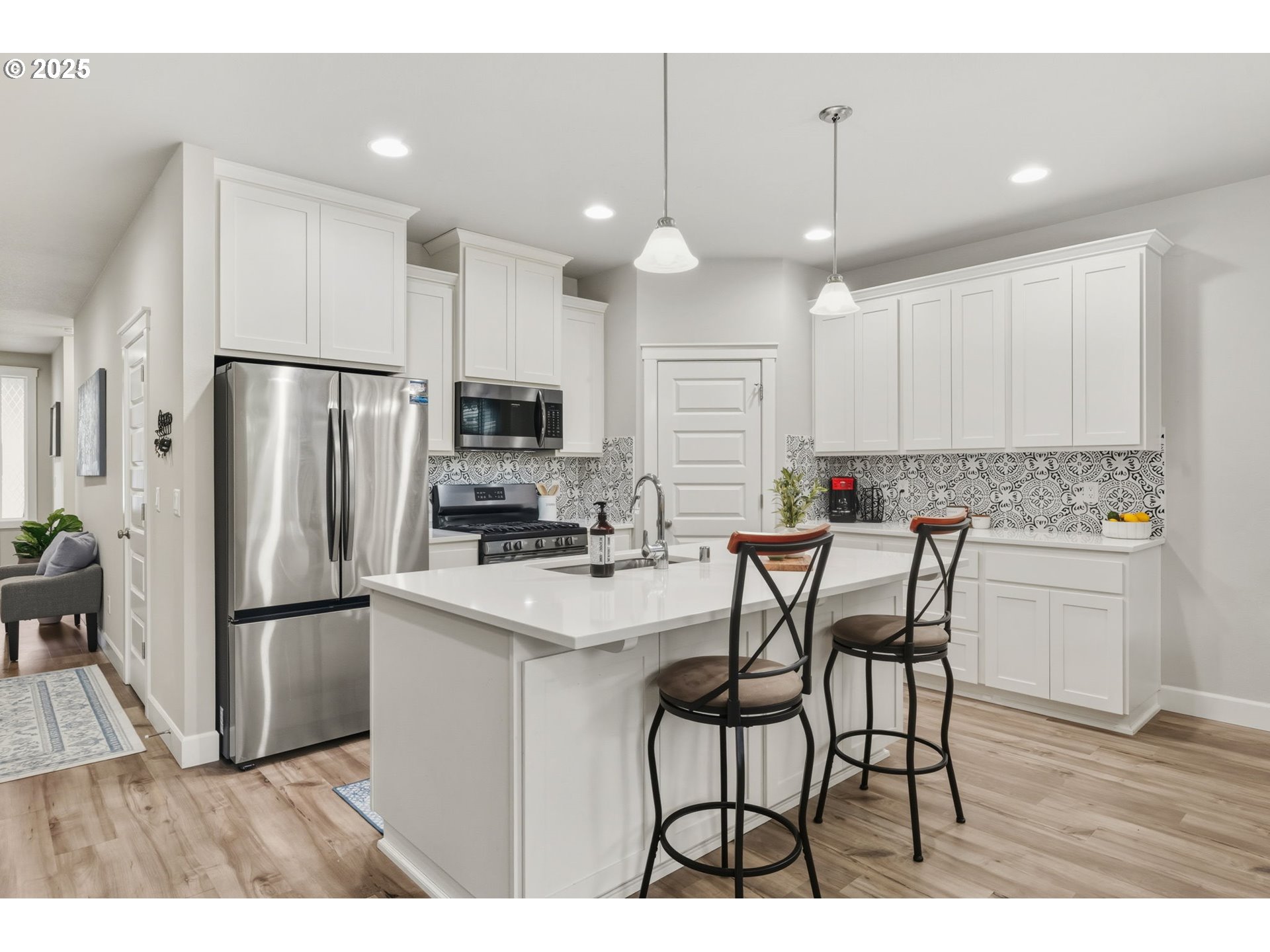 This stylish one-level has it all! Fantastic great room floor plan and fenced backyard with covered patio, set up perfectly for entertaining and indoor/outdoor enjoyment!The kitchen has a custom tile backsplash, an island with seating, a large pantry, and opens into the eating nook and living area. The slider to the backyard is right off the great room. The living area has a cozy gas fireplace with a white wood mantel, light and bright with upgraded LED bulbs, and the flooring is stylish wood-look laminate and new carpet. Close to everything, and an assumable FHA loan to help keep that rate low, too!