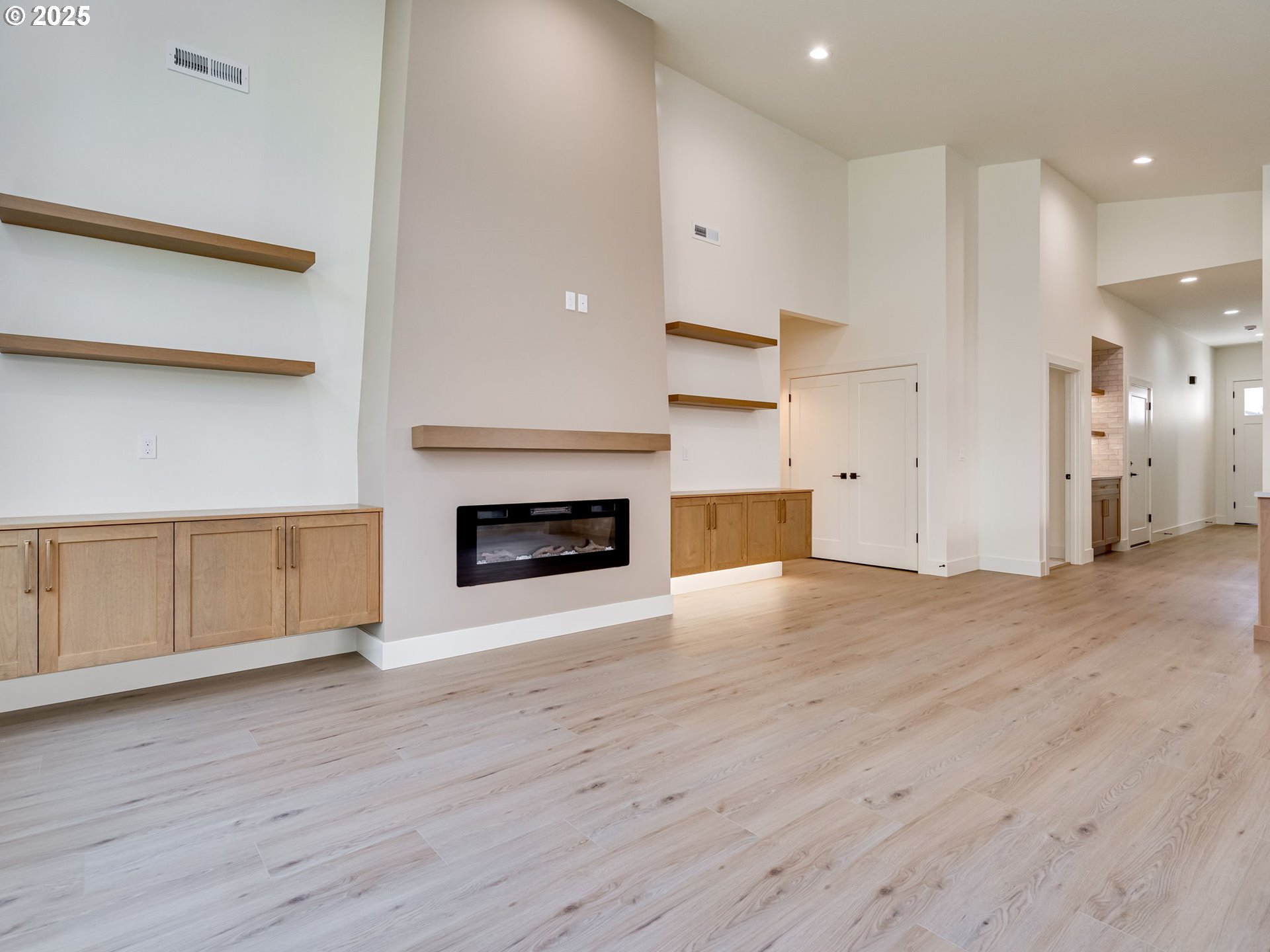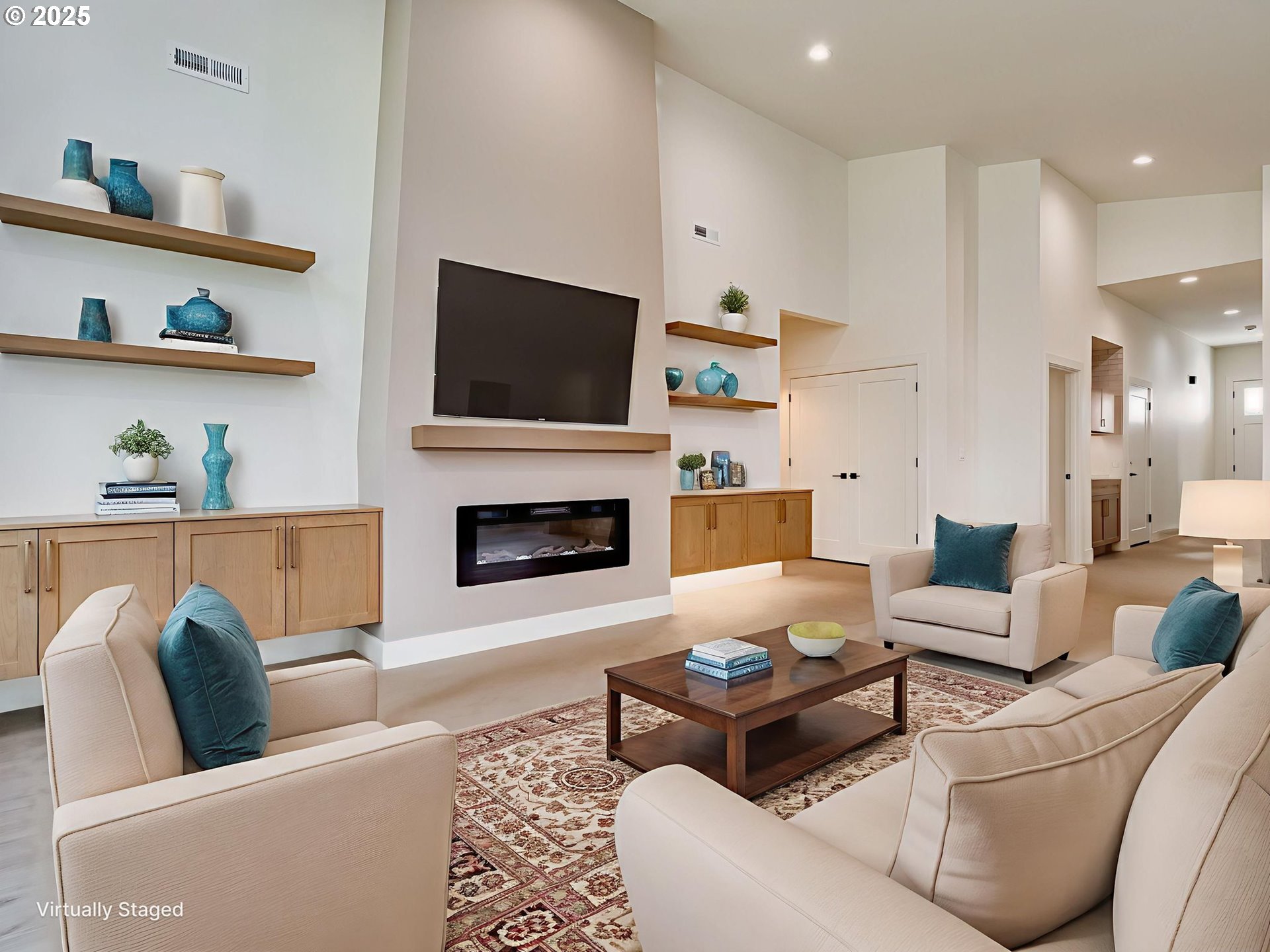 FOR MAPPING USE: 5414 NE 109th St, Vancouver, WA 98686. Welcome to this stunning, brand new one-level home ideally located with quick access to I-5, I-205, Legacy Hospital, and major amenities. Tucked into a quiet street and fully landscaped, this residence combines modern design with timeless comfort. Inside, you'll find soaring ceilings, custom trim details, and high-quality hard surface flooring throughout. The gourmet kitchen features a large quartz island, two-tone cabinetry, soft-close drawers, and sleek matte black fixtures—all open to a bright great room with built-ins and a statement fireplace wall. The spacious primary suite boasts a designer feature wall, cove-lit ceiling, and spa-inspired ensuite with dual sinks, soaking tub, and walk-in tile shower. Additional highlights include a covered back patio, walk-in pantry, dedicated laundry room, and plenty of storage. Modern, open, and move-in ready—this home is built for both style and function.