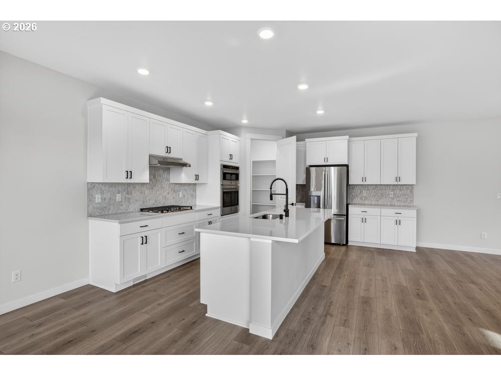 FreeStandingRefrigerator, GasAppliances, Island, Pantry, Quartz, StainlessSteelAppliance