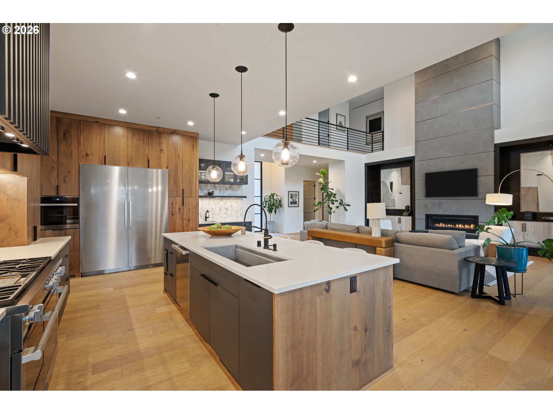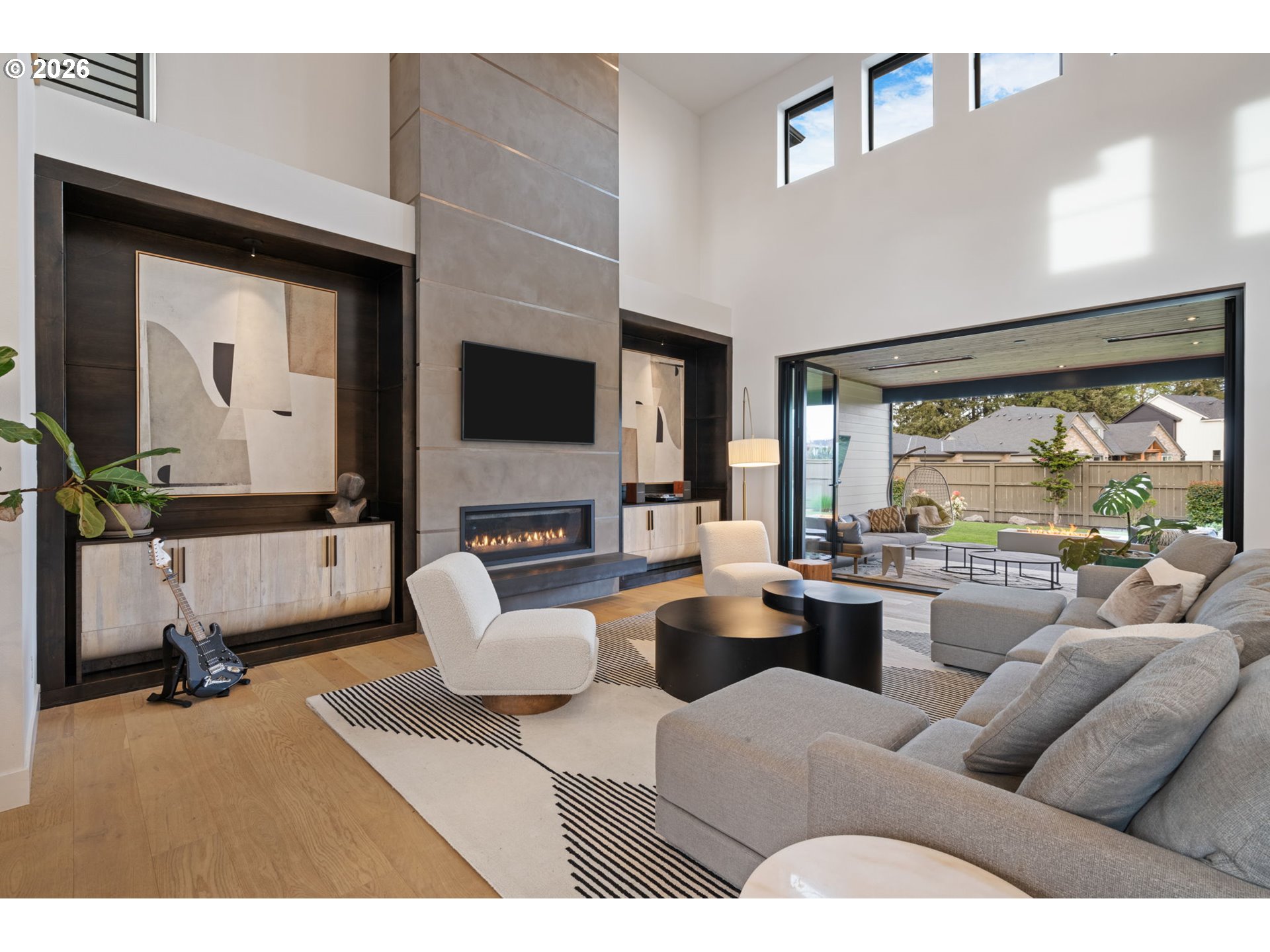 Welcome home to this 2021 Parade of Homes “Best in Show” winner, located in the highly sought-after Felida Overlook neighborhood just one block from the park and a quick stroll to dining and other amenities. This professionally designed 4-bedroom, 4-bath home blends timeless style with thoughtful functionality throughout.An impressive 11-foot custom glass and iron front door opens to a bright, expansive two-story great room, anchored by a hand-textured floor-to-ceiling fireplace. LaCantina accordion doors create seamless indoor-outdoor living, leading to multiple dining areas and beautifully designed outdoor spaces. Enjoy year-round entertaining with built-in heaters, a custom gas concrete fireplace, and a fully equipped outdoor kitchen.The kitchen is both clean and timeless, designed for gathering and everyday living. Rustic hickory cabinetry extends to 10 feet, paired with high-end Miele appliances, a large island with a Galley workstation sink, and a beverage area with built-in wine cooler. Step off the kitchen to the oversized Butler’s Pantry that adds both function and charm, perfect for bread making, pizza nights, and entertaining. A convenient service window connects directly to the outdoor dining area and full gas Hestan grill.The owner’s suite offers a peaceful retreat, featuring a Venetian hand-plastered, gold-embossed accent wall. The spa-like primary bath includes a double vanity, a large walk-in shower with dual shower heads, a soaking tub, heated floors, a Jonathan Adler chandelier, and soft porcelain tile for a truly relaxing experience.The main floor features a practical and beautiful mudroom, flexible office spaces and a state of the art gym with roll-up garage door. Upstairs, you’ll find two additional bathrooms, two generously sized bedrooms, and a bonus room with a beverage bar—ideal for guests or flexible living.This is a home that truly stands out—thoughtfully designed, beautifully finished, and ready to enjoy.