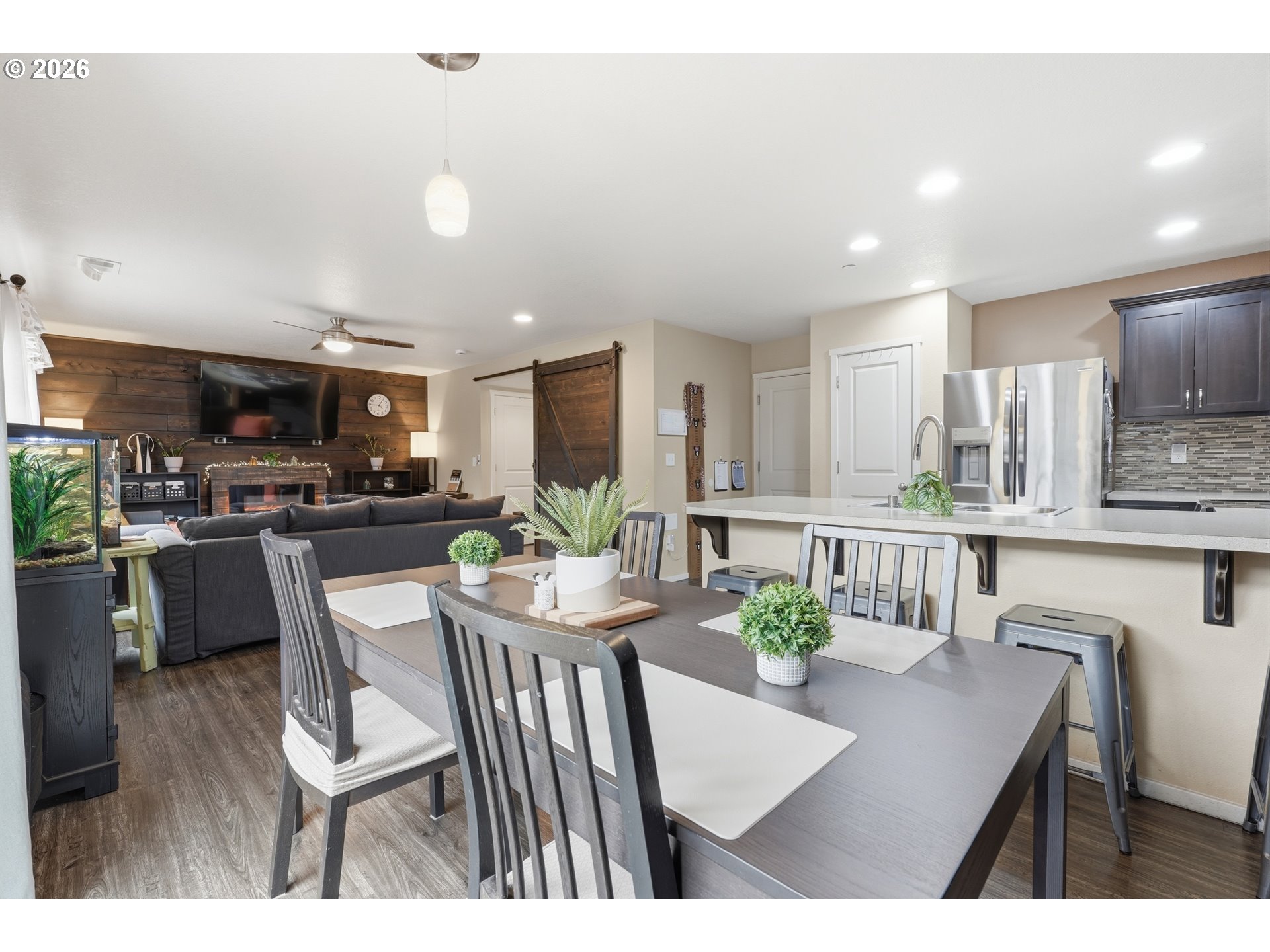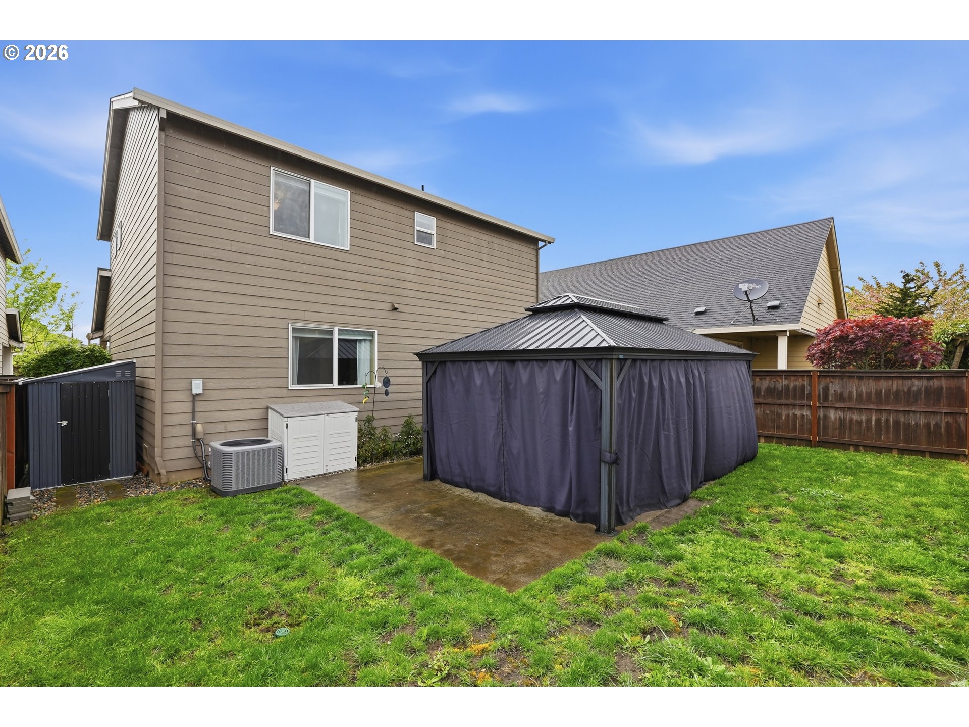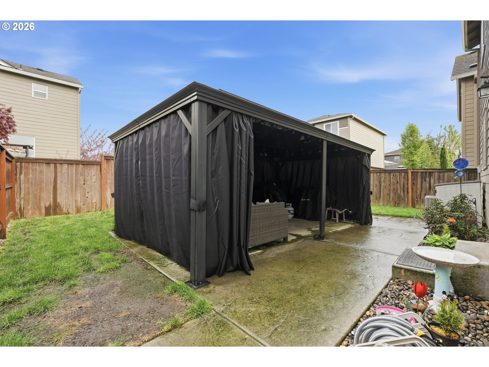 Welcome to this thoughtfully maintained 4-bedroom home featuring an open-concept layout, a level and fully fenced backyard, and a dedicated main-level office—all within a gated community directly across from a neighborhood park. This home checks the boxes for space, flexibility, and everyday livability. The main level is designed for easy living, with a natural flow between the kitchen, dining, and living areas. The kitchen offers newer stainless steel appliances, a pantry, and slider access to the backyard. The living room is enhanced by a beautiful barn door, creating separation between the entry and office space while adding character and functionality. Upstairs, you’ll find all four bedrooms, including a spacious primary suite with a private ensuite bath and walk-in closet. The laundry room is also conveniently located upstairs, right where you need it most. Step outside to enjoy a fully fenced, level backyard complete with a stamped concrete patio and walkway, along with a 12’ x 20’ gazebo—perfect for outdoor living, entertaining, or relaxing. Additional features include a 2-car garage and a prime location directly across from the neighborhood park with basketball court, play structure, and covered picnic area. Convenient access to WA-503, schools, and everyday amenities makes this a smart and practical place to call home. Come see it for yourself!
