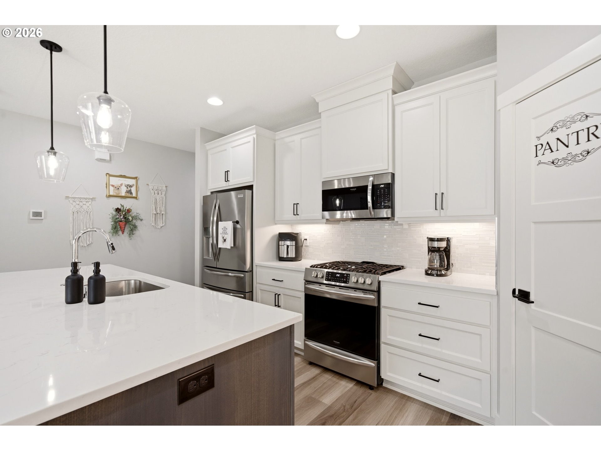 Dishwasher, Disposal, FreeStandingGasRange, FreeStandingRefrigerator, Microwave, Pantry, Quartz, SolidSurfa