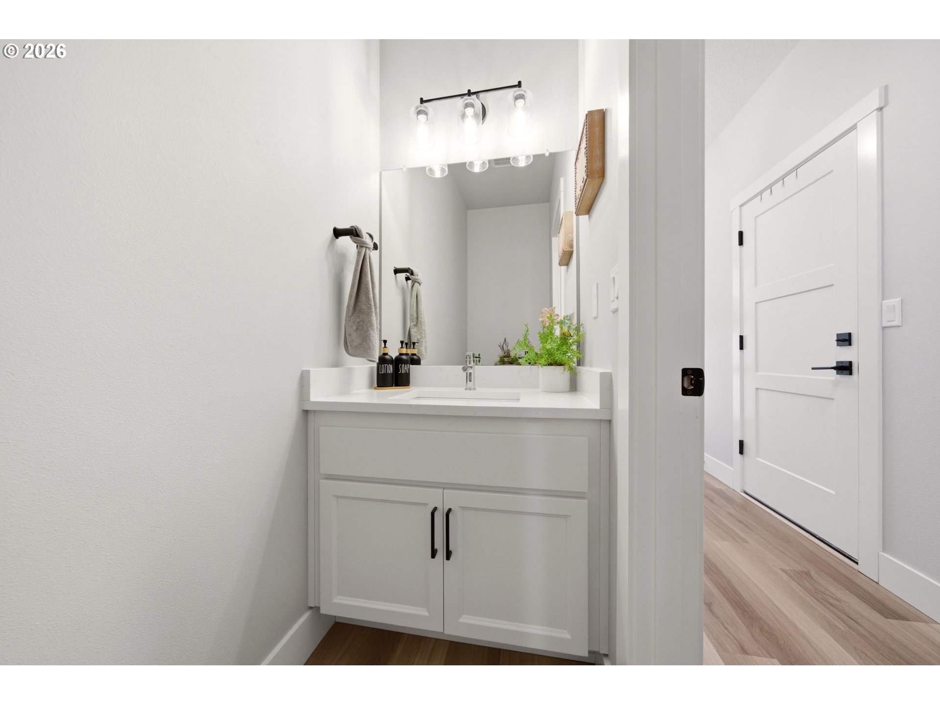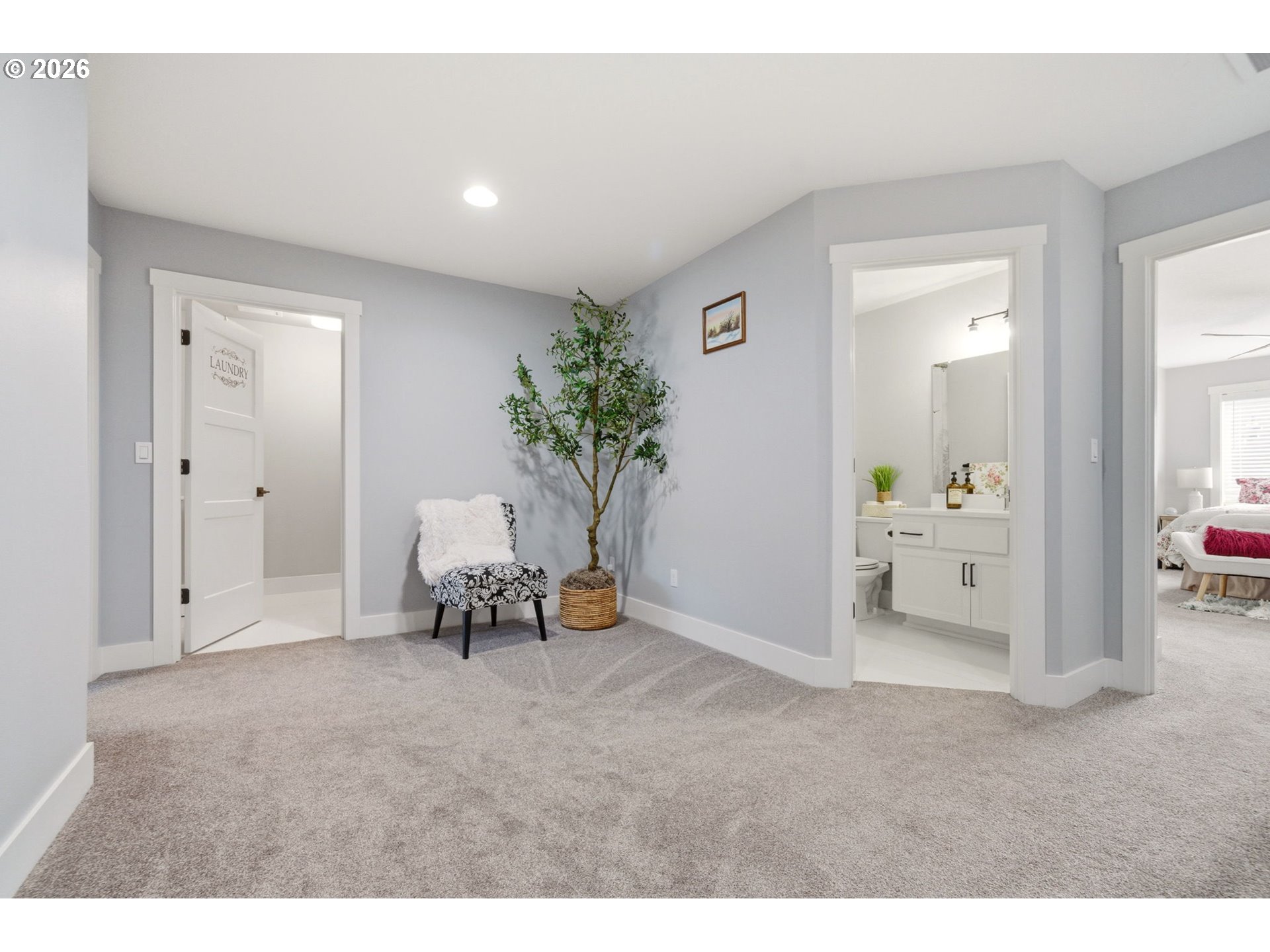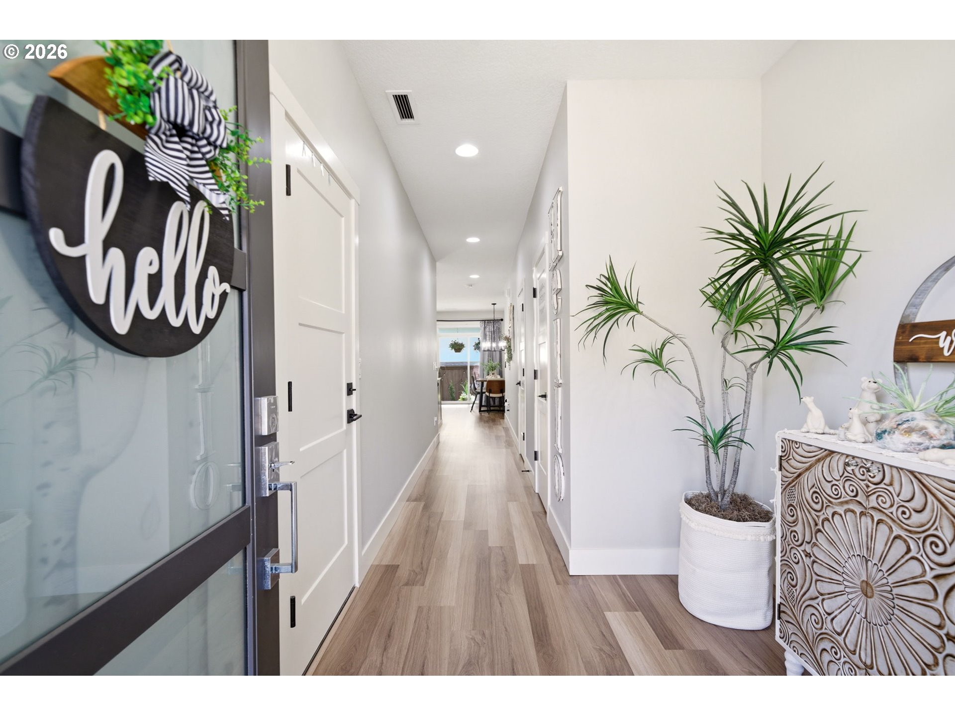 Welcome to this modern townhome that offers exquisite finishes and luxurious living throughout. The main level features a bright, open great room designed for both everyday living and effortless entertaining. This expansive space brings together the kitchen, dining, and living areas in one seamless, cohesive layout, offering an open yet comfortable flow throughout. The kitchen is beautifully appointed with an extra large eating island, gas cooktop, and stainless steel appliances. Quartz countertops add a refined, sophisticated surface, while soft white cabinetry delivers a clean, modern elegance that enhances the overall design. A sleek linear electric fireplace with a shiplap surround anchors the room, adding a warm and elegant focal point to the contemporary design. Upstairs, there are three spacious bedrooms. The primary suite is a true retreat, featuring a beautifully finished ensuite bath with dual sinks, quartz countertops, a spacious walk in shower, and an impressive walk in closet. The additional two bedrooms are generously sized. A conveniently located upper level laundry room with built in features adds ease to everyday living. The outdoor space is designed for low maintenance living, featuring durable turf, a covered patio for year round enjoyment, full fencing for privacy and HOA maintained front yard . Community amenities include walking paths, a play area, and open green spaces with benches and picnic tables, creating a welcoming and well maintained environment.