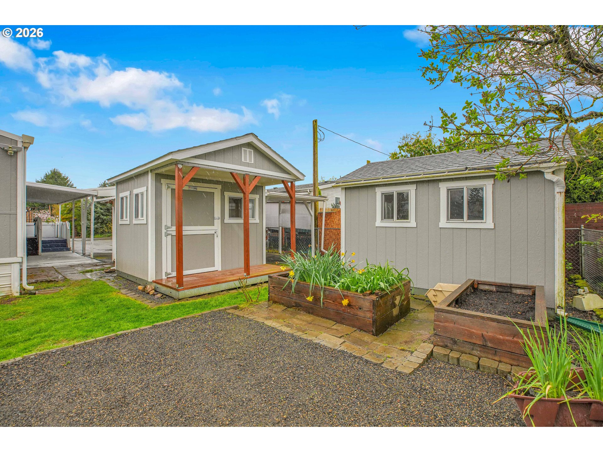 Thoughtfully updated in all the right places, this comfortable 1 bedroom + flex space home with generous outdoor area is ready for your ideas. With space rent at $586.85/mo this home is tucked into the peaceful Mobile Retreat 55+ community in North Salmon Creek. Showing off some nice updates it offers comfort, flexibility and exceptional value in a prime location. Originally a two-bedroom, the home was reconfigured in 2015 to create a primary bedroom and versatile flex space with closet, perfect for home office, craft area or hobbies. As a result of this remodel, the home received meaningful behind-the-walls updates including new insulation, sheetrock, electrical wiring and plumbing. Additional updates include flooring, an updated kitchen, fresh interior paint and vinyl windows creating a clean and move-in ready feel. The new step-in shower adds everyday convenience, and all appliances stay, including the washer and dryer, plus a TV stand and full size bed frame that pairs with the closet system for a cohesive look. Outside, enjoy a large yard with 20 raised garden beds, three newer storage sheds (9x6),(8x10) with covered porch, and (10x12), plus enjoy a covered porch (12x8) off the house and covered patio (11x8) for year-round enjoyment. Parking is a standout feature with a newly constructed oversized carport for up to three vehicles, plus driveway parking for two more. Located just minutes from I-5 and I-205 and close proximity to grocery stores, dining and medical services. With low monthly space rent of $586.85 (including sewer), this is an excellent opportunity for affordable living in North Salmon Creek. Buyer must be park approved. Bring your cat or small dog up to 25lbs. Seller to provide a 1-year home warranty (up to $600), with buyer's choice of preferred provider.