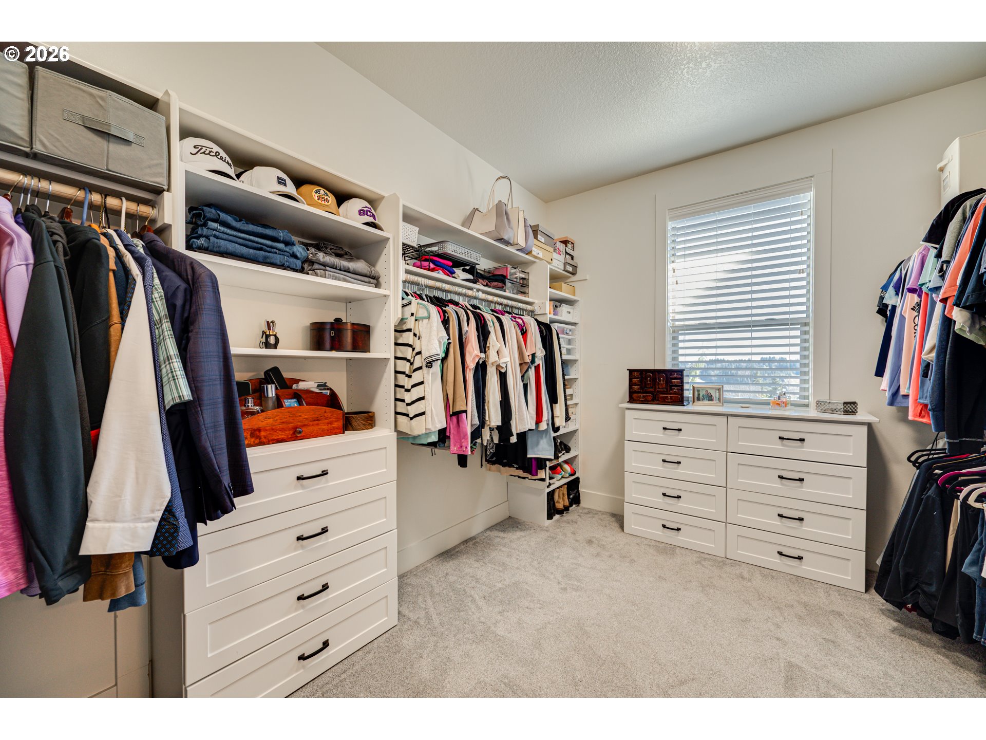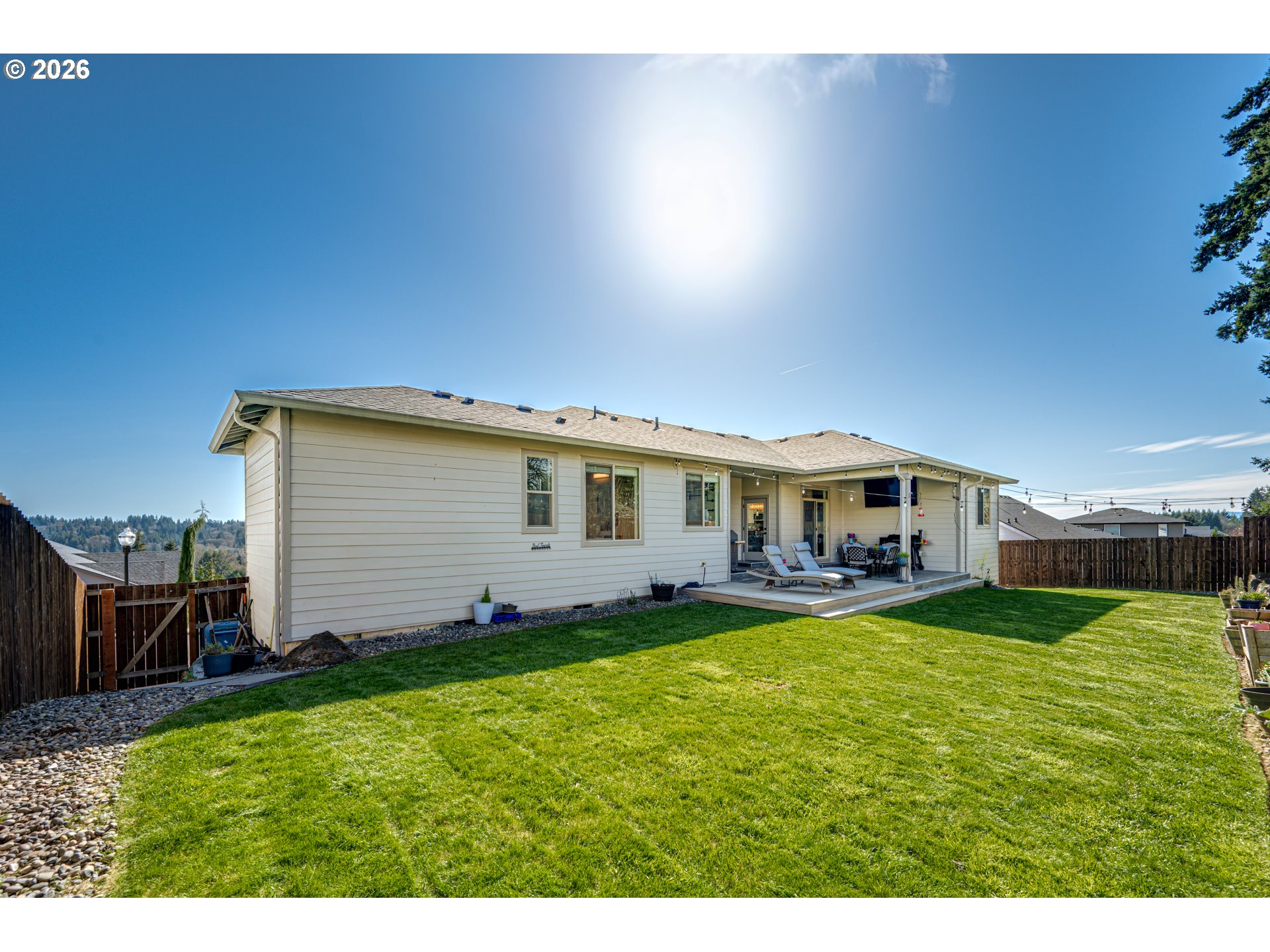 Welcome to this beautifully designed home that blends modern design, comfort, and functionality. From the moment you arrive, you’ll be drawn in by the clean architectural lines, expansive windows, and inviting curb appeal. Step inside to a light filled open-concept layout featuring soaring ceilings and oversized windows that capture serene neighborhood and territorial views. The spacious living area centers around a sleek contemporary fireplace, perfect for relaxing evenings and entertaining guests. At the center of the home, the kitchen features bright white cabinetry, quartz countertops, stainless steel appliances, a gas range, and a large island ideal for gathering. The primary suite includes a thoughtfully designed walk-in closet with custom built-in shelving, and a spa inspired bathroom designed for relaxation. This move-in ready home also includes recent upgrades such as brand new carpet throughout and a new water filtration system and softener for peace of mind. Step outside to your private backyard, complete with a covered patio, expanded deck space, ideal for year-round enjoyment. With four spacious bedrooms and three full baths, this home provides flexibility for guests, a home office, or multi-generational living. Generous storage space throughout the home ensures effortless organization. Located in a desirable neighborhood in the heart of La Center, you'll enjoy scenic surroundings, along with convenient access to schools, local shopping and everyday amenities.