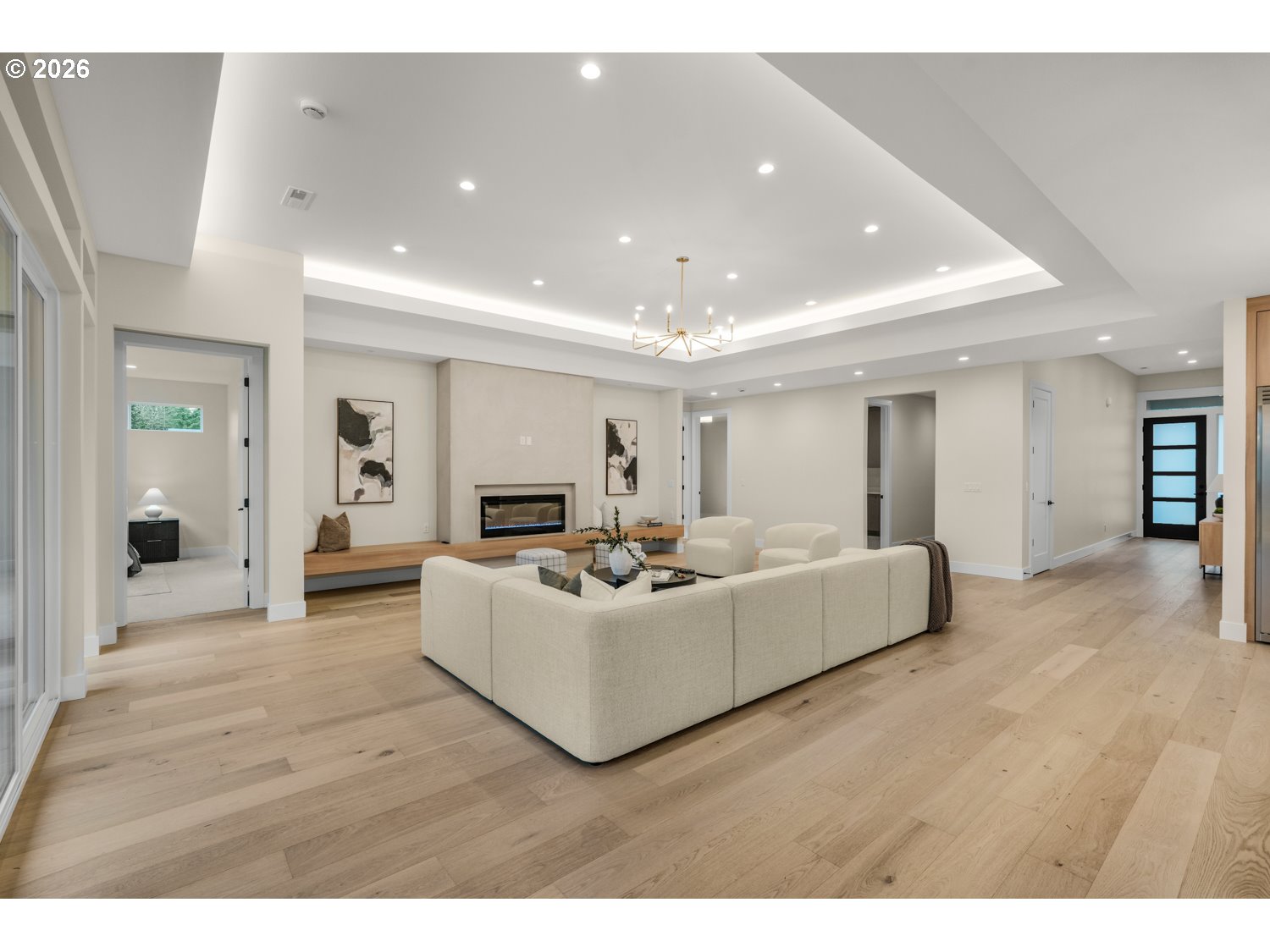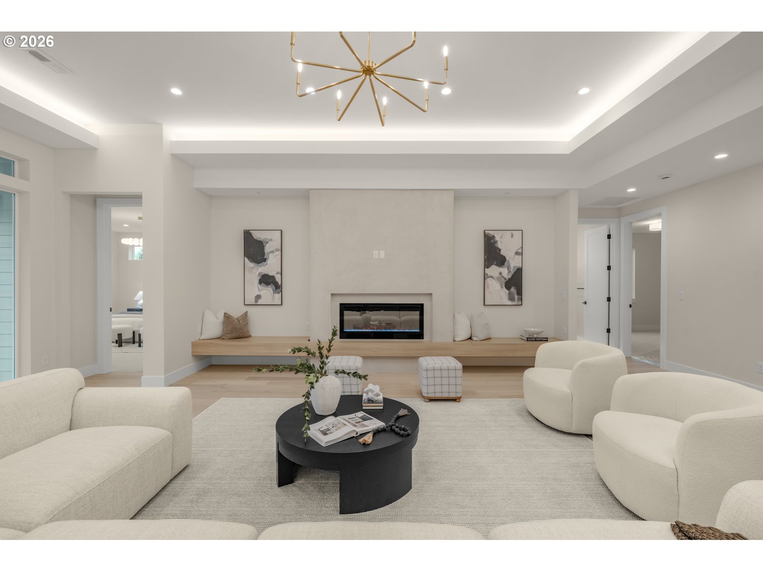 Located in the gated Royal Glen community in Salmon Creek, this brand-new custom-built ranch home offers luxury design, premium finishes, and an entertainer-friendly open layout. Featuring 4 bedrooms, 3 bathrooms, and a deep 3-car garage, the home is filled with natural light and thoughtfully designed for modern living, with tall ceilings in the entryway and living room that enhance the open feel. High-end finishes include engineered hardwood flooring, custom cabinetry throughout, designer fixtures, and ambient accent lighting in the kitchen and main living areas. The chef’s kitchen showcases Quartz Calacatta Fusion countertops, Energy Star appliances, an induction cooktop, built-in side-by-side refrigerator and freezer, InstaHot water filler, pot filler, large island with matching backsplash, soft-close cabinetry, and a fully equipped butler’s pantry. A separate mudroom adds everyday convenience.All bathrooms feature heated tile floors, curb-less showers, and are pre-wired for smart toilets/bidets. The primary suite also includes a spacious walk-in closet with custom built-in drawers, along with a soaking tub and dual vanities for a spa-inspired retreat.Upgraded insulation paired with an energy-efficient HVAC system creates a well-sealed home envelope, while a hot water circulation pump provides instant hot water throughout the home. Outside, enjoy a fully landscaped backyard with a covered patio and zoned sprinklers. The deep 3-car garage includes a pre-wired EV outlet. Once the community reaches approximately 75% completion, the HOA will provide front yard landscaping maintenance, including mowing, fertilizing, and weed control.Move-in ready with exceptional craftsmanship and thoughtful design, this home offers upscale living in one of Salmon Creek’s most desirable gated communities—just minutes from I-205, Salmon Creek hospitals, Costco, Chuck’s, and Klineline Pond. Builder incentive available.