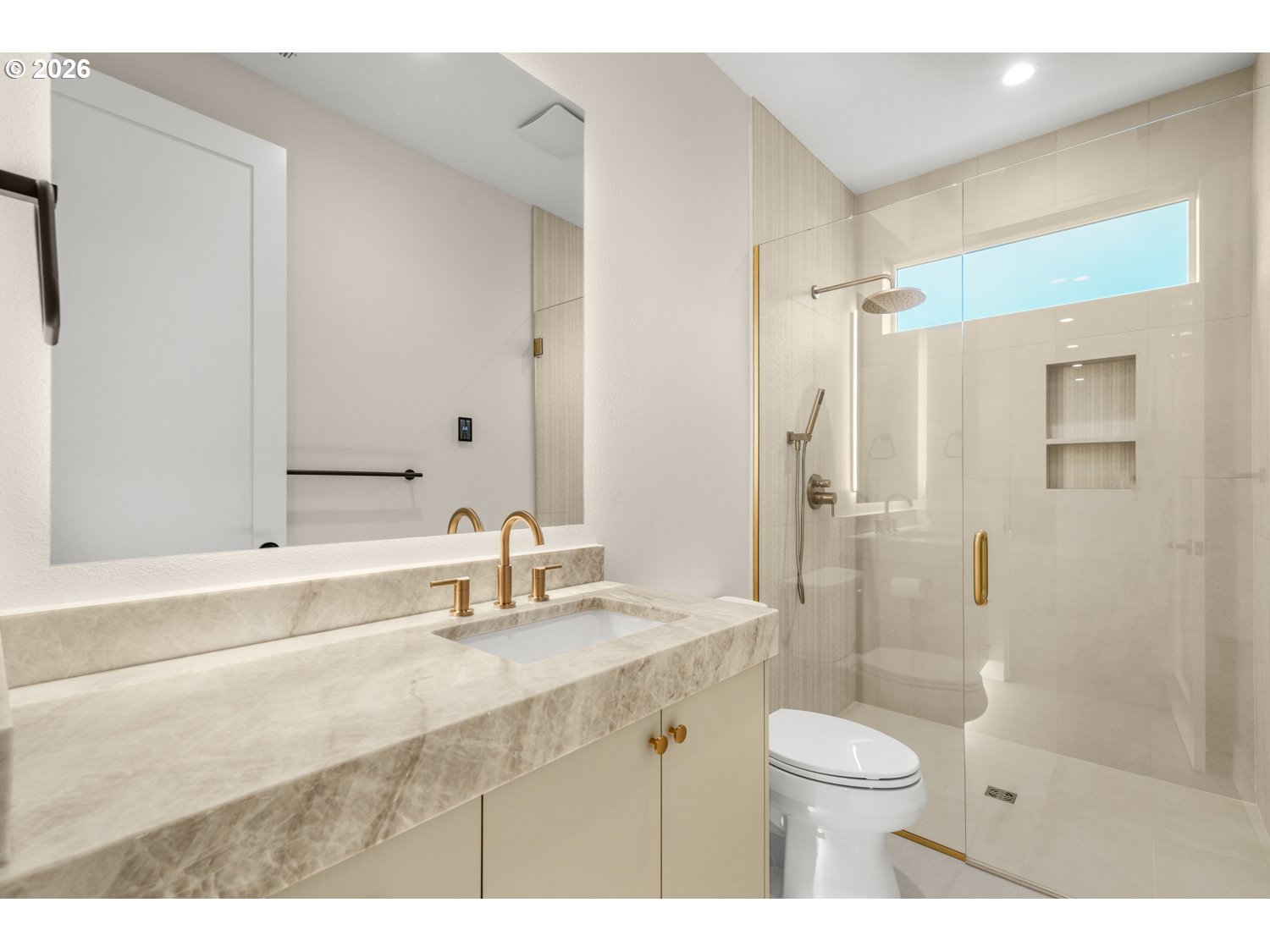 Located in the gated Royal Glen community in Salmon Creek, this brand new Move in Ready custom-built ranch home offers luxury design, premium finishes, and an entertainer-friendly open layout. Featuring 4 bedrooms, 3 bathrooms, and a deep 3-car garage, the home is filled with natural light and thoughtfully designed for modern living, with tall ceilings in the entryway and living room that enhance the open feel. High-end finishes include engineered hardwood flooring, custom cabinetry throughout, designer fixtures, and ambient accent lighting in the kitchen and main living areas. The chef’s kitchen showcases Quartz Calacatta Fusion countertops, Energy Star appliances, an induction cooktop, built-in side-by-side refrigerator and freezer, InstaHot water filler, pot filler, large island with matching backsplash, soft-close cabinetry, and a fully equipped butler’s pantry. A separate mudroom adds everyday convenience.All bathrooms feature heated tile floors, curb-less showers, and are pre-wired for smart toilets/bidets. The primary suite also includes a spacious walk-in closet with custom built-in drawers, along with a soaking tub and dual vanities for a spa-inspired retreat.Upgraded insulation paired with an energy-efficient HVAC system creates a well-sealed home envelope, while a hot water circulation pump provides instant hot water throughout the home. Outside, enjoy a fully landscaped backyard with a covered patio and zoned sprinklers. The deep 3-car garage includes a pre-wired EV outlet. Once the community reaches approximately 75% completion, the HOA will provide front yard landscaping maintenance, including mowing, fertilizing, and weed control.Move-in ready with exceptional craftsmanship and thoughtful design, this home offers upscale living in one of Salmon Creek’s most desirable gated communities—just minutes from I-205, Salmon Creek hospitals, Costco, Chuck’s, and Klineline Pond.