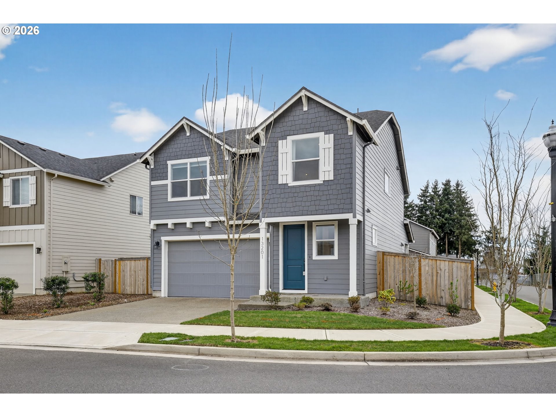 Located in the desirable Stone Throw neighborhood, this better-than-new corner lot home offers bright, spacious living with a modern open floor plan. The oversized great room features a cozy fireplace and abundant natural light, creating a welcoming space for everyday living and entertaining. This like-new home includes 4 bedrooms, 2.5 bathrooms, and a two-car garage. The gourmet kitchen is designed for both style and functionality, featuring a large island, walk-in pantry, quartz countertops, stainless steel appliances, and soft-close cabinetry. Luxury vinyl plank flooring runs throughout the home, adding durability and elegance. Upstairs, the primary suite boasts a vaulted ceiling, a spa-like bathroom with a separate tiled shower, dual sink vanity, and a large walk-in closet. Three additional generously sized bedrooms and a full bathroom provide flexible living space. Enjoy outdoor living with a covered patio, fully fenced backyard, and beautifully landscaped front and back yards featuring colorful flower beds. The home next to green space and a park, offering peaceful views and extra privacy. HOA maintains the front yard and common areas. This home combines convenience, comfort, tasteful design, and a prime location—a must-see!