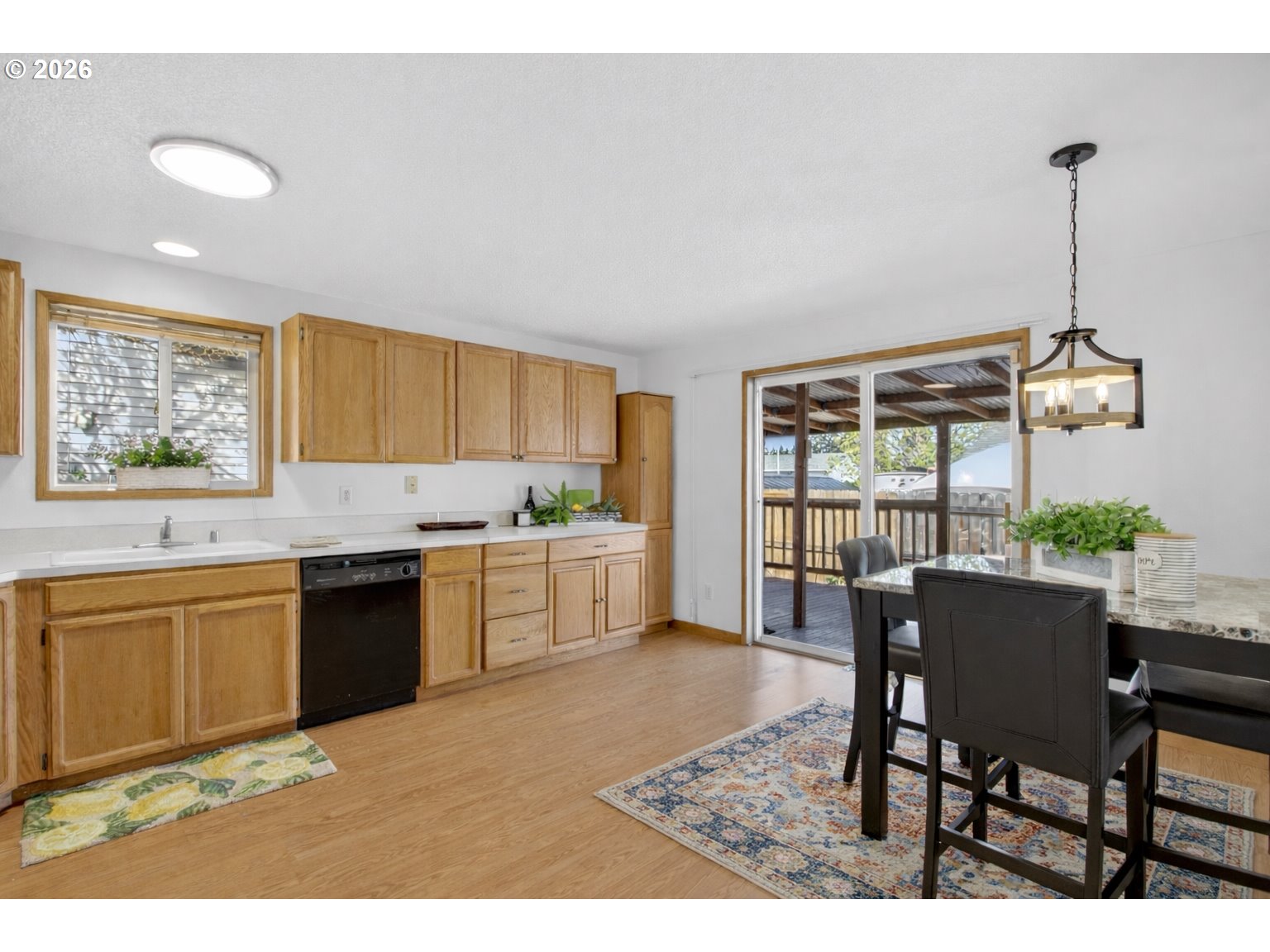 OPEN HOUSE: Saturday (4/11) at 1-3pm, Sunday (4/12) at 12-3pm.Charming single-level home offering 1,096 square feet of comfortable, easy living in a central location within the desirable Evergreen School District. This 3-bedroom, 2-bath home features a light and bright living room filled with natural light from large windows. The spacious kitchen includes a dedicated dining area and sliding glass doors that open directly to a covered back deckâperfect for indoor-outdoor living. Enjoy plenty of room for a table, chairs, and entertaining year-round.All bedrooms feature wall-to-wall carpet for added comfort, while the thoughtful layout makes everyday living simple and functional. Step outside to a nice, flat, fully fenced yard with established trees and flowers, offering both privacy and charm. A garden shed provides additional storage, and the 2-car garage adds convenience. A wonderful opportunity for easy one-level living with great outdoor space in a highly convenient location!