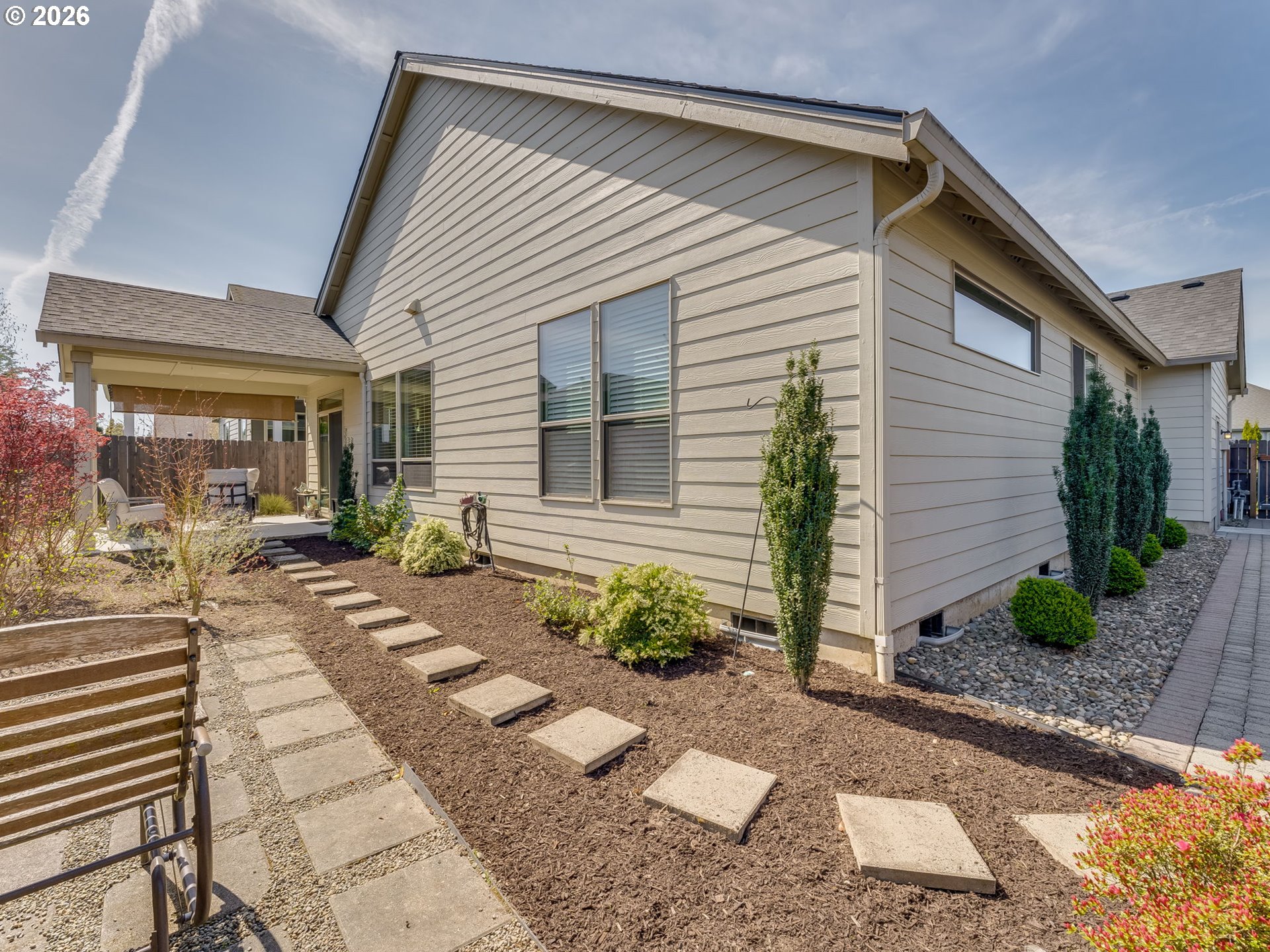 Welcome to a meticulously maintained, custom-built original owner home that perfectly blends luxury with low-maintenance living. Located in Philbrook Farms, this 4-bedroom ranch features a versatile upstairs fourth bedroom—ideal for a home office, gym, or guest suite. The heart of the home is a true chef’s kitchen, boasting slab granite countertops, a 5-burner gas range, and premium stainless steel appliances, including a built-in oven and microwave. Relax in the open living area by the gas fireplace, framed by elegant built-in shelving. When it’s time to unwind, the primary suite offers a private retreat with a massive soaking tub and a spacious walk-in closet. Step outside to your private, fully hardscaped backyard—a peaceful oasis where no lawn mower is needed! This home features an oversized 2.5 car garage which is fully finished. Located directly across from 1 of 4 neighborhood parks and just 10 minutes from Legacy Salmon Creek and major I-5/I-205 access, this home offers the perfect balance of quiet comfort and commuter convenience.