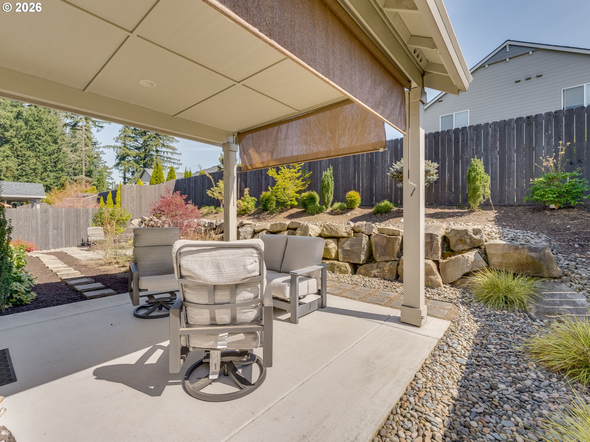 CoveredPatio, Fenced, Porch, Sprinkler, Yard