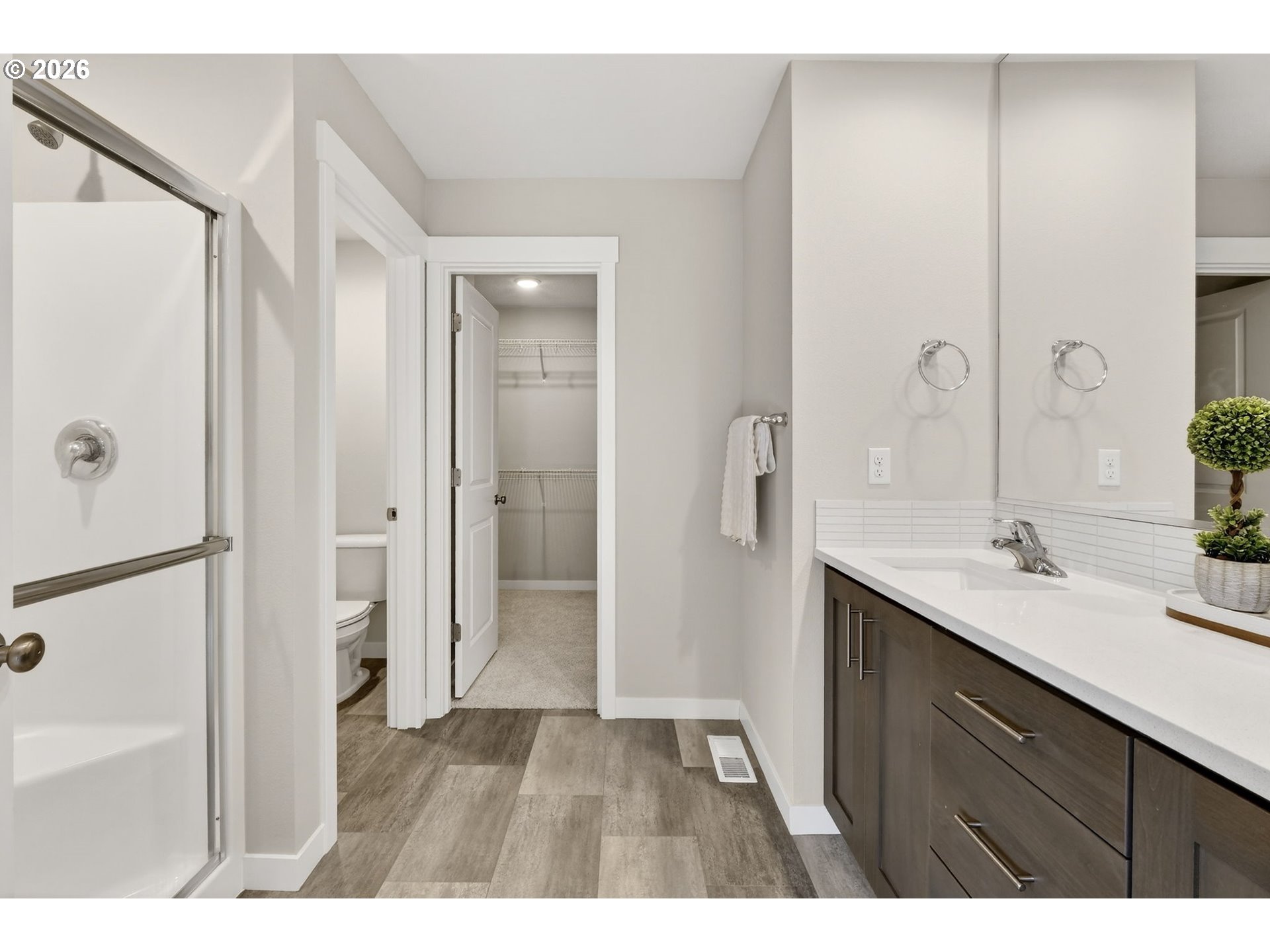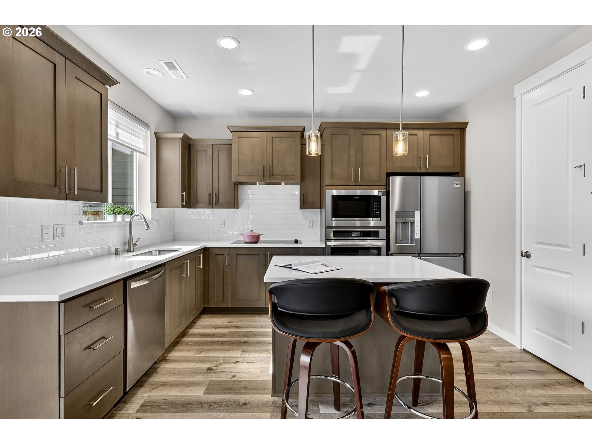 Welcome to beautiful Stone’s Throw in NE Vancouver This well-designed two-story home offers 3 bedrooms, 2.5 bathrooms, and 1,739 square feet of modern living space.Enter from the covered front porch into the main level featuring an open-concept layout. The bright vaulted ceiling great room flows seamlessly into the kitchen, creating an ideal space for everyday living and entertaining. The kitchen is equipped with quartz slab countertops, a full tile backsplash, electric glass cooktop, spacious island, and pantry. The dining area sits just off the kitchen, perfect for family meals and gatherings. The main floor also features 9-foot ceilings and 8-foot interior doors, adding to the home’s open and contemporary feel.Upstairs, the primary suite offers a private retreat with an ensuite bathroom and generous closet space. Two additional bedrooms and a full bathroom provide comfortable space for family, guests, or a home office. Step outside to the backyard with covered patio room to relax, garden, or create your own outdoor entertaining space. Conveniently located near hospitals, schools, shopping, and everyday amenities, with easy access to major commuting routes and the airport. This home offers both comfort and convenience in a desirable location. Don’t miss the opportunity to own this beautiful home!