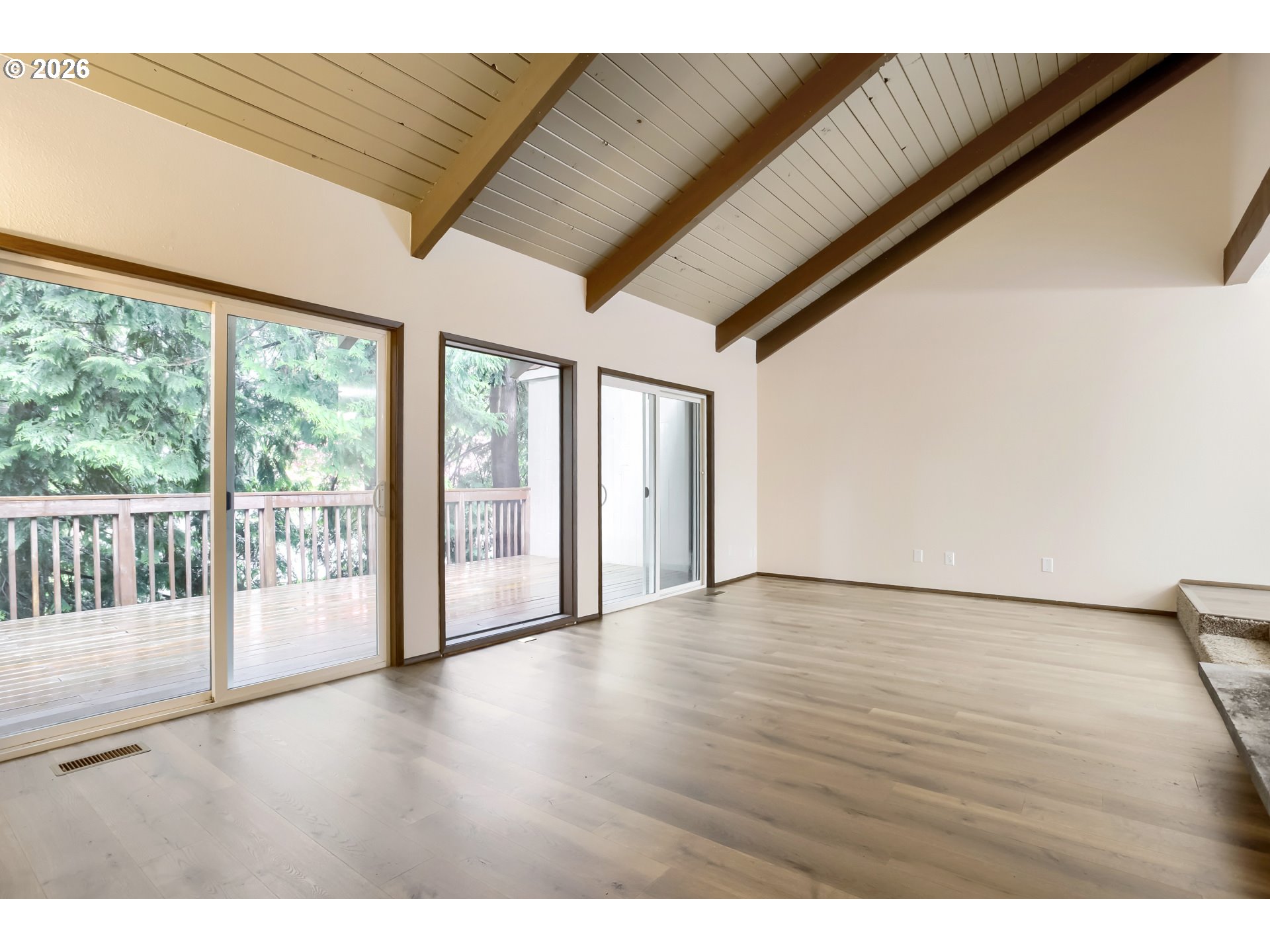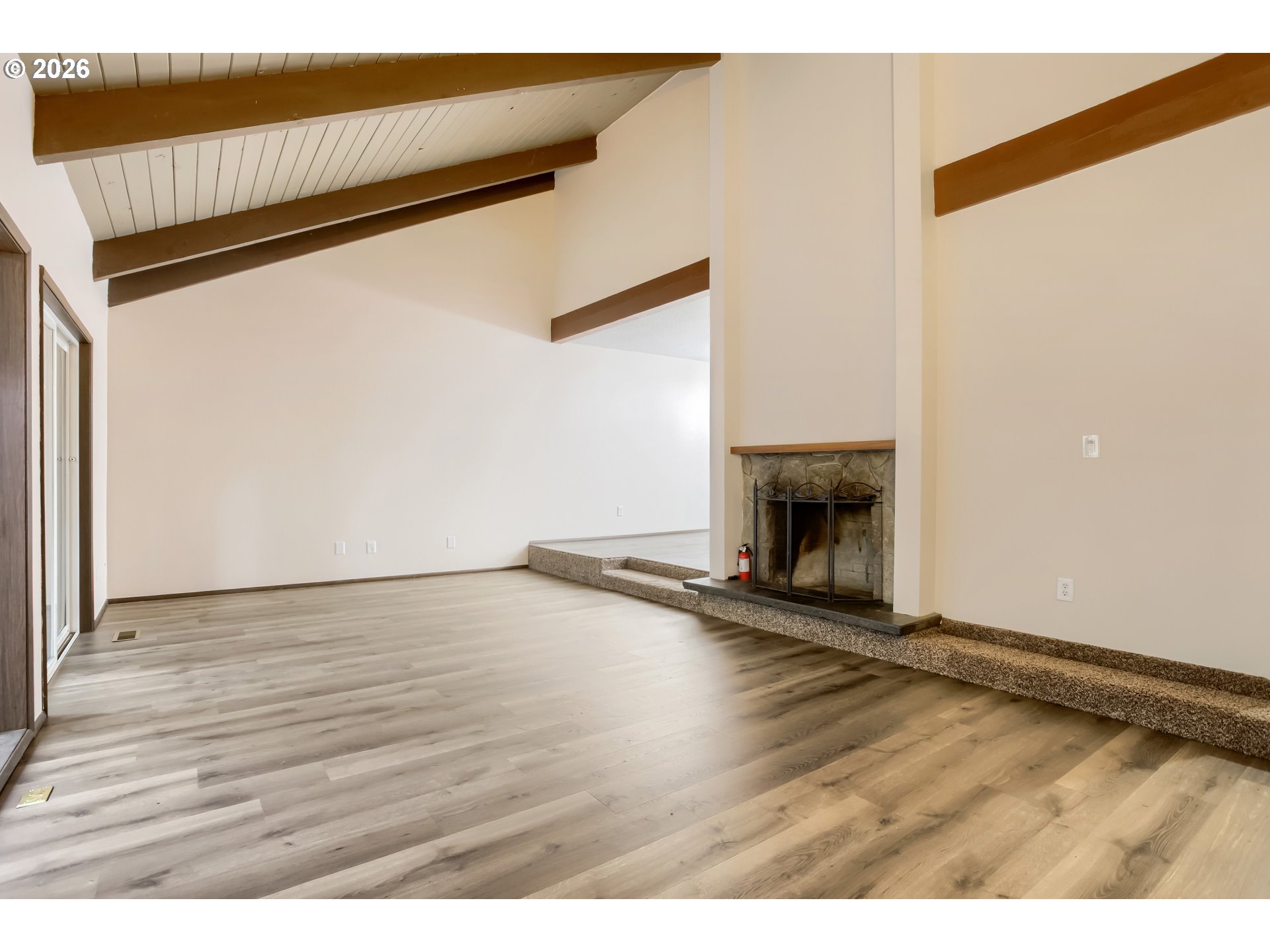 BeamedCeilings, Deck, Fireplace, SlidingDoors