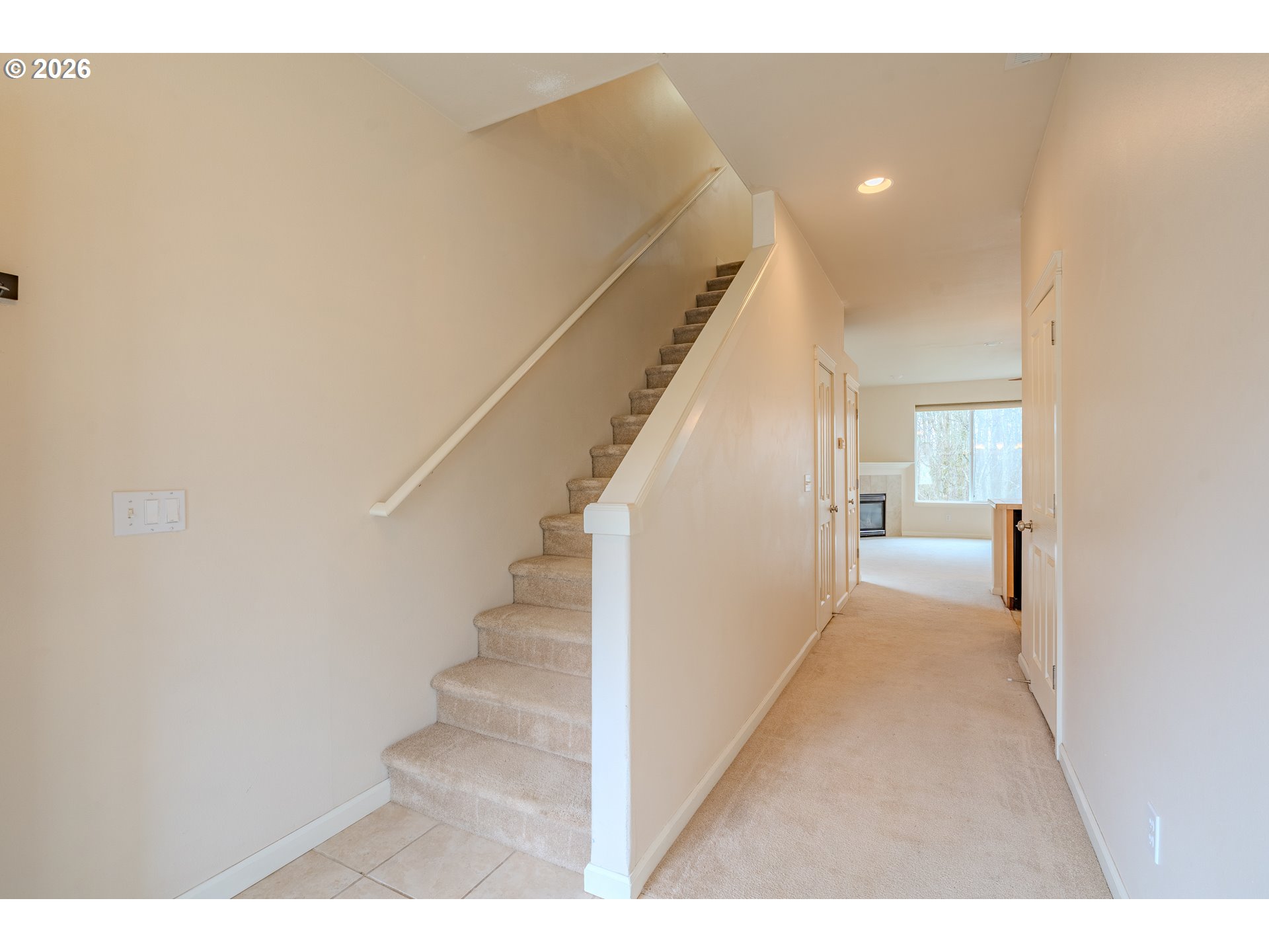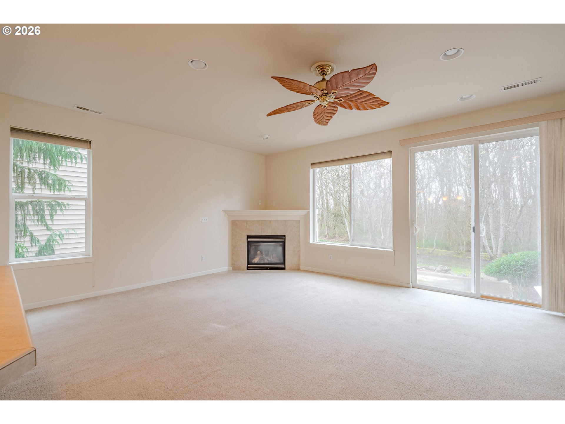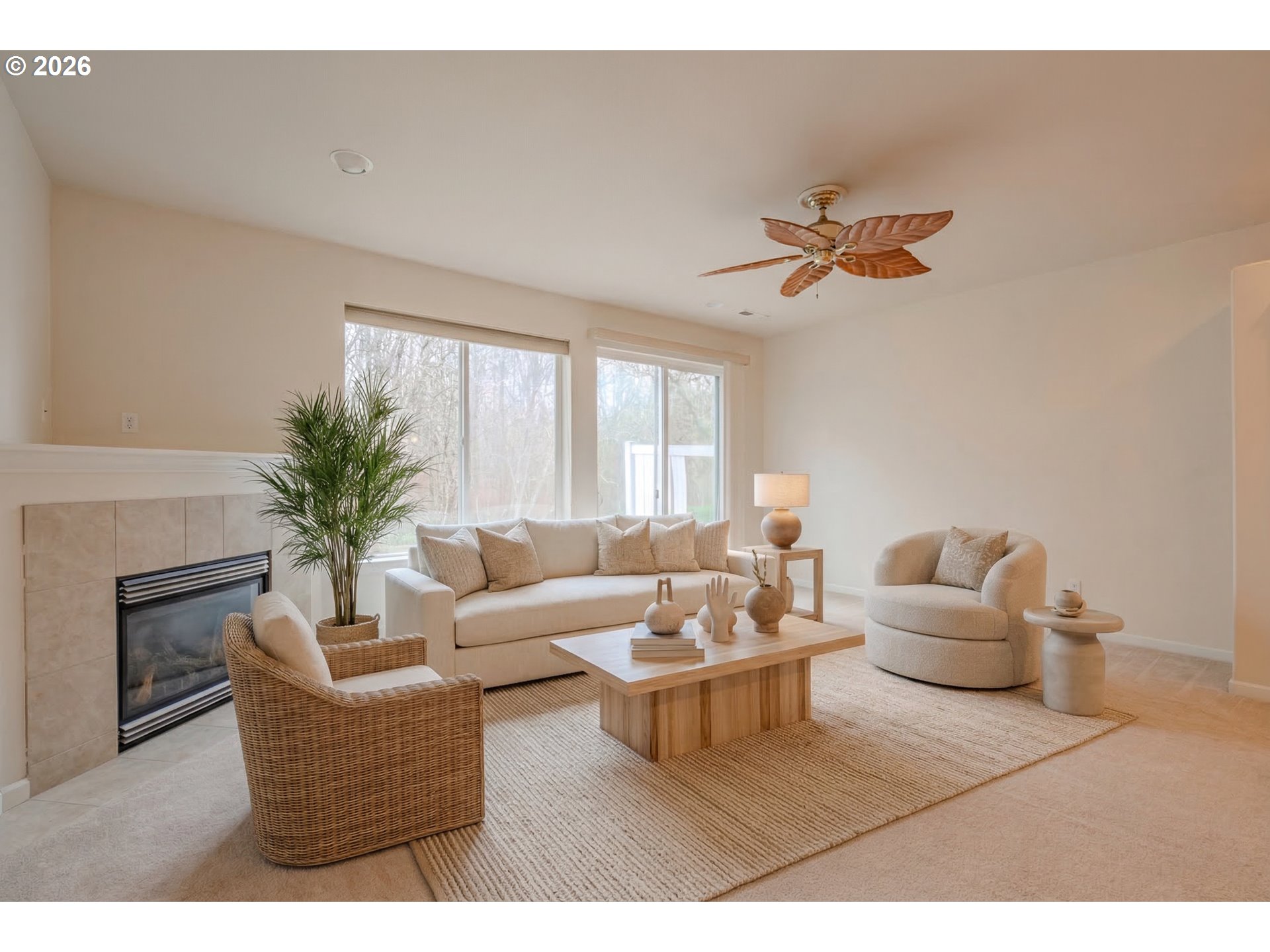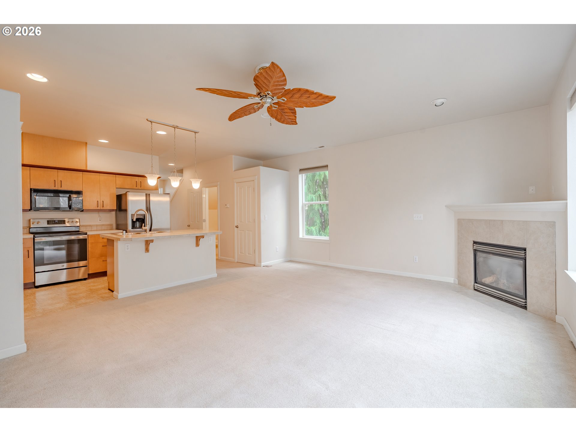 Located within a gated community, this spacious townhome offers a comfortable layout and low maintenance living. The main level features an open living and dining area filled with natural light, anchored by a cozy fireplace and peaceful views of the surrounding greenery. The kitchen connects seamlessly to the main living space and includes a center island, stainless steel appliances, and abundant cabinetry. Upstairs, two generous bedroom suites provide privacy and flexibility, each with its own bathroom and ample closet space. A conveniently placed laundry area sits between the suites, adding everyday practicality. The community is surrounded by mature trees and sits directly across from Legacy Salmon Creek Medical Center, with quick access to I-5 and I-205 for easy commuting, shopping, and dining. The kind of home where evenings feel calm, mornings start easy, and the next chapter begins the moment you walk through the door.