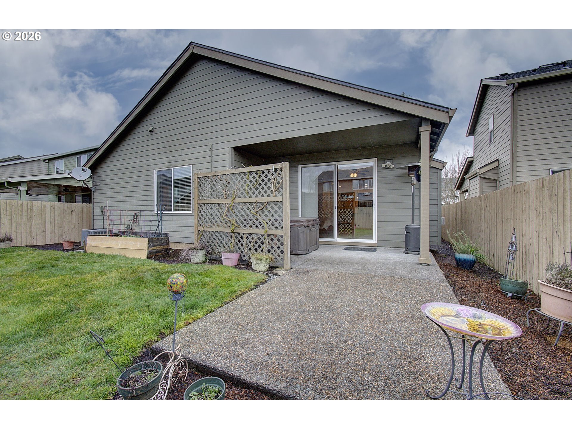 Open house SUNDAY 12-2pm. Single-Level Craftsman + Office | 1,664 Sq FtThis well-maintained 2015-built Craftsman home offers comfortable one-level living with 3 bedrooms plus a dedicated office across 1,664 square feet. The open-concept kitchen and dining area feature granite countertops, a large island, gas appliances, and generous pantry storage, creating a great space for both everyday living and entertaining.9-foot ceilings enhance the open feel throughout the home. All kitchen appliances, washer, and dryer are included, making this home truly move-in ready.Step outside to enjoy a fully fenced backyard with sprinklers, garden shed, and a private hot tub included. The HOA maintains the front lawn, simplifying exterior upkeep. Built with durable HardiPlank siding and priced below tax assessed value, this home offers strong value in today’s market.