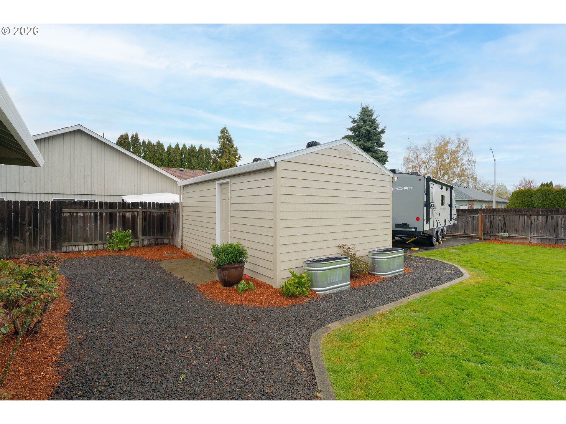 Coveted one-level living in the highly sought-after Ridge Creek neighborhood - just steps from Chinook, Alki, and Skyview schools, and minutes to HB Fuller Park and Skyview Station. Set on an expansive .26-acre lot, this property offers the best of both worlds - beautifully appointed interior spaces paired with an incredible backyard designed for real life and unforgettable moments. Outside, enjoy a covered patio for year-round gatherings, a Tuff Shed for extra storage, dedicated paved RV parking with full hook-up and rear yard access, and plenty of room to run and play. The 20x12 shop with power, water, and a half bath is the ultimate flex space - perfect for a creative studio, home gym, office, or weekend projects. Inside, 2,111 sq ft of thoughtfully designed living space offers both comfort and style with 3 bedrooms and 2 baths, including a spacious owner’s suite with double-door entry, a large walk-in closet, and an ensuite bath with dual sinks, jetted tub, and separate walk-in shower. A vaulted formal living room makes a strong first impression, while the formal dining room is ideal for hosting. Gorgeous hardwood floors flow through the main living areas, including the kitchen and nook. The updated kitchen features quartz countertops, an island with breakfast bar, stainless appliances, and under-cabinet lighting. The inviting family room centers around a wood stove with a dramatic floor-to-ceiling brick surround, bringing warmth and character to the heart of the home. Major updates include exterior paint (2025), gutters (2023), windows (2021), carpet (2018), furnace (approx. 2018), water heater (2017), and a newer dishwasher. All appliances are included. With easy access to I-205 and nearby dining, shopping, and medical, everyday essentials are close at hand. Homes with this kind of outdoor space don’t come around often - this is where memories are made. Open House: Fri. April 3, 4–6pm & Sat. April 4, 10am–12pm.