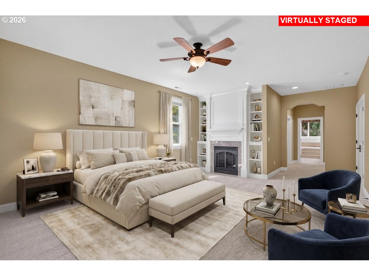 Stately built custom home in Premier Ashley Heights neighborhood. One of Clark County's most recognized addresses and a former Parade of Homes community — this traditional home delivers the space, craftsmanship, and livability today's buyers are looking for. Set among 274 custom-built homes with approximately 20 acres of private parks, scenic trails, the neighborhood "Gazebo" park, and natural forest bordering Salmon Creek to the north. Inside, the home showcases custom millwork, arched doorways, transom windows, and hardwood floors. The two-story family room opens through French doors to a beautifully finished stone patio and manicured backyard featuring mature azaleas, flowering trees, and established shrubs. The custom kitchen includes a large island, built-in bench seating, and extensive cabinetry. Extensive built-ins and a large dedicated office space add practical flexibility — well-suited for a home-based business or library. Upstairs, four generously sized bedrooms include three rooms measuring approximately 20×25, each with window seats and large closets. The primary suite features a fireplace, window seat, soaking tub, and dual sinks. New carpet throughout. This is a move-in ready home with enduring character in one of the area's most sought-after neighborhoods.