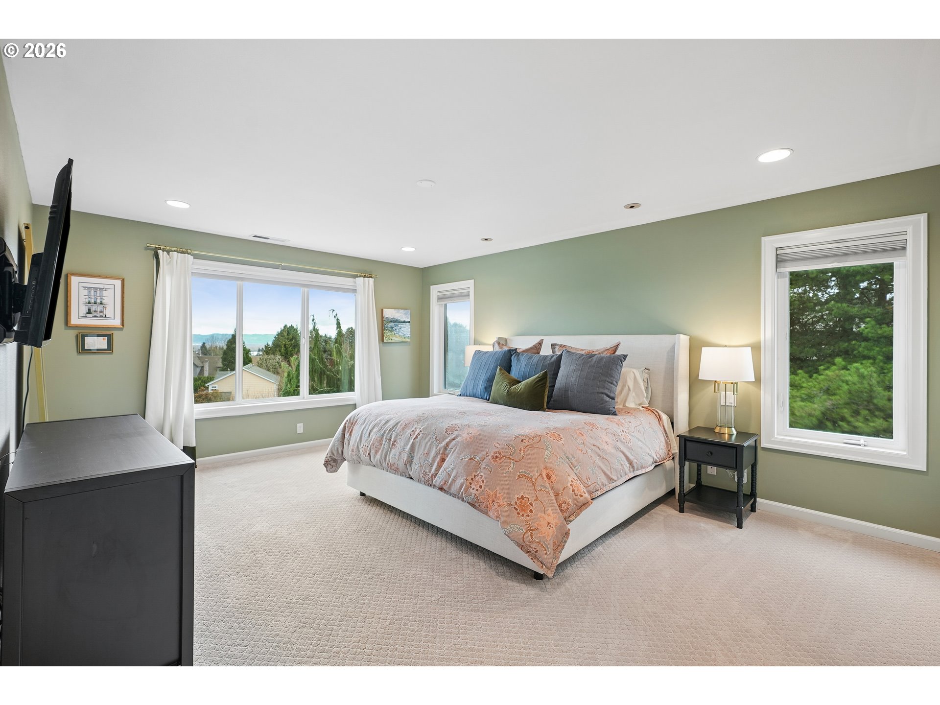Nestled in the desirable Lake Shore neighborhood on the lovely Gregory Drive, this beautiful custom home is perched on over a third of an acre and offers impressive southwestern views. The open floor plan feels both grand and functional with soaring ceilings and expansive windows that fill the home with natural light. The heart of the home is a gourmet kitchen with a central island, high end appliances, spacious pantry and a connected cozy family room with an informal dining nook. The kitchen overlooks the beautiful great room where a floor-to-ceiling stone gas fireplace serves as a dramatic focal point. The seamless flow between the formal dining area and the spacious front deck makes for an entertainer's dream. The perfect setting for watching the sunset in the evenings. The private, upper-level primary suite sanctuary features vaulted ceilings, a large closet and a spa-like ensuite bathroom. The home offers a total of four bedrooms (plus an office), and three bathrooms, providing ample space for both family and guests. A lower-level flex space gives additional versatility with the potential for a bonus playroom or home gym. Modern conveniences and thoughtful updates throughout include a recently updated HVAC system, newer exterior paint, and luxurious wool-blend carpet. A rare find with such an elevated view property, the flat and highly private backyard offers something for everyone with a large patio fit for hosting a crowd, grass for play and terraced raised beds to create your own garden haven. This home is a great opportunity to live in one of Vancouver's most sought-after neighborhoods with big views, great schools and convenient freeway access.