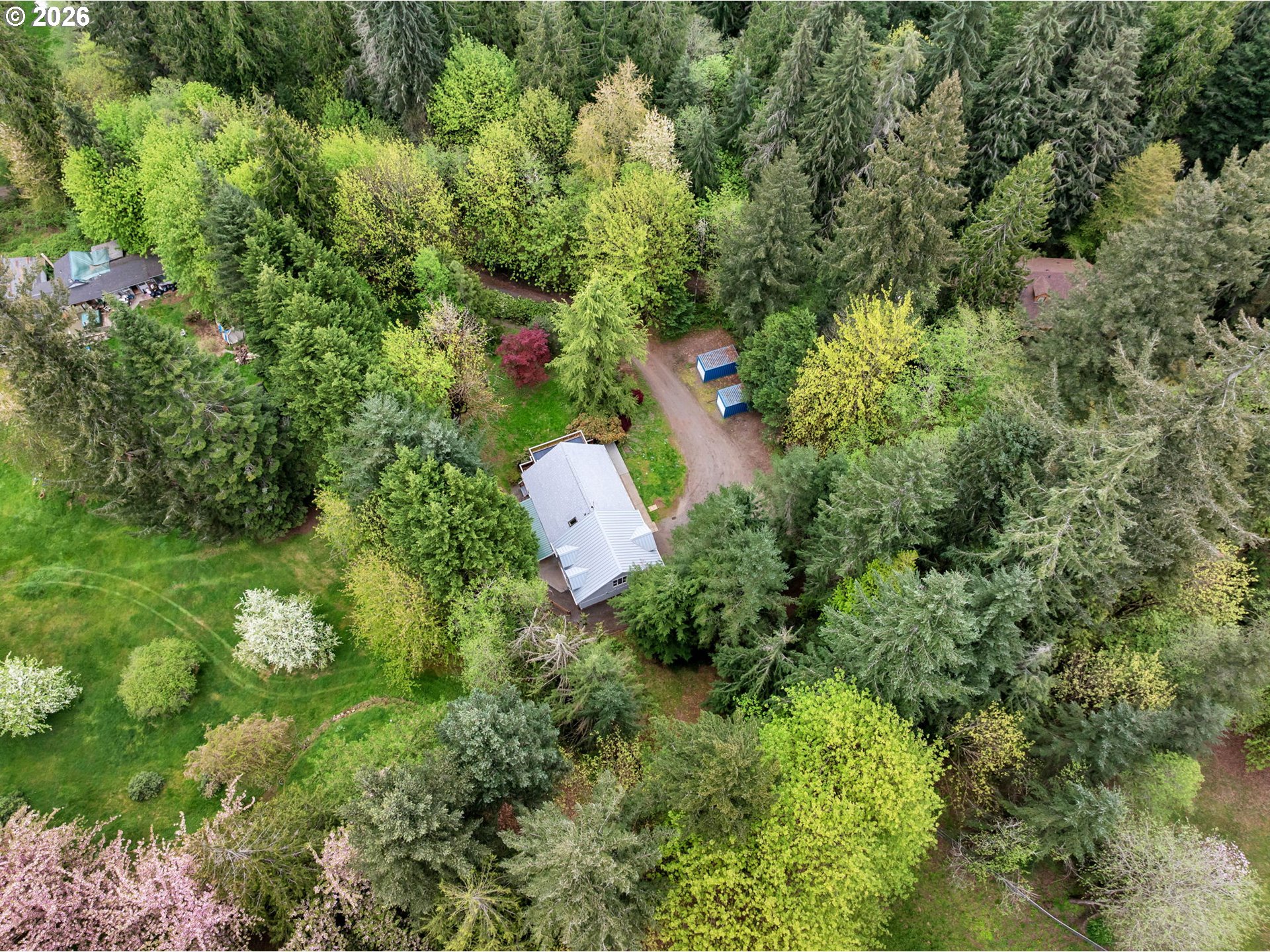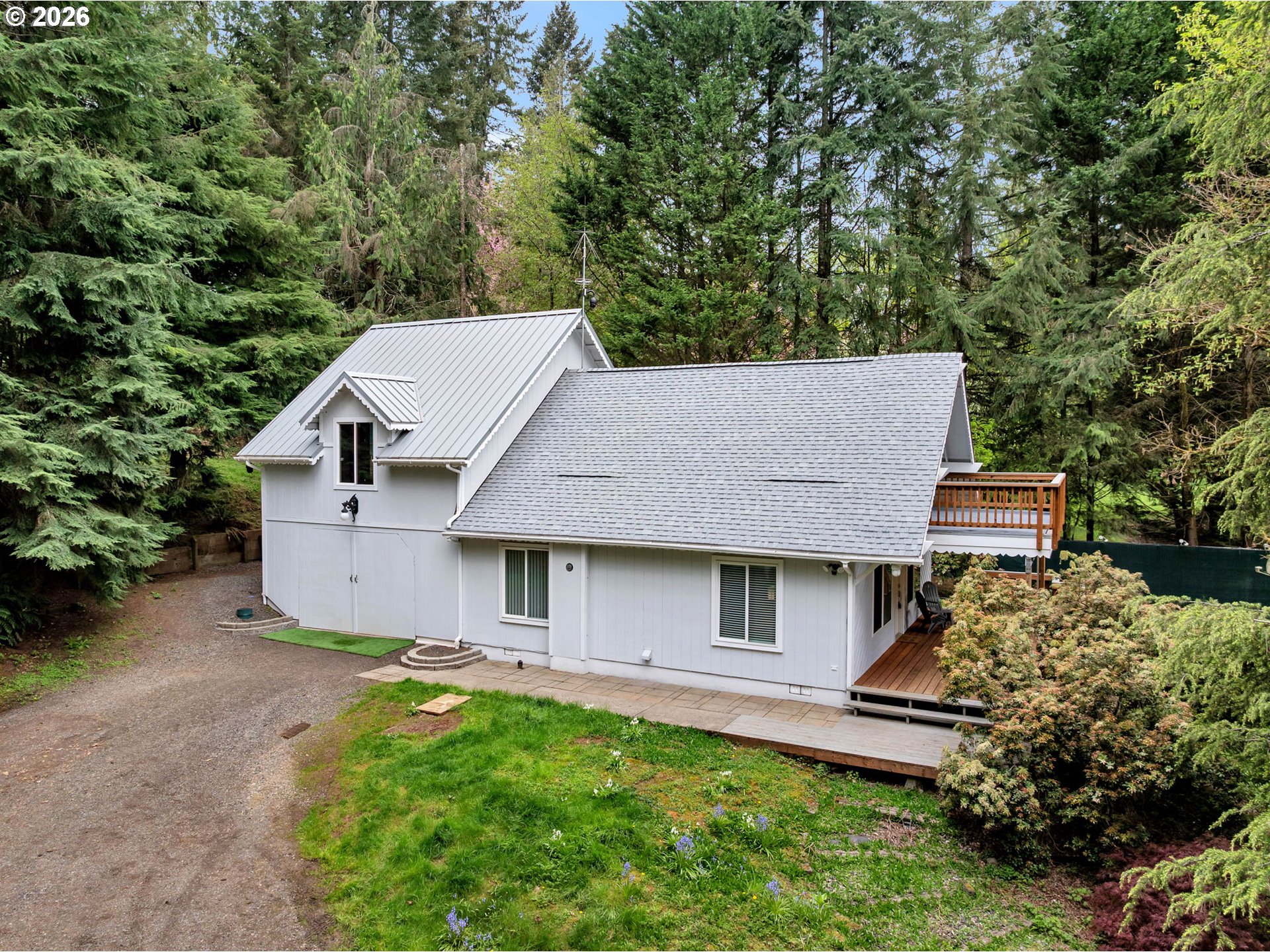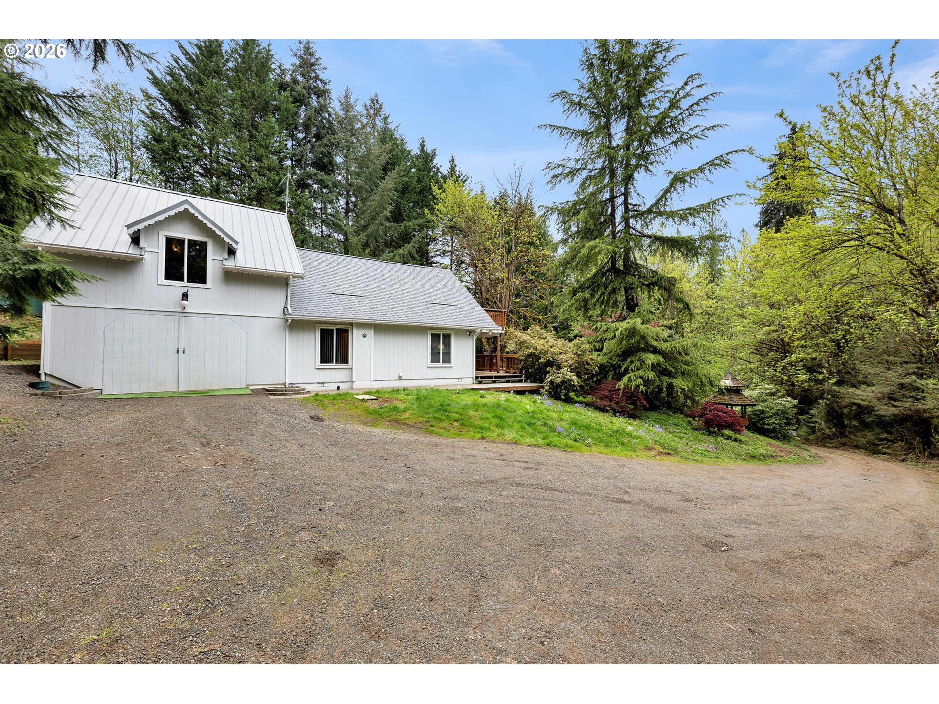 Secluded property walking distance from Hockinson town and schools. Situated on 1.85 acres up a private gated drive, this house is perfect if you're looking for privacy. Vaulted primary bedroom with huge deck overlooking serene property. Recent updates include new roof, water heater and washer and dryer. Extras include custom generator shed built to store 12kw generator that stays with the home, tractor with it's own storage, two connex containers, one equipped with power, and a newly built room over the garage permitted and ready to be finished as an adu or endless possibillities!