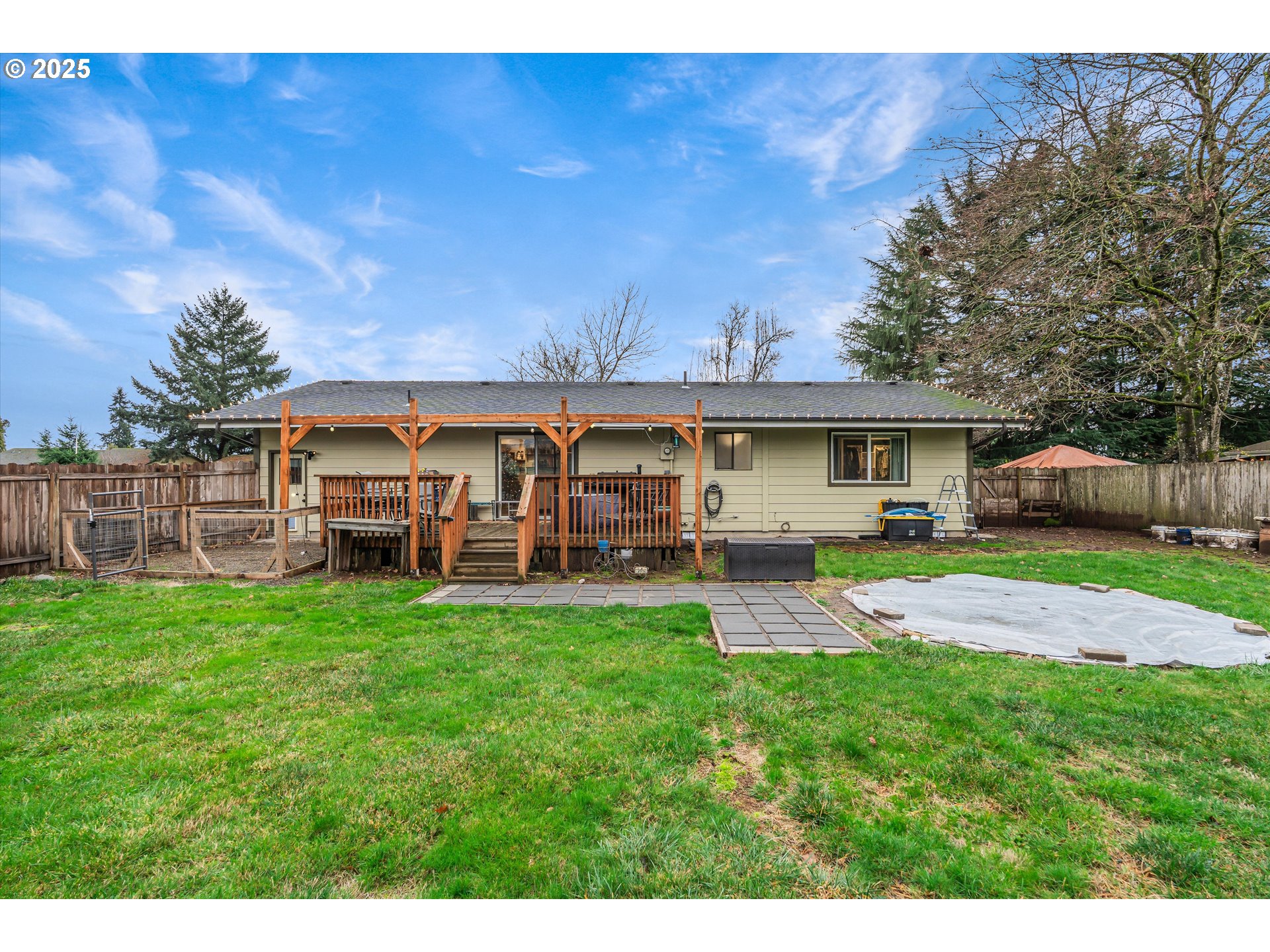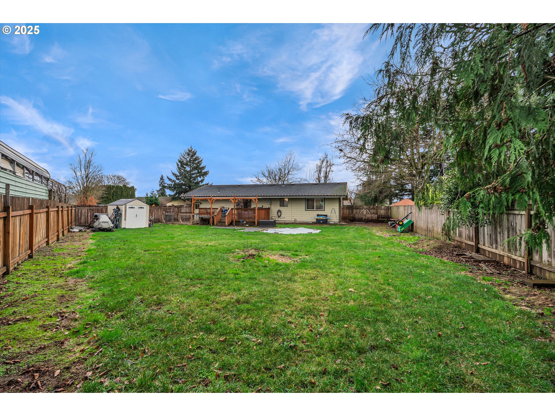 Comfort, function, and recent updates come together in this 3-bedroom, 2-bath home on a spacious corner lot. New flooring throughout, fresh interior paint, updated baseboards and trim, and new recessed can lighting create a clean, cohesive feel. The kitchen opens to the backyard and deck, making everyday living and entertaining easy. The hall bathroom has been updated, and digital thermostat controllers add improved energy efficiency. The home is wired for a home theater system, and the garage features tote organization, additional electrical, and a new garage door opener. A fully fenced backyard provides room to enjoy, with potential RV parking along the side of the home.