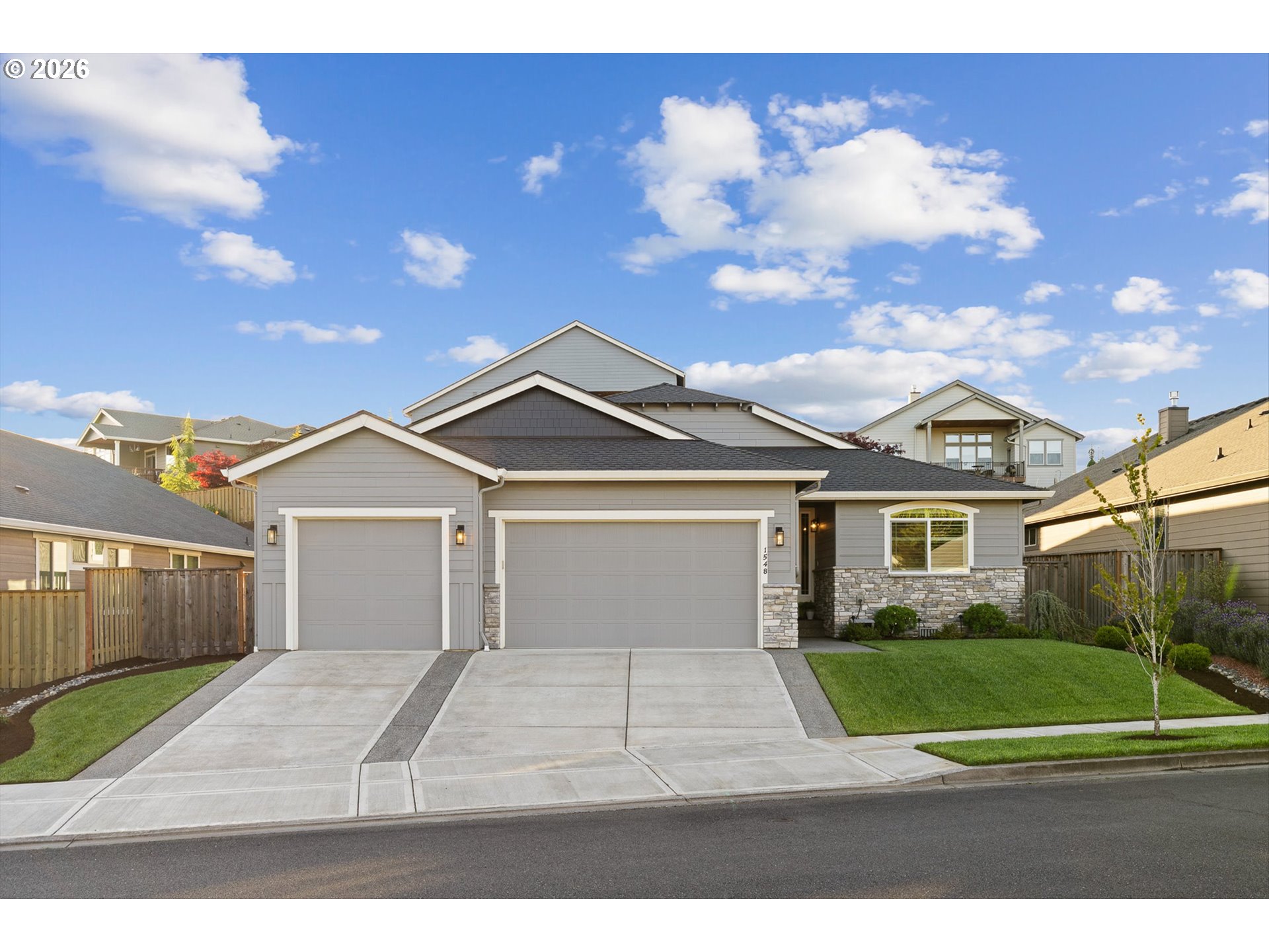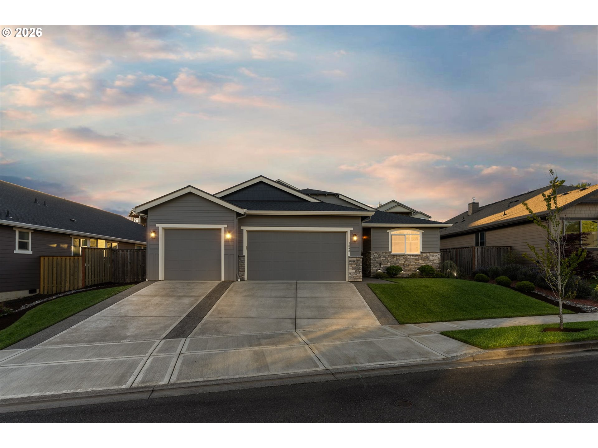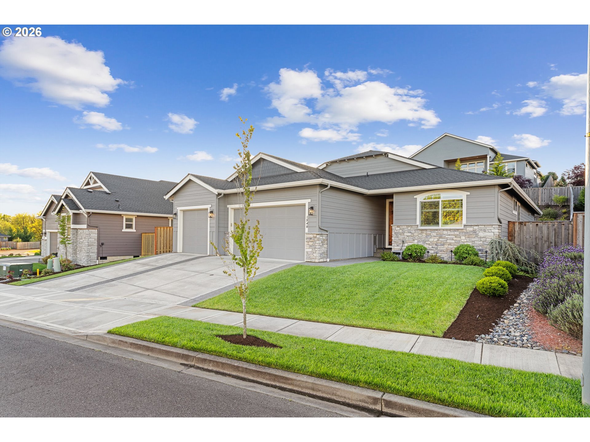 Tucked at the end of a quiet cul-de-sac in Taverner Ridge, this Energy Star certified single-level ranch delivers effortless, elevated living — built in 2021 by Summerplace Homes and barely lived in, with less than a year of total occupancy. It presents like new construction without the wait.The open 2,600 SF floor plan features 4 bedrooms, 3.5 baths, vaulted and high ceilings, engineered hardwood floors, and a great room with gas fireplace and built-ins. The gourmet kitchen offers quartz countertops, double ovens, gas cooktop with range hood, stainless appliances, pantry, and a large island. The primary suite includes a coved ceiling, walk-in shower, double sinks, and walk-in closet. A whole-home Springwell water filtration system, tankless water heater, and 95%+ efficiency furnace reflect quality throughout. The fully fenced, landscaped yard features a covered patio, sprinklers, and an extensive drainage system for year-round usability. True 3-car side-by-side garage. All wall-mounted TVs and great room soundbar convey. Ridgefield Schools. Parks, walking trails, and the Ridgefield National Wildlife Refuge are minutes away — where seasonal bird migrations are a genuine neighborhood backdrop. And when you're ready for more, Ridgefield's rapid growth has brought Costco, In-N-Out Burger, and a wave of new shopping and dining options, plus nearby Ilani Casino & Hotel. This one is move-in ready — because someone made sure it would be.