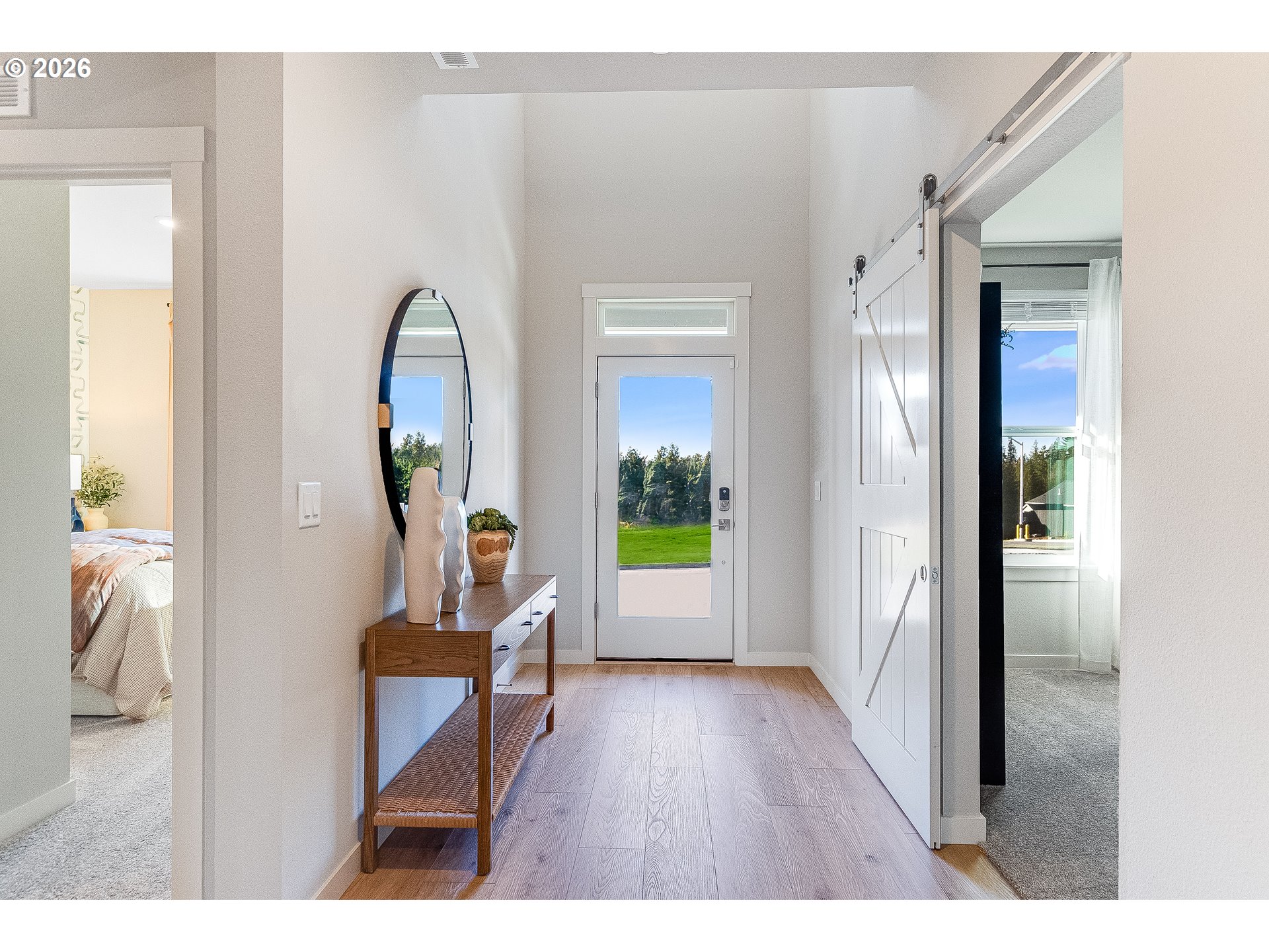 Discover elevated living in Salmon Creek Ridge by Lennar, nestled in the heart of Salmon Creek in Vancouver. Just minutes from the scenic trails at Washington State University Vancouver, with convenient access to shopping, dining, and I-5, this beautifully designed two-story home offers comfort, flexibility, and everyday ease. A welcoming foyer opens to a versatile den and main-level bedroom—ideal for a home office, guest space, or creative retreat. The open-concept layout unfolds into a bright kitchen, dining area, and great room centered around a cozy fireplace. Sliding doors lead to the outdoor patio and backyard, creating a seamless indoor-outdoor flow perfect for gatherings or quiet evenings at home. The kitchen shines with quartz countertops, a vertical tile backsplash, and a 5-burner gas cooktop that enhances both everyday meals and special occasions. Warm wood shelving and durable luxury vinyl plank flooring in the entry and kitchen add style and functionality, while luxury vinyl tile finishes the baths and laundry. Upstairs, a spacious loft offers flexible living space alongside three additional bedrooms, including a serene primary suite featuring a spa-inspired bath with soaking tub, separate tiled shower, and walk-in closet. Landscaping, fencing, central air conditioning, refrigerator, washer and dryer, and blinds are all included—reflecting Lennar’s thoughtful “Everything’s Included®” approach for a smooth move. Move in ready! Photos are of similar or model home, but interior flooring, finishes, hardware & cabinets are the same. Directions are to the Welcome Home Center. Flex credit/closing cost incentive available when financing with preferred lender! Use towards rate buydown and closing costs.