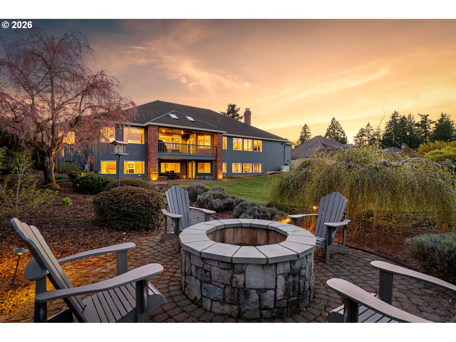 Perched within a prestigious junior-acre neighborhood, this executive-style home offers exceptional living and entertaining spaces paired with sweeping panoramic views. Surrounded by lush green space, rolling hills, winding walking paths, and a community tennis court, the setting is both serene and refined. At the heart of the home, the gourmet kitchen creates a seamless and inviting gathering space designed for both everyday living and elevated entertaining. The kitchen showcases quartz countertops, custom cabinetry, expansive prep and serving areas, and a generous island that naturally brings people together. Walls of windows capture breathtaking views and fill the home with natural light, offering a warm yet sophisticated ambiance ideal for both relaxed evenings and lively gatherings. The main level features solid hardwood floors, a private office with custom built-ins and French doors, and a luxurious primary suite with direct access to a covered deck. The primary suite includes an expansive dressing room, complete with a private washer/dryer hookup, adding everyday convenience to elevated living. The current media room is thoughtfully designed and can easily serve as a second primary suite. The lower level offers versatile living with a full kitchen, family room, bedroom with bay windows, full bath, laundry, and a wine room with dedicated storage—creating a private and comfortable retreat for guests. Additional highlights include three laundry connections throughout the home for ultimate convenience and a new whole-home Generac generator, providing peace of mind year-round. The natural area behind the home is HOA-owned and maintained, preserving privacy and scenic beauty, while the community well supplies irrigation water for the yard at no cost—allowing you to enjoy lush landscaping without the added expense or upkeep. Experience the elegance, privacy, and elevated lifestyle of this exceptional home at our open house on Saturday, April 4, 2026, 12:00 to 2:00.