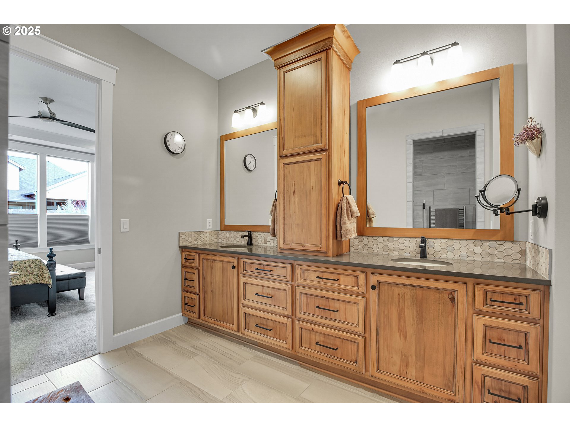 Nestled within Velvet Acres, one of Vancouver's most sought-after communities, this residence is like no other you have seen. This prestigious neighborhood is known for its expansive 10,000+ square-foot lots, providing space between neighbors, and featuring a beautiful collection of high-end, custom-built homes by premier builders. Discover a unique single-level residence that offers luxury while still being close to all of the modern conveniences. This property offers an exclusive advantage for the modern adventurer: dedicated, expertly designed parking for up to a 42-foot RV ensuring easy access and secure storage for your most prized recreational vehicle. The oversized garage caters to organization and accessibility, featuring an electronic lift system providing effortless entry to the expansive attic storage. The heart of the home features a Gourmet Kitchen equipped for culinary excellence, complemented by an oversized pantry offering abundant storage. The adjoining living space invites relaxation, anchored by a charming gas fireplace perfect for intimate gatherings. The primary suite is a true retreat. Indulge in the spa-like Master Bath, featuring a striking, beautiful custom tile shower and the daily luxury of towel warming racks. Finally, step into the beautifully landscaped backyard—a private, serene sanctuary designed for tranquil outdoor enjoyment. This is more than a home; it's a meticulously appointed lifestyle awaiting your arrival.