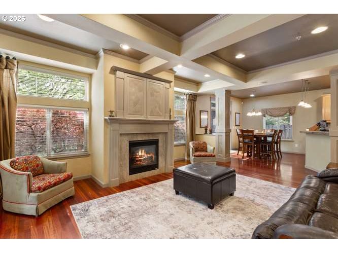 Come experience modern elegance intertwined with a craftsman's charm in this exquisite Energy Efficient Quail Home. Located in the highly sought after Westridge neighborhood of Camas WA. This haven offers a seamless blend of convenience, with shopping centers mere minutes away, and serenity, with scenic parks and walking trails close by. Upon arrival, the lush greenery, mature trees, and expansive wisteria entry area create an immediate sense of tranquility and seclusion. The home's timeless exterior is complemented by its energy efficient design, ensuring both enduring style and eco-conscious living. Step inside to discover a welcoming foyer accentuated by soaring ceilings and windows that bathe the space in natural light. Premium finishes adorn the generous living space, which features an exposed beam ceiling beautiful Brazilian Cherry Wood Floors, 2 cozy fireplaces, surround sound, Sun Room, formal & casual dining spaces and a wet bar perfect for entertaining. The chef's kitchen is complete with high-end stainless steel appliances, custom cabinets, granite countertops, oversized pantry and central vac. This thoughtfully designed residence boasts four OVERSIZED bedrooms, including a luxurious master suite offering 2 oversized walk-in closets, a spa-inspired jetted tub, double shower heads, vanity area, and double sinks. The additional bedrooms provide ample space for family or guests, each offering plenty of storage. Further enhancing the home's appeal are amenities such as an office, loft space, and a large 3 car garage with plenty of space for the toys. Outside, the private retreat unfolds with a tranquil water feature, fire pit, back patio and a private setting all inviting you to embrace the outdoors. New Furnace and New AC !!!! Homes in this neighborhood don't become available often. Don't miss this rare opportunity to own a piece of Clark County within walking distance of the best schools in the area and best location in Camas.