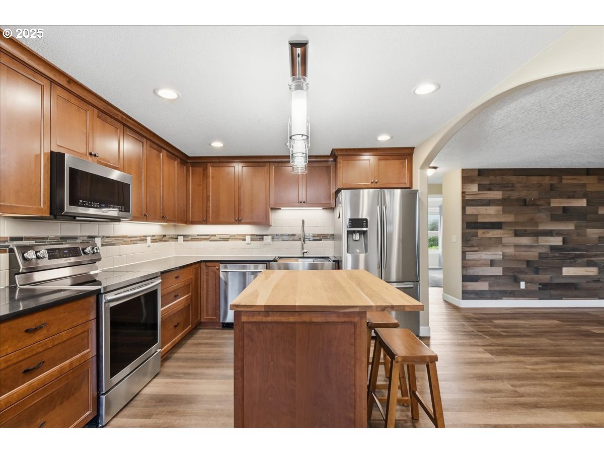 Dishwasher, Disposal, FreeStandingRange, FreeStandingRefrigerator, Island, Quartz, StainlessSteelAppliance