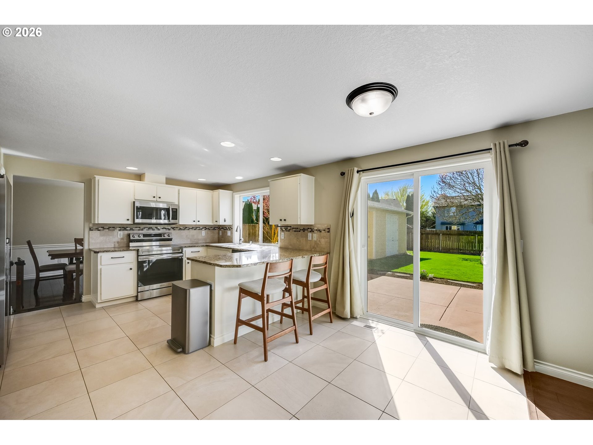 This updated 2-story Craftsman checks every box for folks looking to plant roots in a neighborhood that feels like 'home' — tree-lined streets, wide sidewalks, community parks, and just a stone's throw away from Maple Crest neighborhood and trail. This 2,441 sq ft 4-bedroom, 2.1-bathroom home turns heads before you even enter — meticulously landscaped with bay windows that add a curb appeal hard to forget. The extra-wide driveway and RV pushback gate adds parking flexibility, and the care and attention to detail continues throughout. The interior immediately impresses with a light-filled, open feel courtesy of oversized windows, fresh paint, and finishes clearly chosen with intention. Luxury vinyl plank flooring runs seamlessly through the entire home (no carpet!), giving the home a cohesive, polished look throughout. At the heart of it all, the completely updated kitchen brings wow factor — stunning granite counters, full tile backsplash, contemporary hardware, and stainless appliances, all flowing into a breakfast nook that's made for Saturday morning pancakes. The family room opens through a slider straight to the huge backyard, making indoor-outdoor living effortless. Upstairs, the owner's suite is a proper retreat: double-door entry, bay window, walk-in closet, and a fully remodeled ensuite bathroom. With four bedrooms including an oversized fourth that works equally well as a playroom, gym, or home office, this layout offers abundant flexibility. Outside, the huge, fully fenced backyard includes mature landscaping and plenty of room to run, play, or entertain. The detached shop with 220v power could be used for a workshop, gym, or home office. Washer, dryer, and fridge stay with the home. All of it in a prime Eastside location, close to everything your crew needs. Open House Saturday, April 4th, 12–2pm.