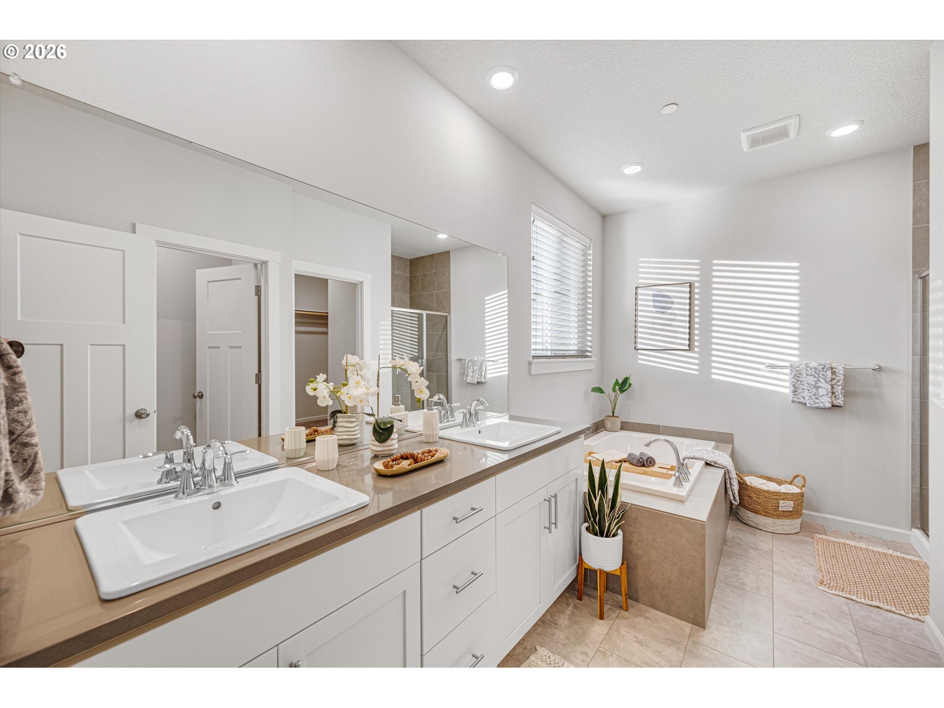 Impeccable in Ridgefield! This 4-bedroom, 2-bathroom single-story has been meticulously maintained, only lightly lived-in for 13 months, and is move-in ready. The open floor-plan includes a gorgeous kitchen with stainless steel appliances and a large island, perfect for entertaining. Wide hall and bedroom locations that offer flexibility and privacy for all. Primary bedroom has a huge ensuite bathroom complete with a soaking tub and large walk-in closet. 3-car garage, covered patio, and a fenced yard with sprinkler system and large western facing space just waiting for a garden to be planted! Premium location close to the community basketball court, across the street from the playground, steps to walking trails, and adjacent to the community green space, providing ample room for outdoor activities. Enjoy beautiful views of the wooded area from the office windows. Easy access to downtown Ridgefield, highly rated Ridgefield schools, Ridgefield Wildlife Refuge, shops, restaurants, In-N-Out! :), and I-5!
