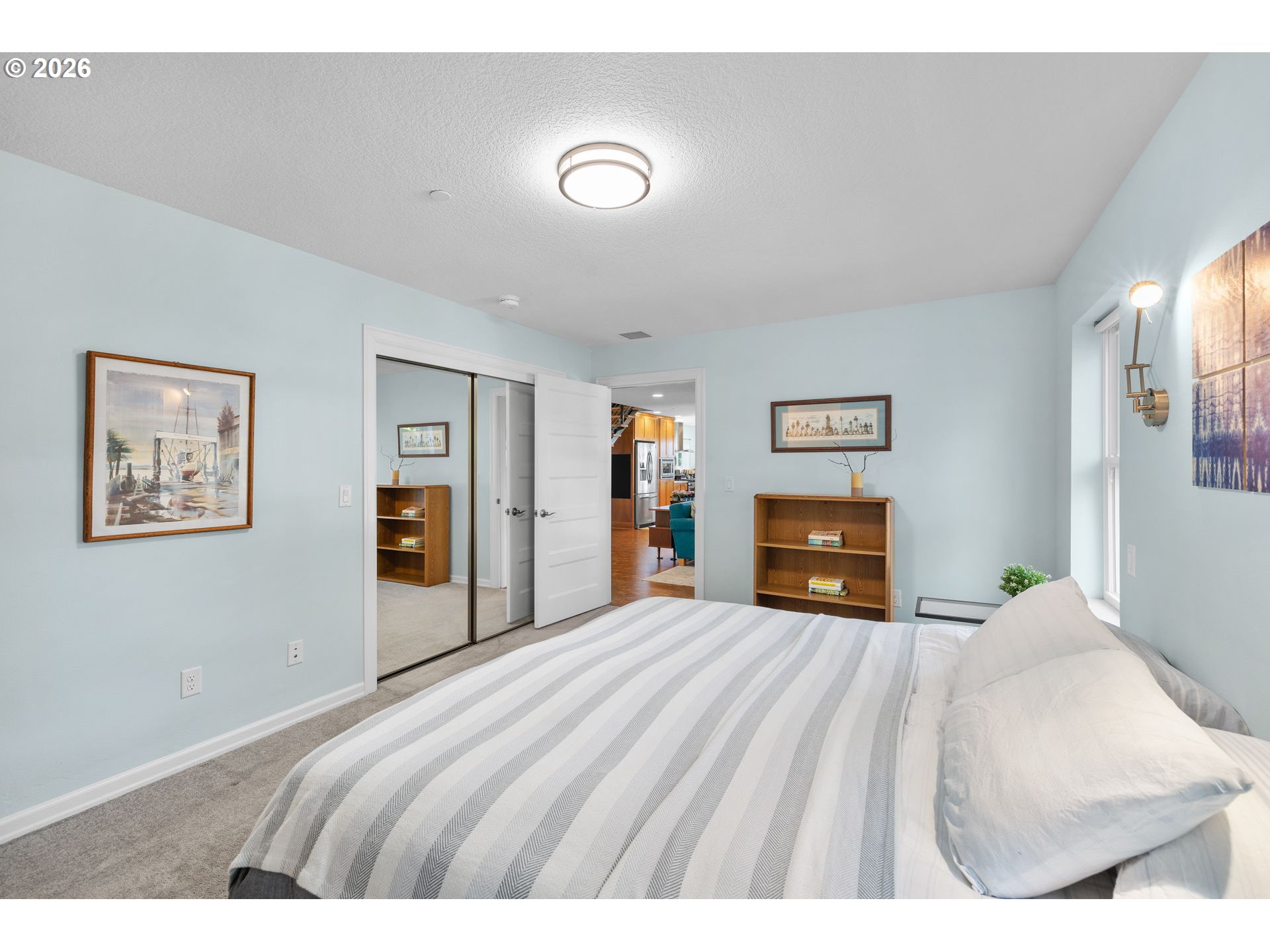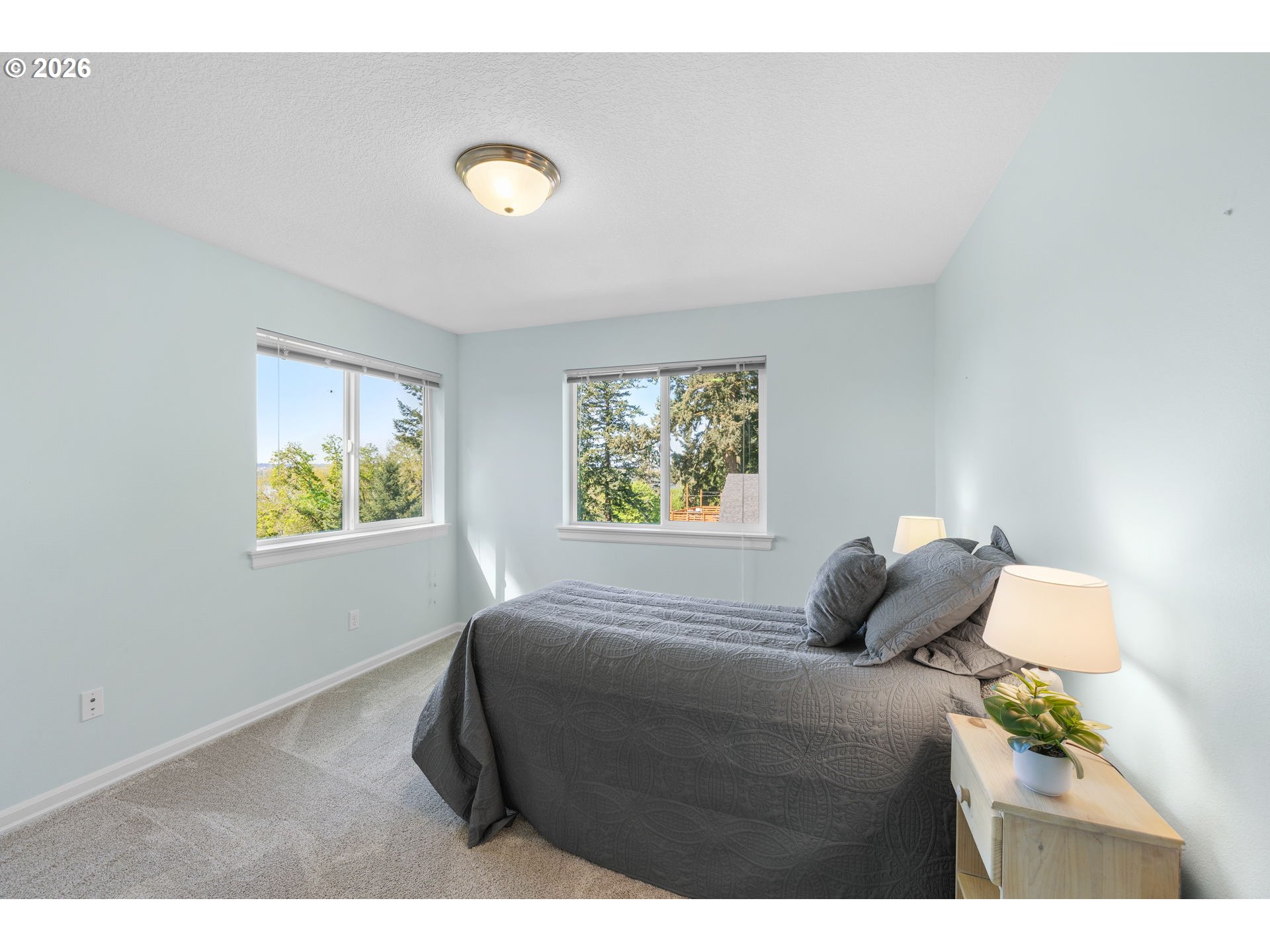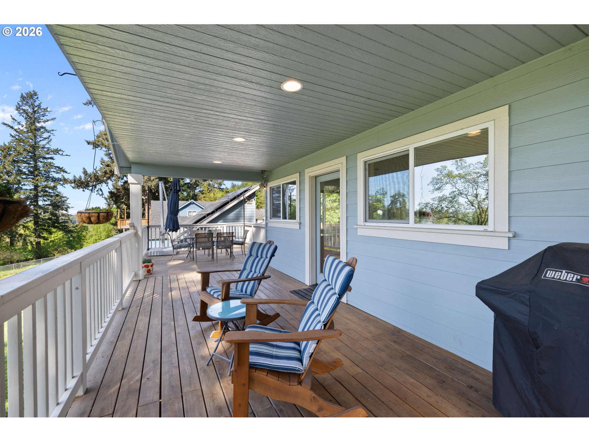 Charming 3-bedroom home in highly sought-after Camas, situated on a spacious 0.42-acre lot with beautiful Columbia River views! Step inside to an inviting open-concept living room filled with natural light and anchored by a cozy gas fireplace. The layout flows seamlessly into the dining area and well-appointed kitchen, featuring stainless steel appliances, a large island with seating, and ample cabinetry for storage.The primary suite is conveniently located on the main level, offering wall-to-wall carpet, a generous closet, and a private en suite bathroom complete with a tiled walk-in shower and dual sink vanity. Upstairs, you’ll find two additional generously sized bedrooms, along with a full hall bath. One bedroom includes access to a finished flex space—perfect for a home office, gym, or extra storage.Enjoy outdoor living on the expansive back deck overlooking the Columbia River, surrounded by thoughtfully designed landscaping on nearly half an acre. The home also features fully paid-off solar panels, providing energy efficiency and long-term cost savings for the next owner.