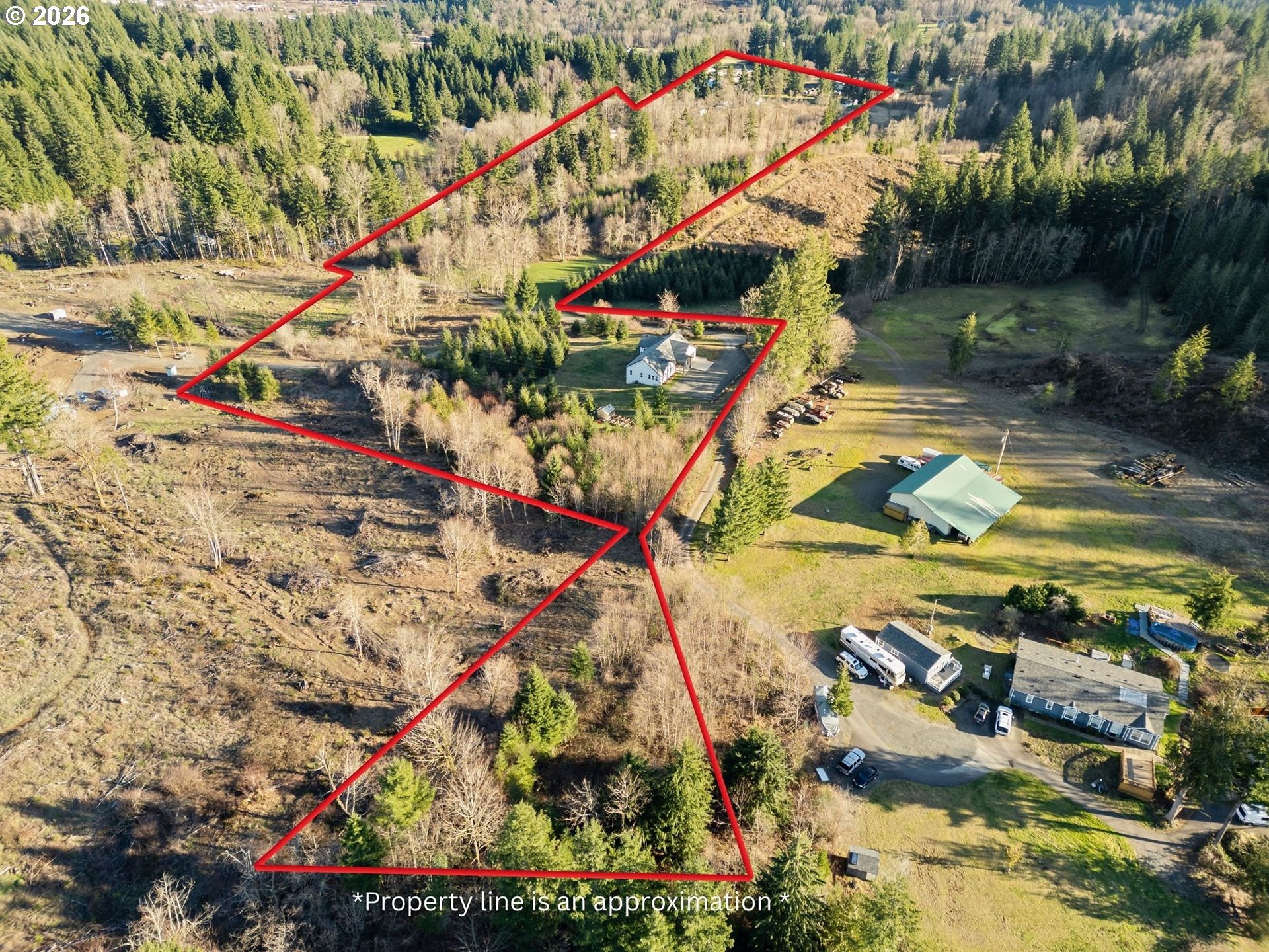 RG custom-built home offering a rare blend of privacy & thoughtful design. Covered front entry with tongue-and-groove wood detailing giving an immediate introduction to the detailed craftsmanship throughout. Vaulted ceilings and expansive windows define the main living areas, bringing in natural light while framing territorial views of Mount St. Helens. Elevated trex decks extend the living space outdoors, creating ideal areas for gathering, relaxing, and to enjoying the quiet setting. Patio below offers additional sheltered outdoor space that leads you directly into the backyard; where you will find a chicken coop, shed, and elevated garden oasis. Anchoring the home is a striking 12-foot quartz island that provides substantial cooking space, seating, and full-length storage below. A thoughtfully designed space for everyday living and entertaining. The garage connects seamlessly to a well-positioned mudroom and laundry area supporting pacific northwest living complete with a utility sink. Engineered hardwood runs throughout the entirety of the home for durability, visual continuity, & allergen friendly living. Primary suite boasts a private balcony to enjoy views with your morning coffee. All tucked peacefully on gently sloping, wooded low maintenance property. Dirt bike trails? Shooting range? The possibilities are endless with this expansive timbered lot. Conveniently within reach of some of the amazing recreational spots in our area: Cresap Bay under 5 miles, 10 miles to Speelyai Bay & Moulton Falls. 20 miles to Battle Ground & Woodland. If you need something quick you are 1 mile to the local gas/convenient store for daily essentials & last minutes needs. This rural setting offers privacy, luxury, minimal maintenance, recreation, and endless possibilities. To top it all off it has been pre-inspected, well tested for quality and flow, and septic inspection passed/completed. Truly turn key.
