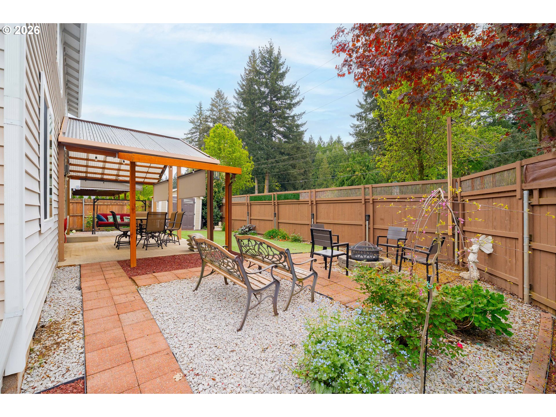 Open House Saturday, April 25 from 12–2pm – Join us! Sitting on a spacious .13 flag lot, this 2,232 sf home offers 4 bedrooms and 2.5 bathrooms with a layout that truly delivers on space, comfort, and everyday livability. The main level features a bayed living room, formal dining area, and a welcoming family room anchored by a cozy gas fireplace, opening through sliders to a covered patio with lighting and ceiling fan - perfect for year-round enjoyment! The open kitchen includes solid surface countertops, an eating bar, full backsplash, pantry, and stainless appliances (refrigerator included). Stylishly updated bathrooms and a large laundry room with built-ins and utility sink add to the home’s thoughtful functionality. Upstairs, you’ll find three nicely sized bedrooms plus a spacious, vaulted owner’s suite with a bay window, two closets, and a beautifully updated, spa-inspired ensuite featuring double sinks, a walk-in shower, and large walk-in closet. The backyard is a true highlight -lovingly manicured, low maintenance, and designed for gathering and play with pathways, turf, fire pit, multiple seating areas, and a tool shed for added utility. Attached 2-car garage plus valuable additional covered parking offers flexibility for vehicles, hobbies, or storage. Centrally located and convenient to parks, schools, shopping, dining, and everyday amenities.
