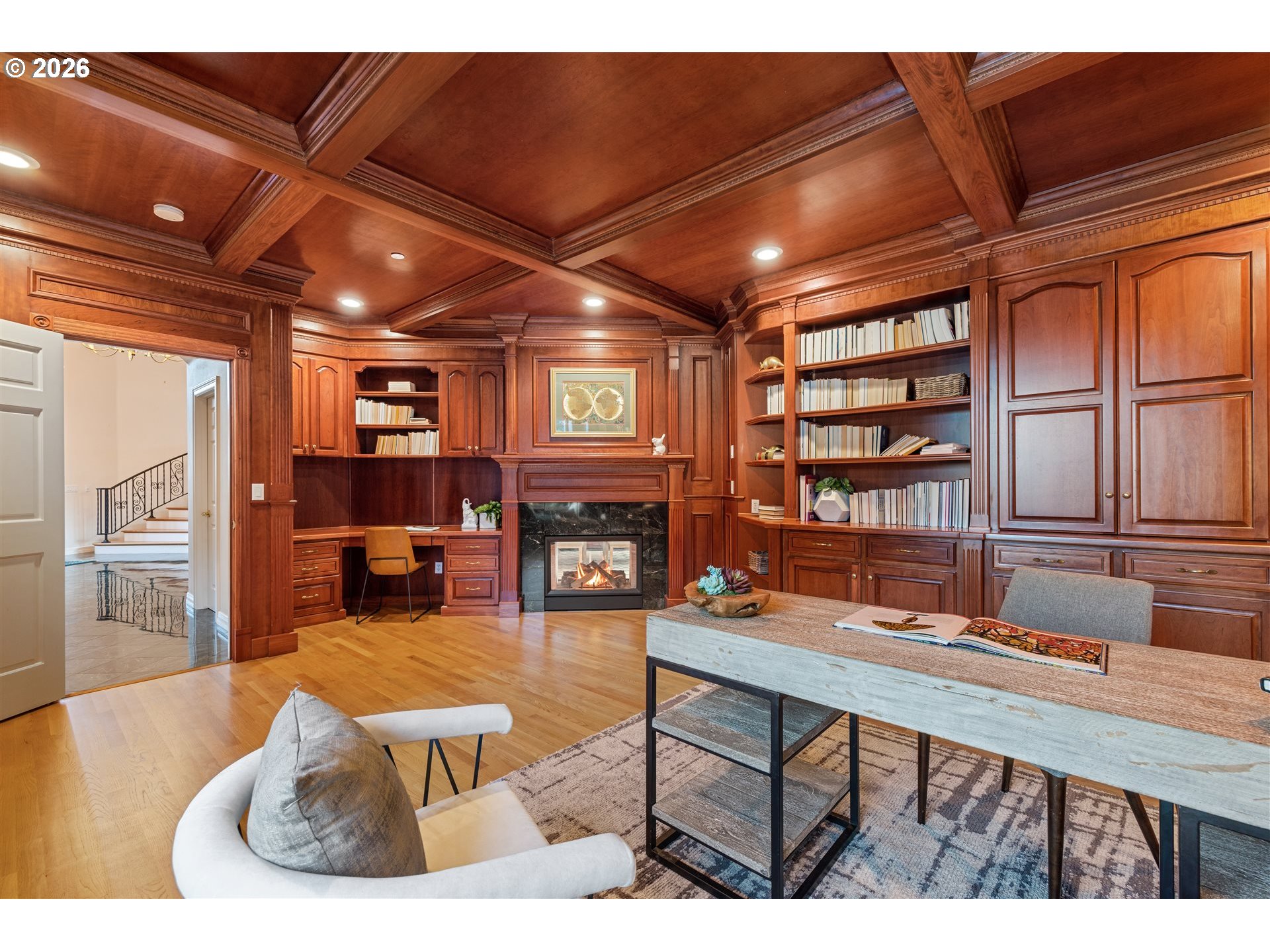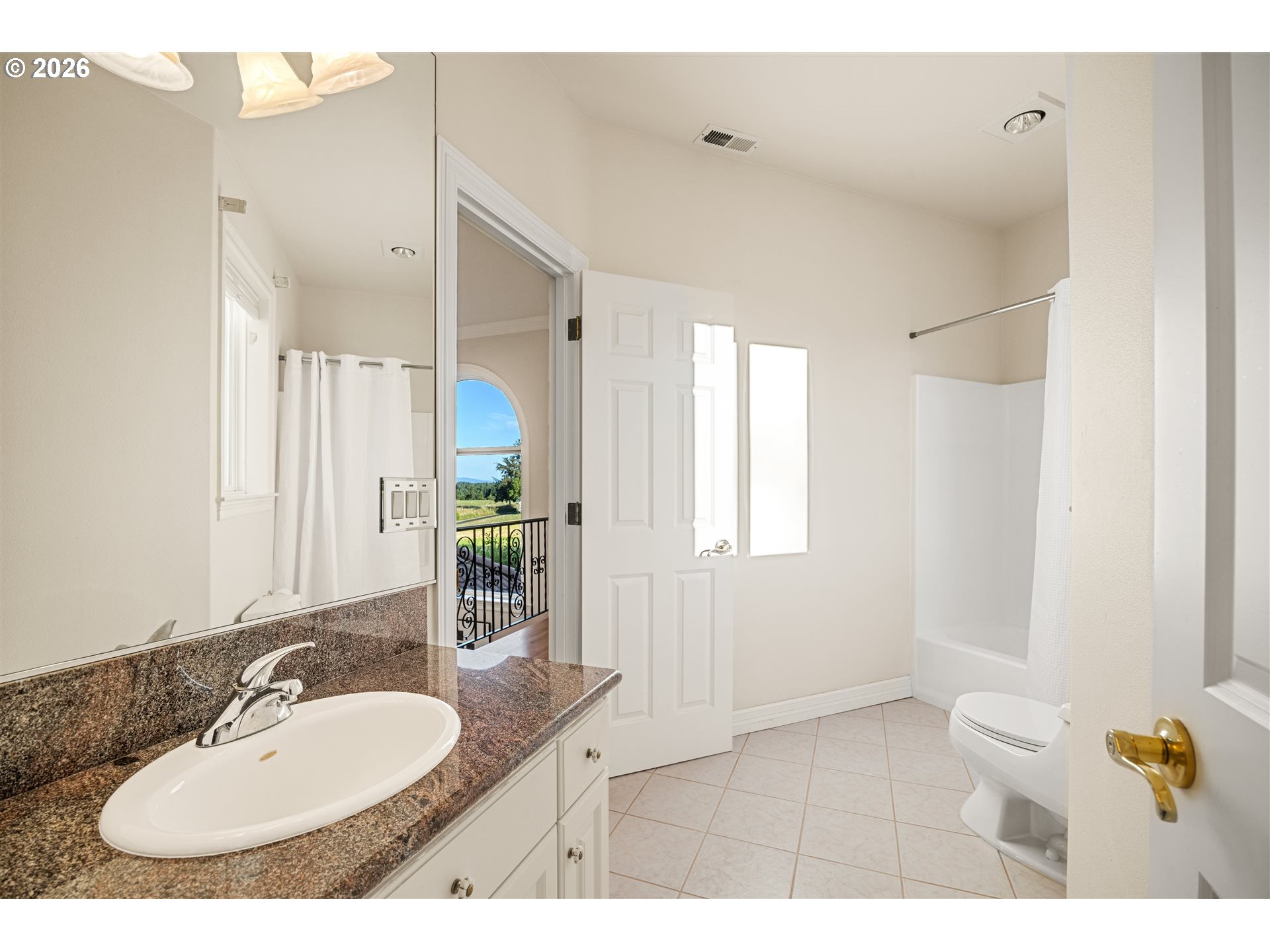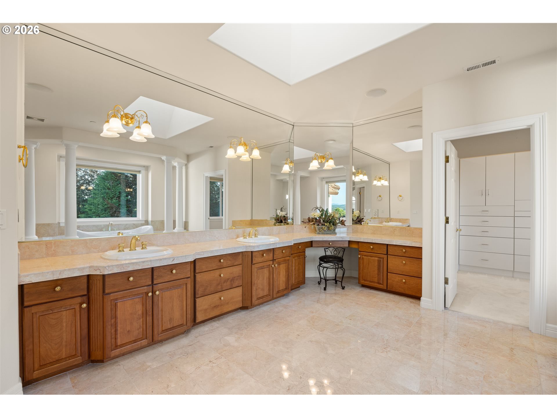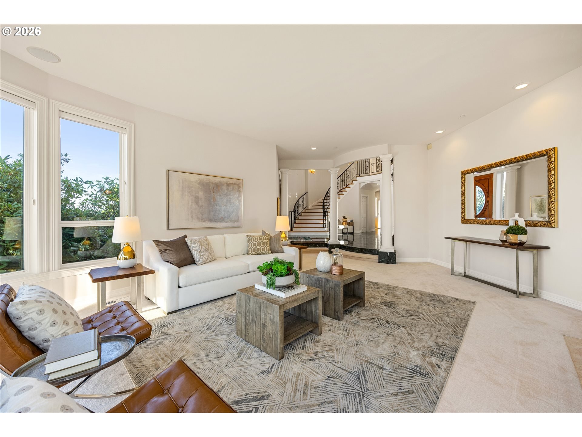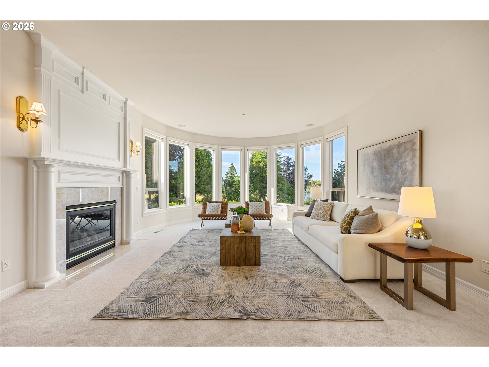 Timeless elegance meets Spanish-inspired charm in this stunning Ridgefield estate perched above the Lewis River. Set on 15 acres of level grounds, the home showcases classic stucco, clay tile roofing, graceful arches, and expansive picture windows framed to capture sweeping views of Mt. Hood, Mt. St. Helens, and the river valley from nearly every room.Enter through a dramatic marble foyer and staircase into formal living and dining rooms and a private office, all detailed with intricate moldings and custom mantles. The living room centers on a grand fireplace with a postcard view of Mt. St. Helens. The U-shaped kitchen offers abundant counter and cabinet space, blending functionality with timeless design.Generous bedrooms provide peaceful retreats; the primary suite is a true sanctuary with a fireplace, walk-in closet, luxurious en-suite bath and jetted tub, and unforgettable vistas of the Lewis River Valley and Mt. St. Helens. Guests will delight in choosing which panoramic view—Helens or Hood—wins their vote.Outdoors, 15 acres invite endless possibilities for gardening, recreation, or simply enjoying serene privacy, while still being minutes from I-5 and Ridgefield’s growing retail amenities. An attached shop adds practical space for hobbies and projects. Elegant, comfortable, and exceptional—this property delivers a luxurious, tranquil lifestyle.